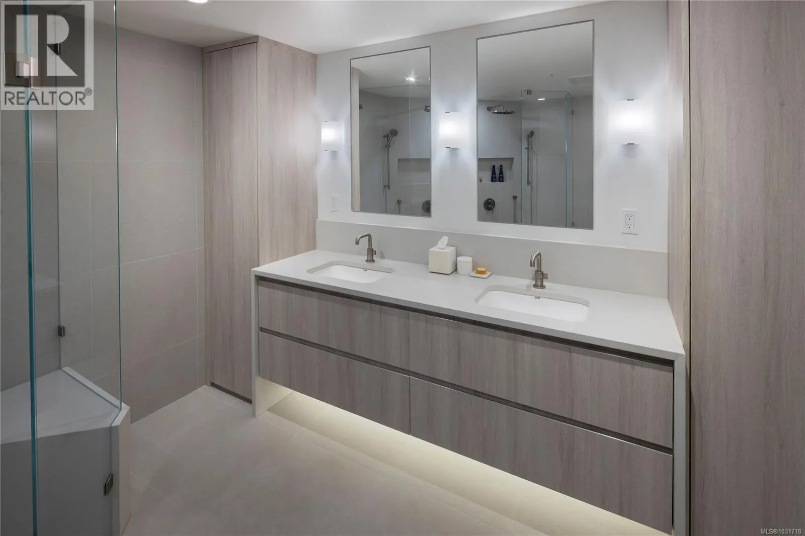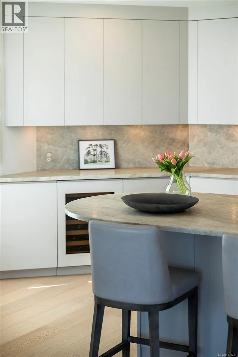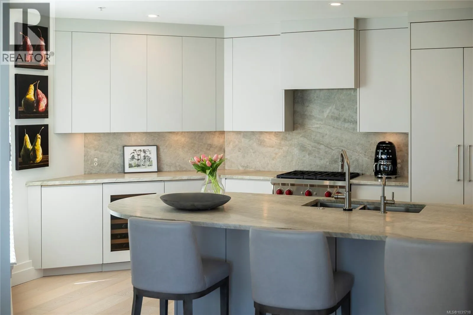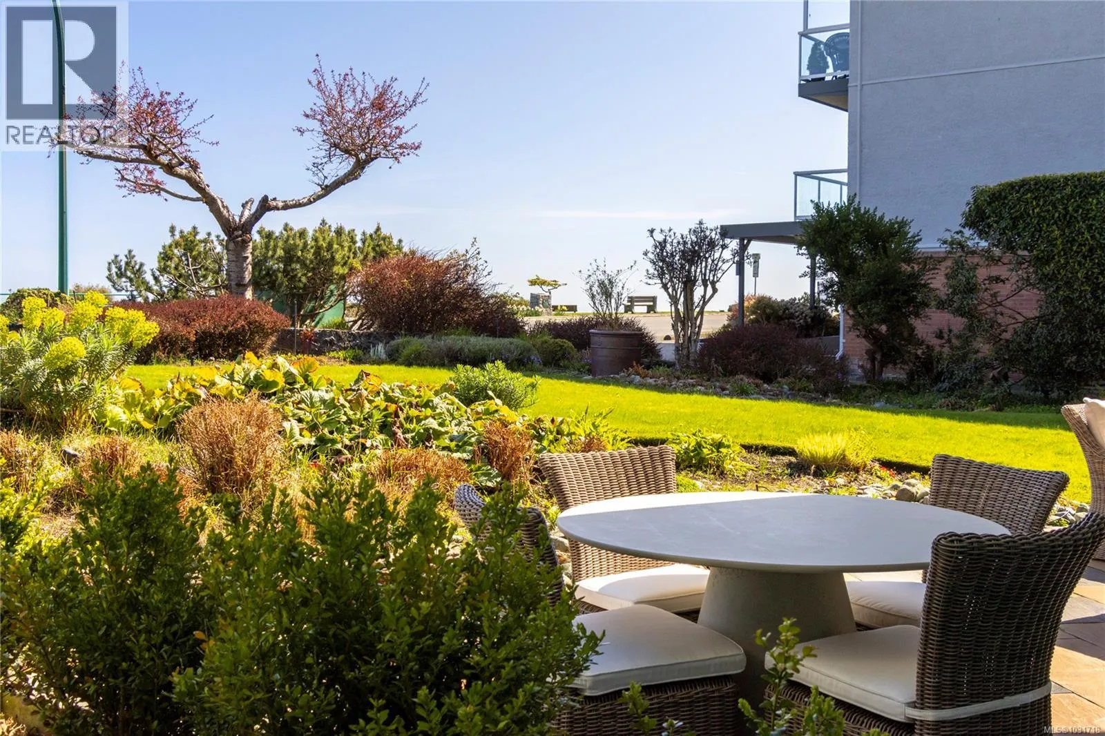 Discover this stunning garden-level home situated on the waterfront in Oak Bay offering unobstructed views of the ocean and Mount Baker. This newly renovated home boasts an open floor plan of over 1600 square feet with 9-foot ceilings, natural stone counters, upscale appliances, including subzero, and Wolfe. This layout features beautiful hardwood floors and two large bedrooms with ensuite washrooms. The building is concrete with a slate tile exterior, concrete, party walls, and a floor in floor radiant hot water heating. Visit Marcâs website for more photos and floor plan or email marc@owen-flood.com (id:27476)