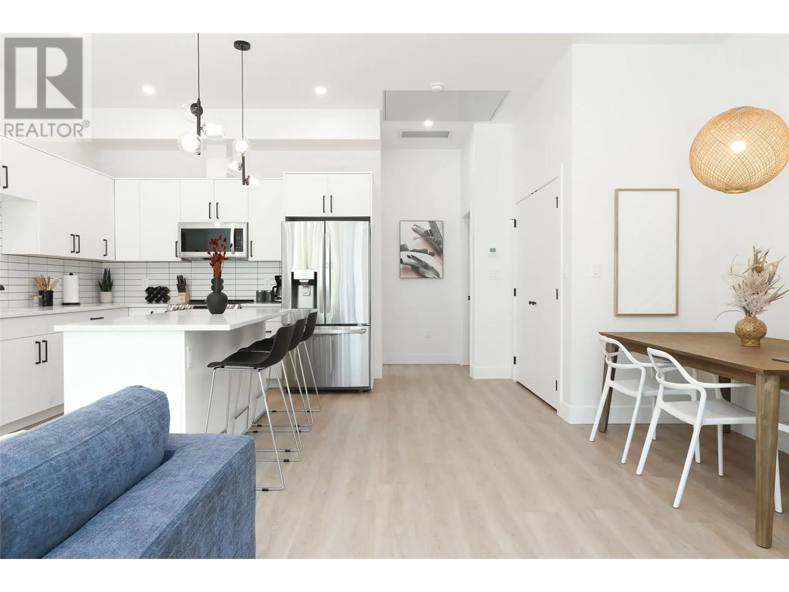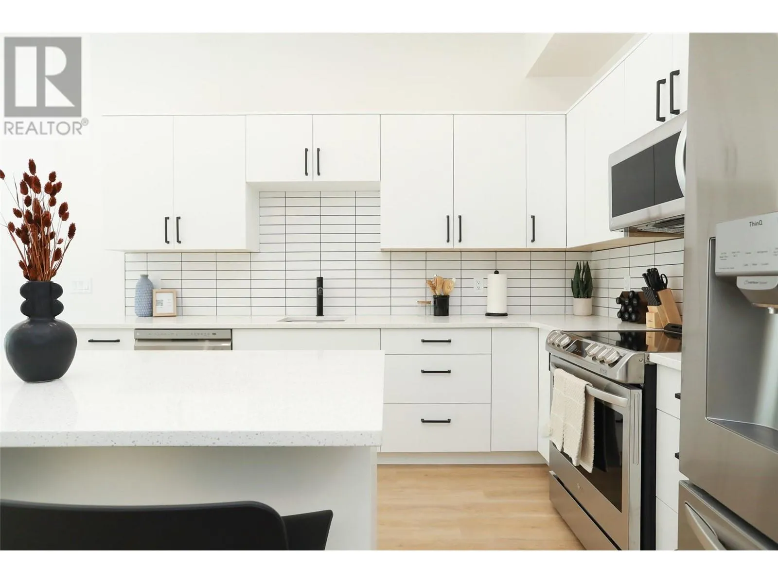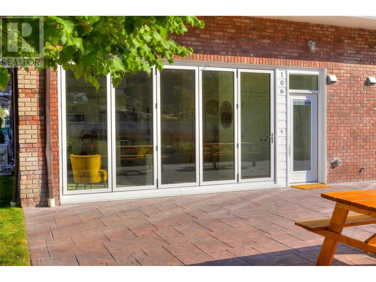 Welcome to this stunning turn key corner-unit 1-bedroom condo that can be sold fully furnished. As you step inside, you'll be captivated by the abundance of natural light streaming through the expansive 16ft window doors that fold open, seamlessly connecting the indoors with the outdoors. This gem of a property faces the lake and not only boasts picturesque views of the lake and the mountains but also has direct access to the KVR walking trail. Whether you're an avid swimmer, love kayaking, or simply enjoy peaceful strolls along the water's edge, this location is a dream come true. Inside, the condo features hot water on demand, a highefficiency heat pump, smart appliances, and concrete walls and ceilings with extra insulation for privacy and efficiency. The well-appointed bedroom provides ample space for restful nights and boasts a walk-in closet. The bathroom is stylishly designed and offers modern fixtures and floor-to-ceiling tiles. Don't miss this incredible opportunity to purchase this property. In both unit 105 and 106 there is an optional door for access to either unit or lockable from both sides for security and privacy. This can be removed if purchased separately. Units 102, 103 are also available. GST applicable. (id:27476)