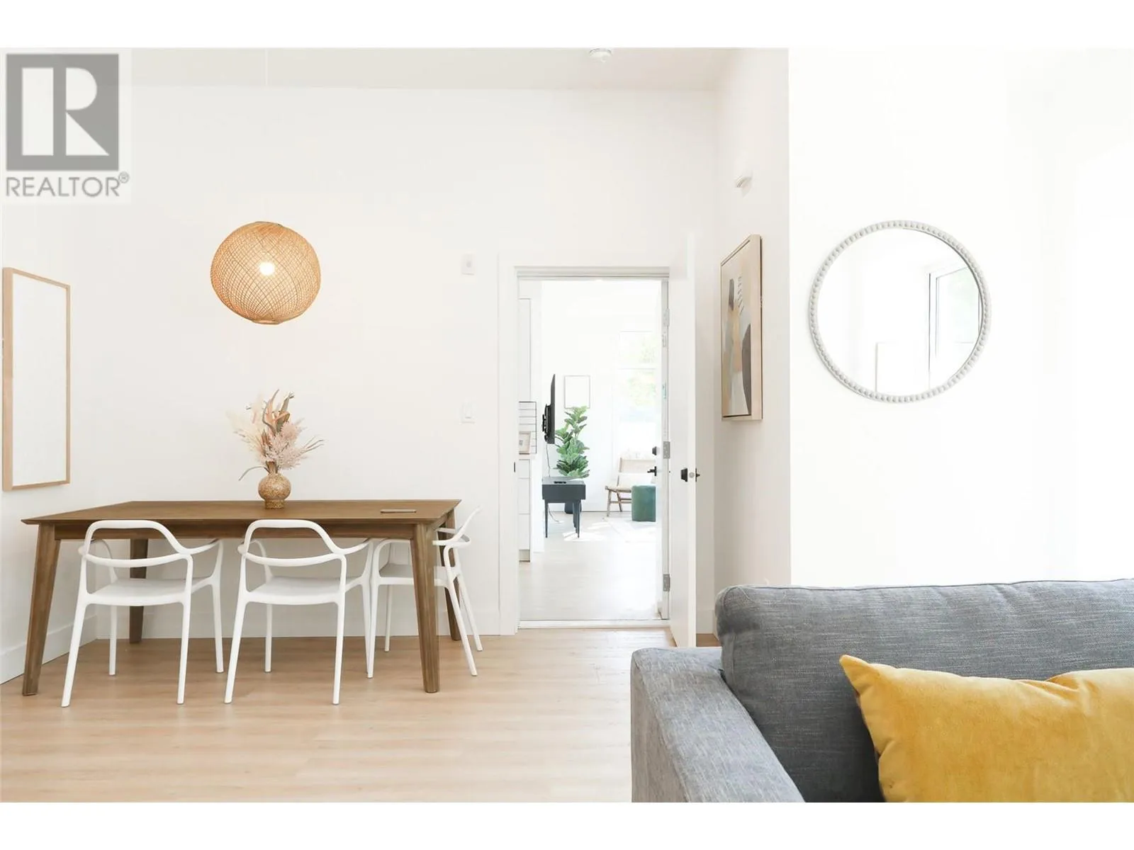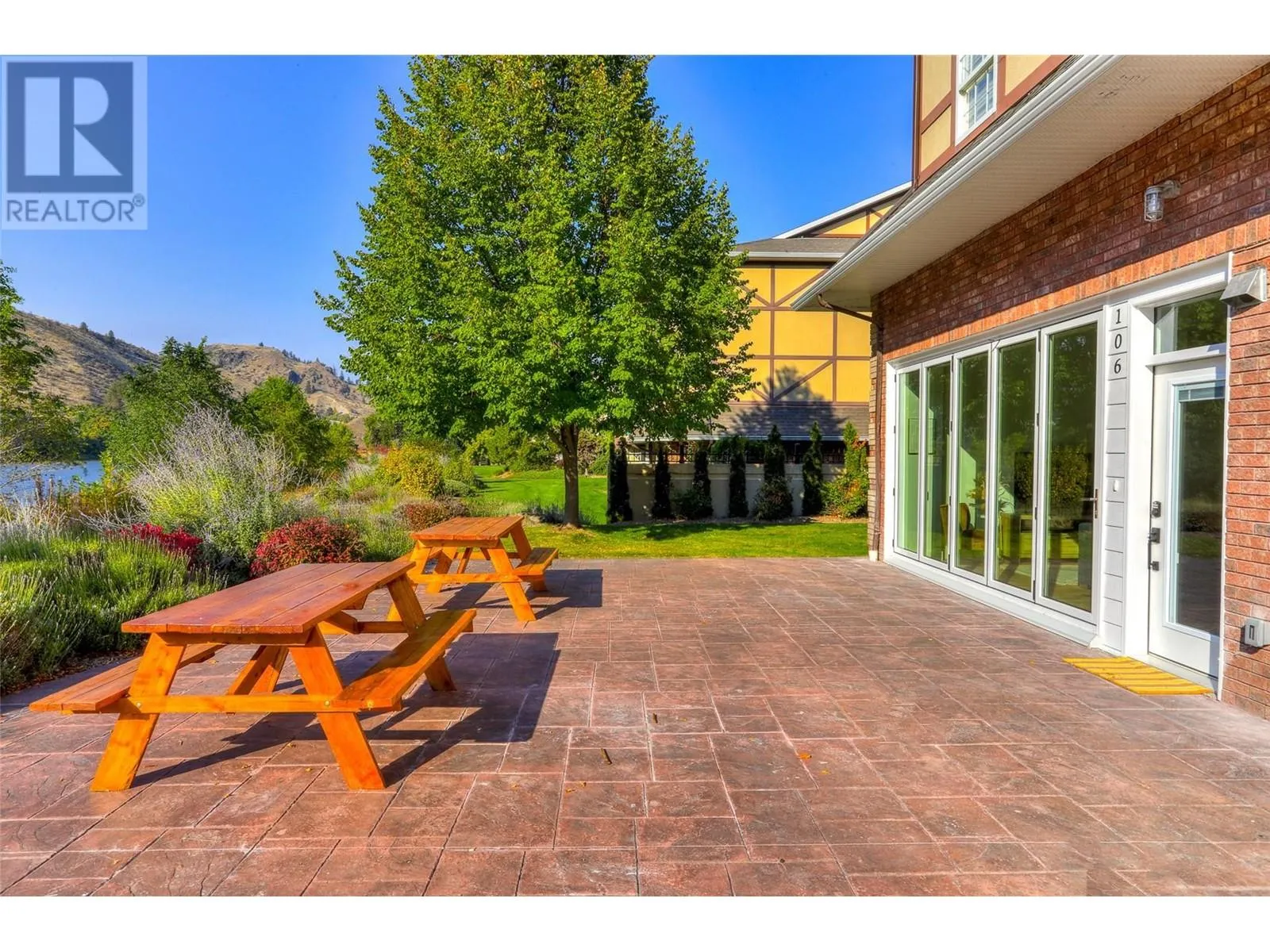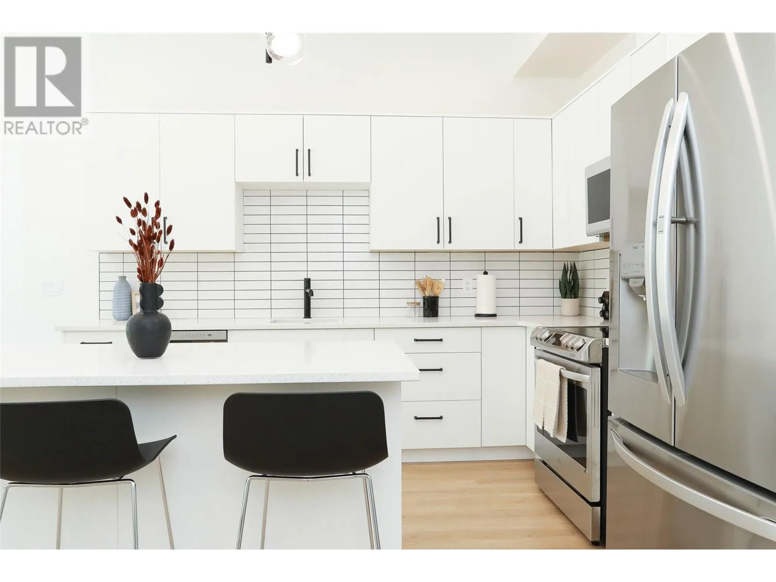 Welcome to this stunning turn key corner-unit 1-bedroom condo that can be sold fully furnished. As you step inside, you'll be captivated by the abundance of natural light streaming through the expansive 16ft window doors that fold open, seamlessly connecting the indoors with the outdoors. This gem of a property faces the lake and not only boasts picturesque views of the lake and the mountains but also has direct access to the KVR walking trail. Whether you're an avid swimmer, love kayaking, or simply enjoy peaceful strolls along the water's edge, this location is a dream come true. Inside, the condo features hot water on demand, a highefficiency heat pump, smart appliances, and concrete walls and ceilings with extra insulation for privacy and efficiency. The well-appointed bedroom provides ample space for restful nights and boasts a walk-in closet. The bathroom is stylishly designed and offers modern fixtures and floor-to-ceiling tiles. Don't miss this incredible opportunity to purchase this property. In both unit 105 and 106 there is an optional door for access to either unit or lockable from both sides for security and privacy. This can be removed if purchased separately. Units 102, 103 are also available. GST applicable. (id:27476)