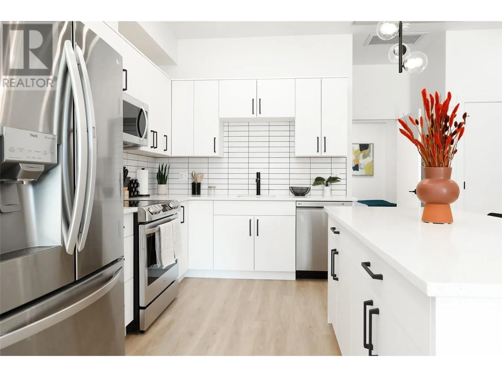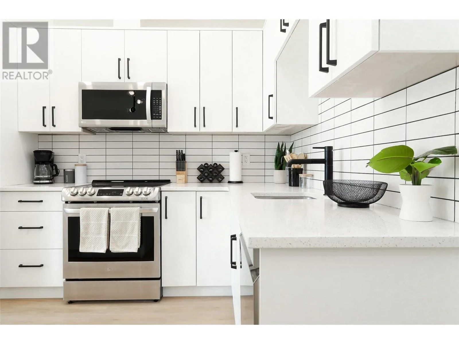 This 1 bedroom, 1 bathroom condo located at 850 Railway Lane is turn key and can be sold with the furnishings. The open floor plan creates a seamless flow between the living, large dining area, and kitchen making it perfect for entertaining guests or simply enjoying everyday living. The kitchen boasts sleek cabinetry, stainless steel smart appliances, and ample counter space. In the master bedroom, you will find extra lockable storage in the closet. Some notable features on this unit would be - hot water on demand and floor to ceiling tiles in the bathroom, concrete walls and ceilings with extra insulation and high efficiency heating and cooling. If you purchase both unit 102 and 103 there is an optional door for access to either unit or lockable from both sides for security and privacy. This can be removed if purchased separately. Located in a vibrant neighbourhood, next to the lake you'll have easy access to an array of amenities including wineries, beaches, parks, and only 15 minutes from Penticton. Don't miss out on the chance to own this exceptional condo. Contact us today to schedule a viewing and make this beautiful property your new home! GST applicable. Units 102 (adjoining), and 106 is also available. Furnishing package available. (id:27476)