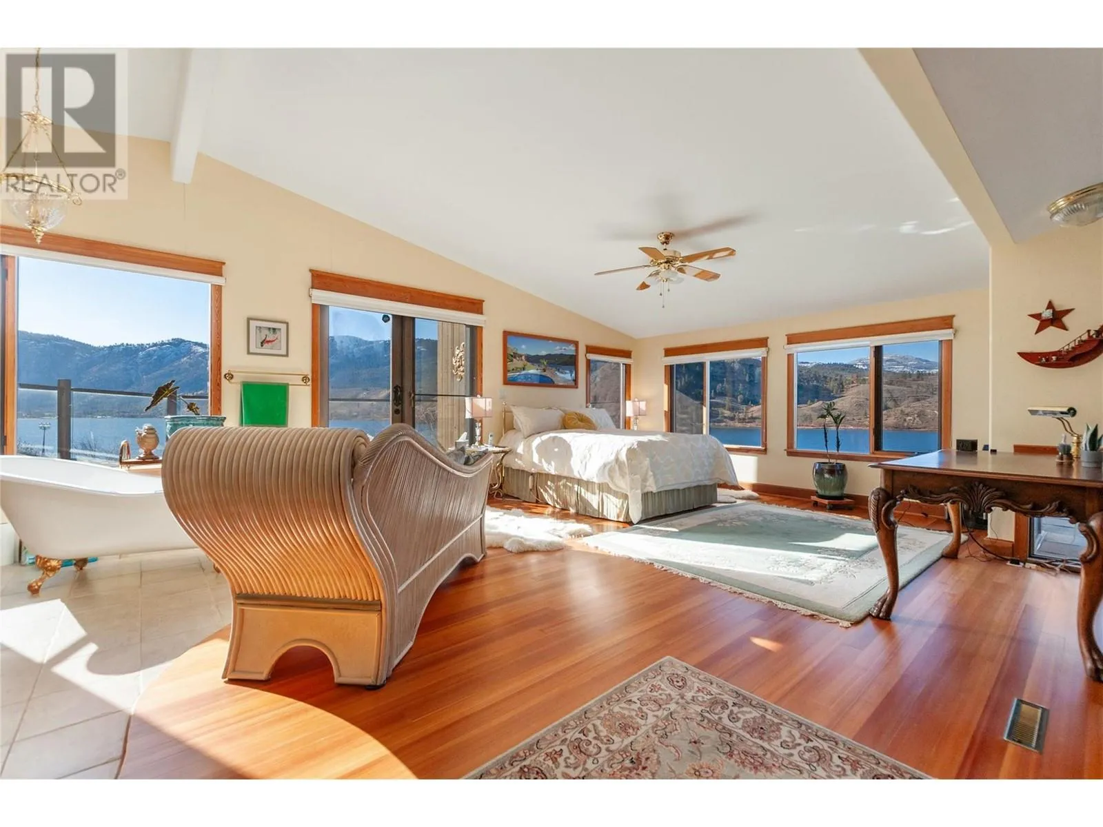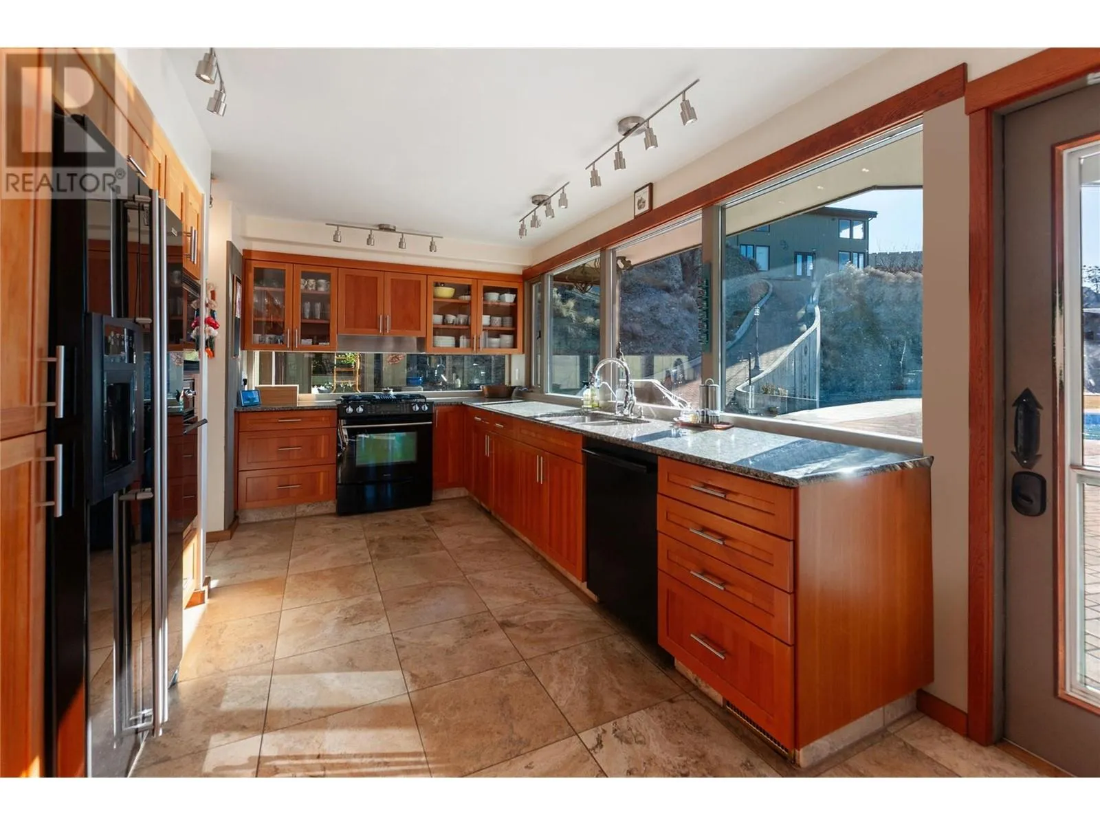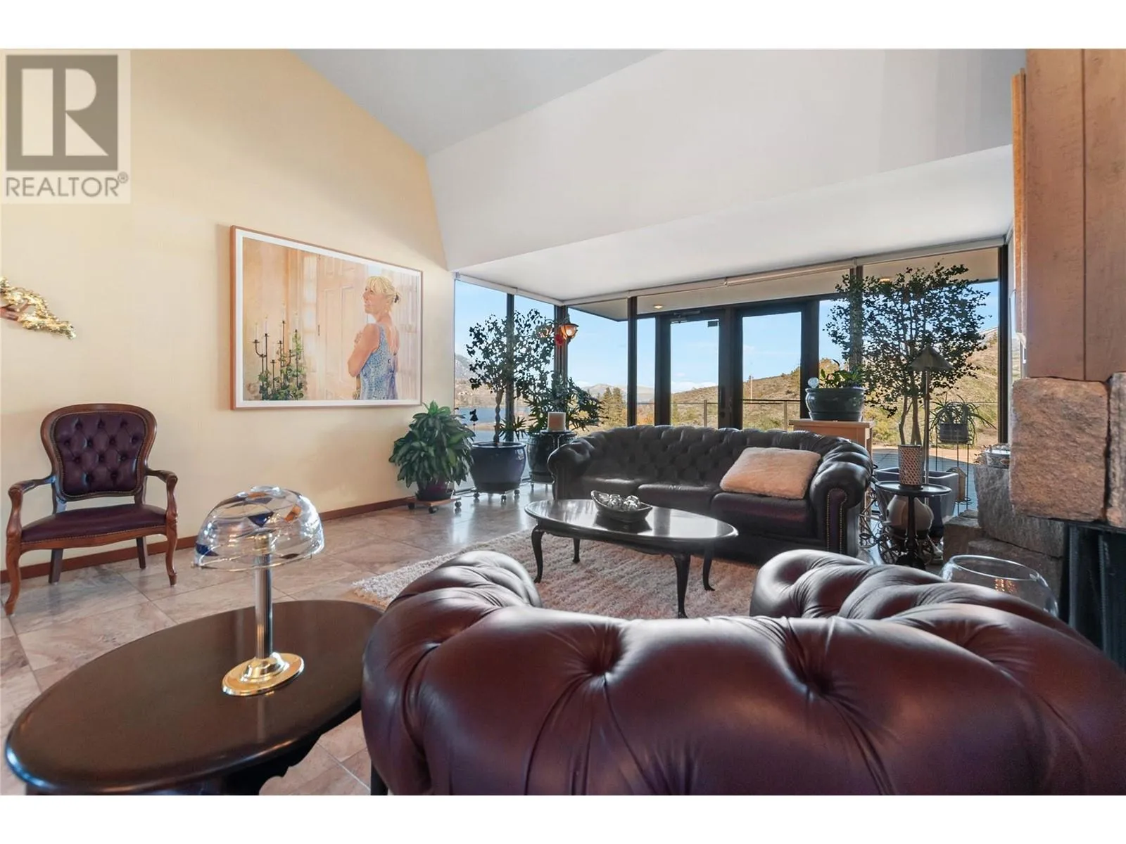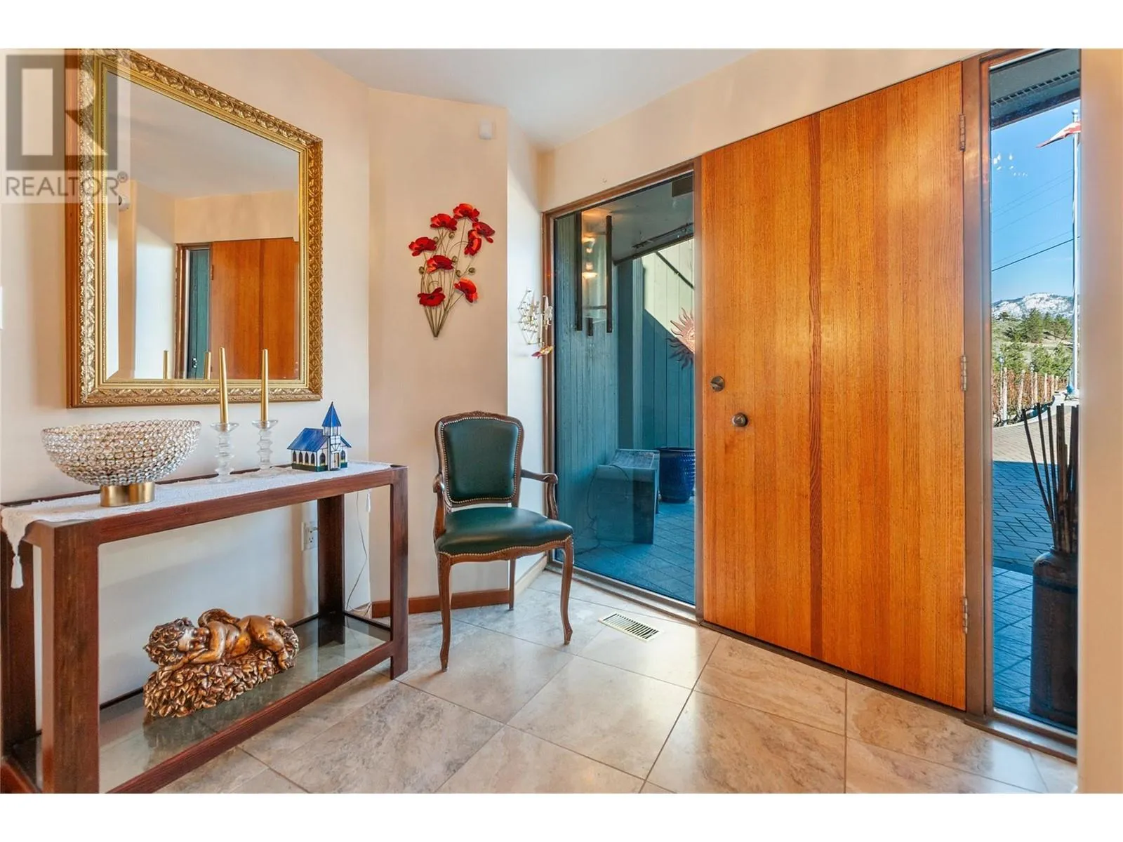 Enter through the private hand-crafted wrought iron gate you'll immediately be wowed by the home's unique charm and inviting atmosphere. The tastefully renovated home seamlessly flows into an exceptional views of Skaha Lake featuring the wonderful sunsets over the neighbouring hills. Outside you can marvel at the rock features that border an inviting in ground pool or take a stroll to the road leading down to over 550 ft of lakeshore. Inside the Ron Thomâs architecture features an award winning design tastefully updated incorporating many unique features including copper framed windows and doors, hand-crafted copper stair railing, native eagle motif skylight, ceramic tile throughout, expansive use of glass and over 2100 sq/ft of deck. The primary bedroom with a den area offers versatility for a home office or cozy reading nook. The updated lower level is a treasure, featuring a closed breezeway with a walk in fridge - endless possibilities here! Ample space for RV parking or additional vehicles. Privately located with the perfect proximity to restaurants, shops, schools, and beautiful Skaha lake. This property is not just a house; it's an investment in a lifestyle that effortlessly combines the charm of the past with the comforts of today. Call today to arrange private viewing. (id:27476)