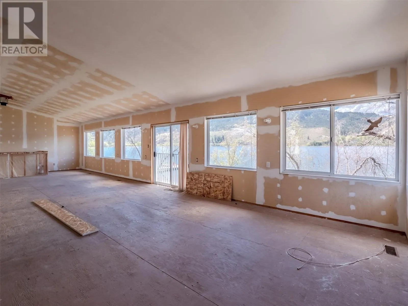 230 FT WATERFRONT PROPERTY on Skaha Lake with Multiple Dwellings! Welcome to 368 & 374 Eastside Road, a unique opportunity to own two adjacent titles sold together. This expansive waterfront property features a 4,700-square-foot main house and an 800-square-foot cottage, both awaiting your personal touch to complete their unfinished interiors. The homes boast new metal roofs, fresh siding, ample windows, vaulted ceilings, and a spacious 56' x 25' garage. Located on a secluded street, this property offers the perfect canvas to create your ideal lakeside retreat on Skaha Lake. With endless potential, this is your chance to build the waterfront family home of your dreams. Approximate measurements provided, Buyer to verify measurements if deemed important; contact the Listing Agent for further details. *All interior is unfinished* (id:27476)