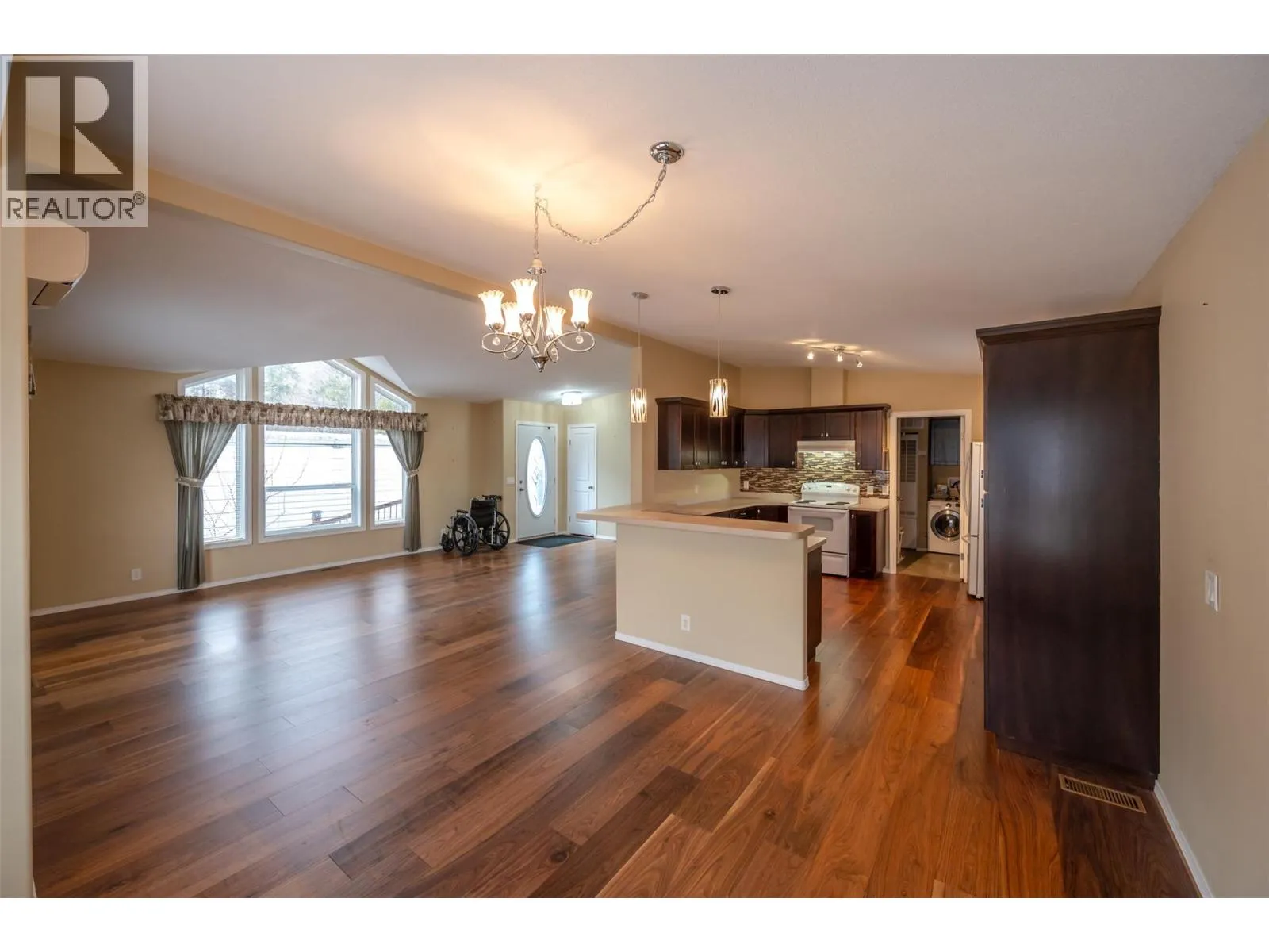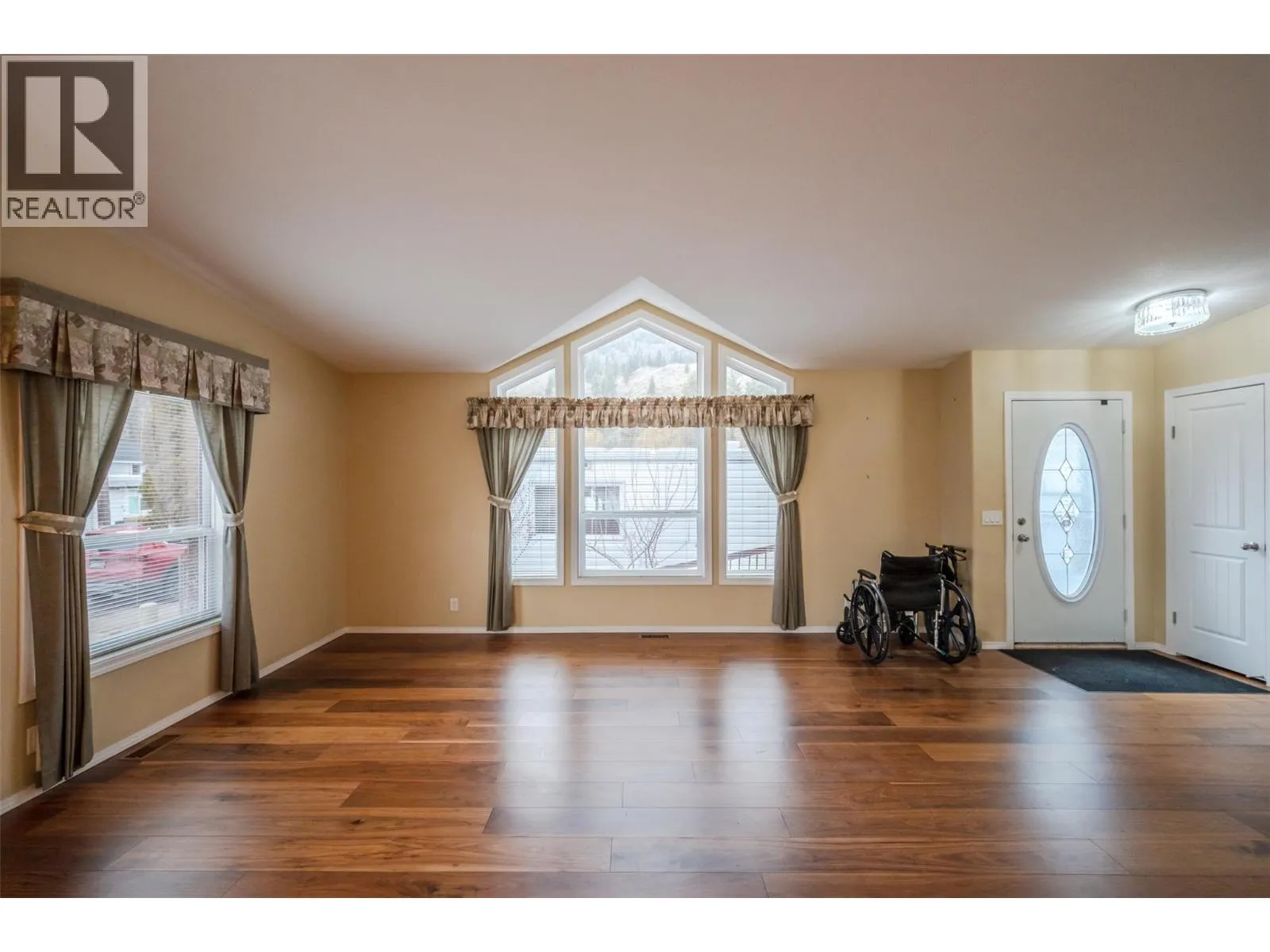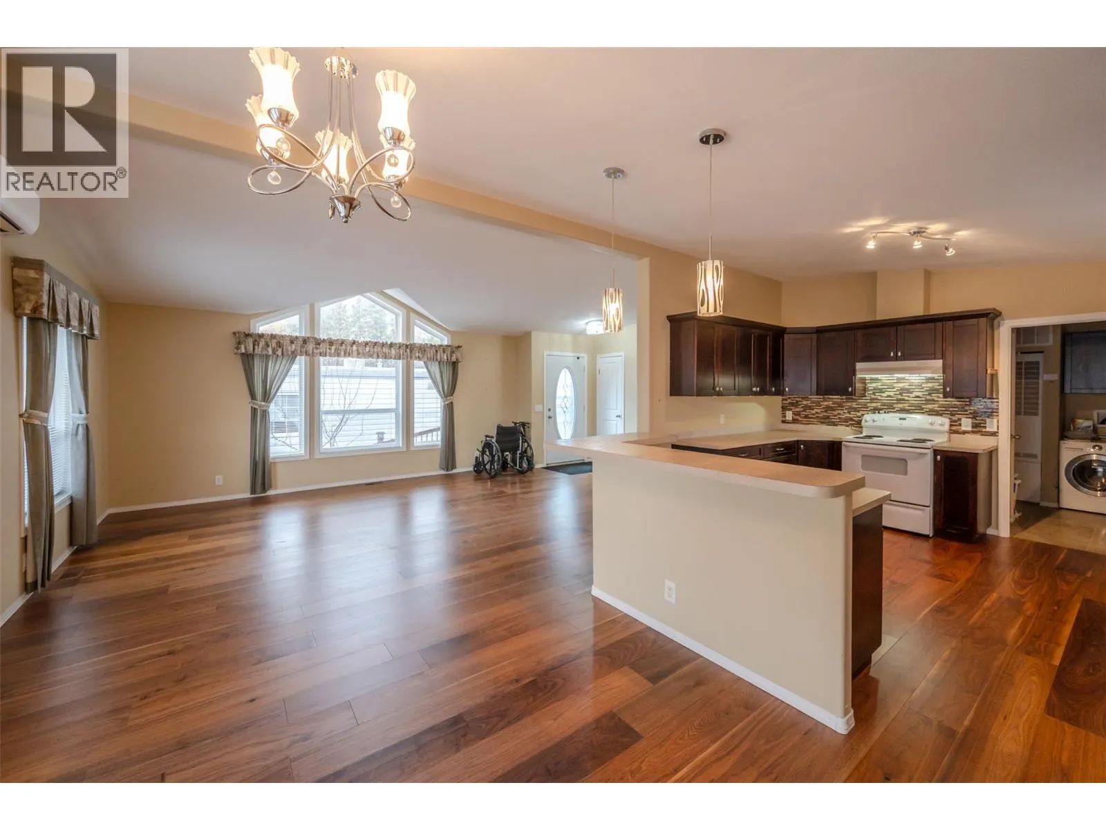 Discover the perfect blend of comfort and convenience in this beautiful and spacious modular home located in the highly sought-after Golden Arrow Mobile Home Park in OK Falls! Just minutes from the beach, award-winning wineries, and endless outdoor recreation, this 2009-built home offers a rare opportunity to join a welcoming 55+ community. Step inside to a bright, airy open-concept layout, where a generous kitchen flows seamlessly into the living area, filled with natural light from large windows. The home's 1481 square feet offers 2 bedrooms, a den, and 2 bathrooms, with plenty of space to relax, entertain, or simply enjoy the peaceful surroundings. Designed with accessibility in mind, this home offers a wheelchair-friendly interior and a convenient ramp to the entrance. The large lot provides parking for three vehicles in the front, while a back gate allows additional access to the yard. Two storage sheds add even more room for all your needs. Golden Arrow Mobile Home Park is a quiet, well-maintained, and pet-friendly community (with park approval) in a great location. Pad rent is $570/month and includes water, sewer, and garbage. Owner-occupied onlyâno rentalsâensuring a truly community-focused neighborhood. With quick possession available, this inviting home is waiting for its new owners! Book your private showing today. *Some photos virtually staged* (id:27476)