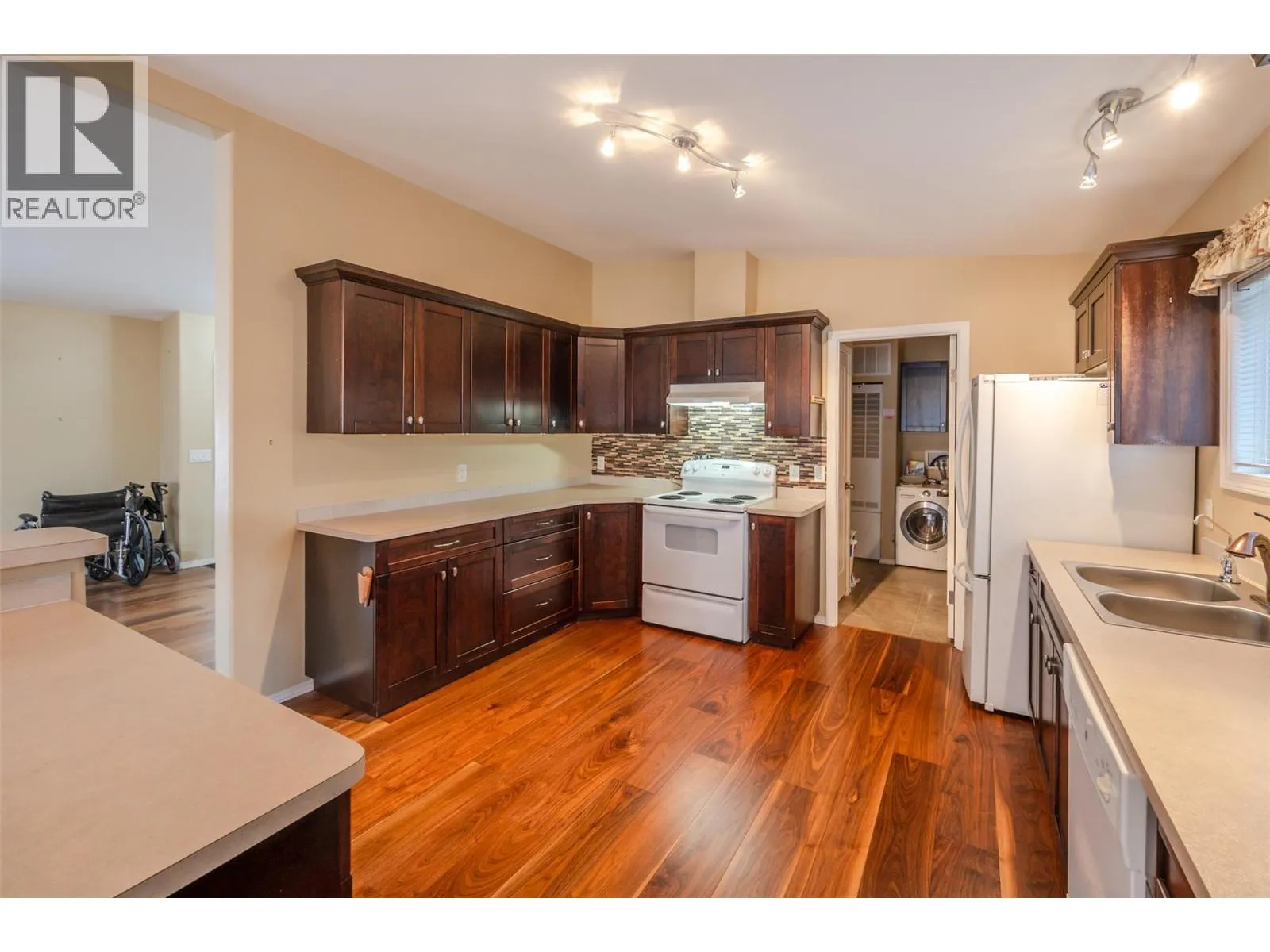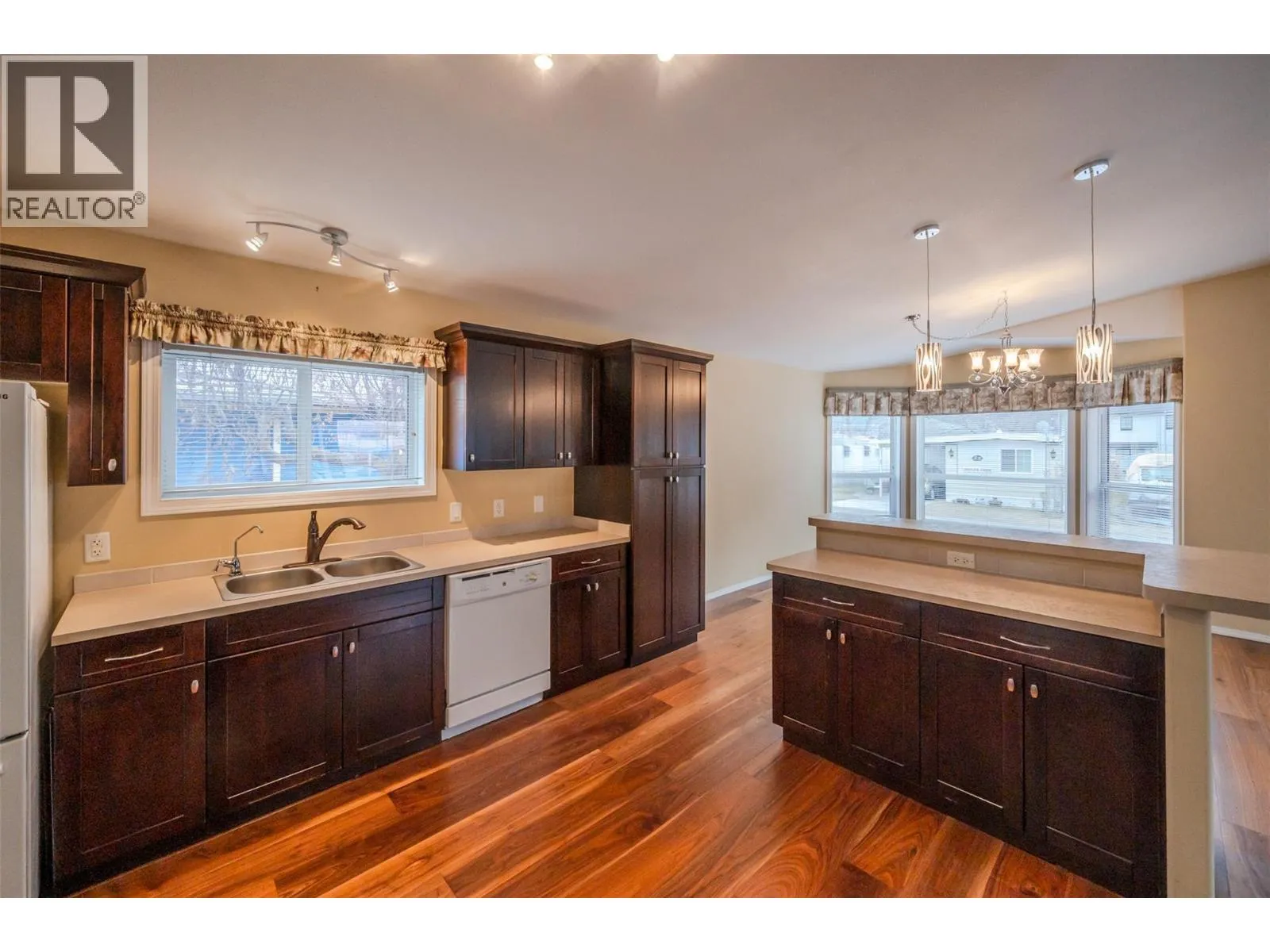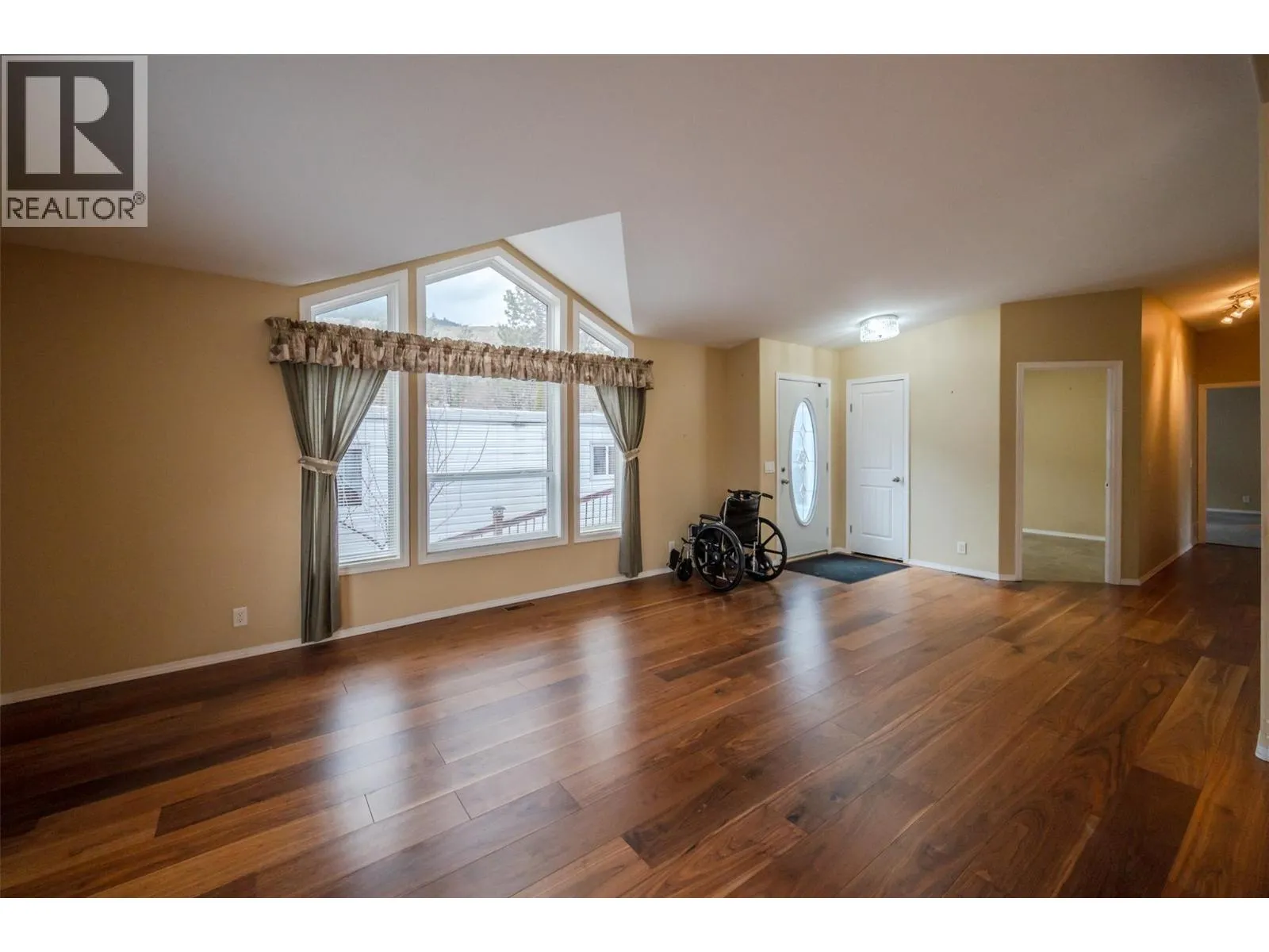 Discover the perfect blend of comfort and convenience in this beautiful and spacious modular home located in the highly sought-after Golden Arrow Mobile Home Park in OK Falls! Just minutes from the beach, award-winning wineries, and endless outdoor recreation, this 2009-built home offers a rare opportunity to join a welcoming 55+ community. Step inside to a bright, airy open-concept layout, where a generous kitchen flows seamlessly into the living area, filled with natural light from large windows. The home's 1481 square feet offers 2 bedrooms, a den, and 2 bathrooms, with plenty of space to relax, entertain, or simply enjoy the peaceful surroundings. Designed with accessibility in mind, this home offers a wheelchair-friendly interior and a convenient ramp to the entrance. The large lot provides parking for three vehicles in the front, while a back gate allows additional access to the yard. Two storage sheds add even more room for all your needs. Golden Arrow Mobile Home Park is a quiet, well-maintained, and pet-friendly community (with park approval) in a great location. Pad rent is $570/month and includes water, sewer, and garbage. Owner-occupied onlyâno rentalsâensuring a truly community-focused neighborhood. With quick possession available, this inviting home is waiting for its new owners! Book your private showing today. *Some photos virtually staged* (id:27476)