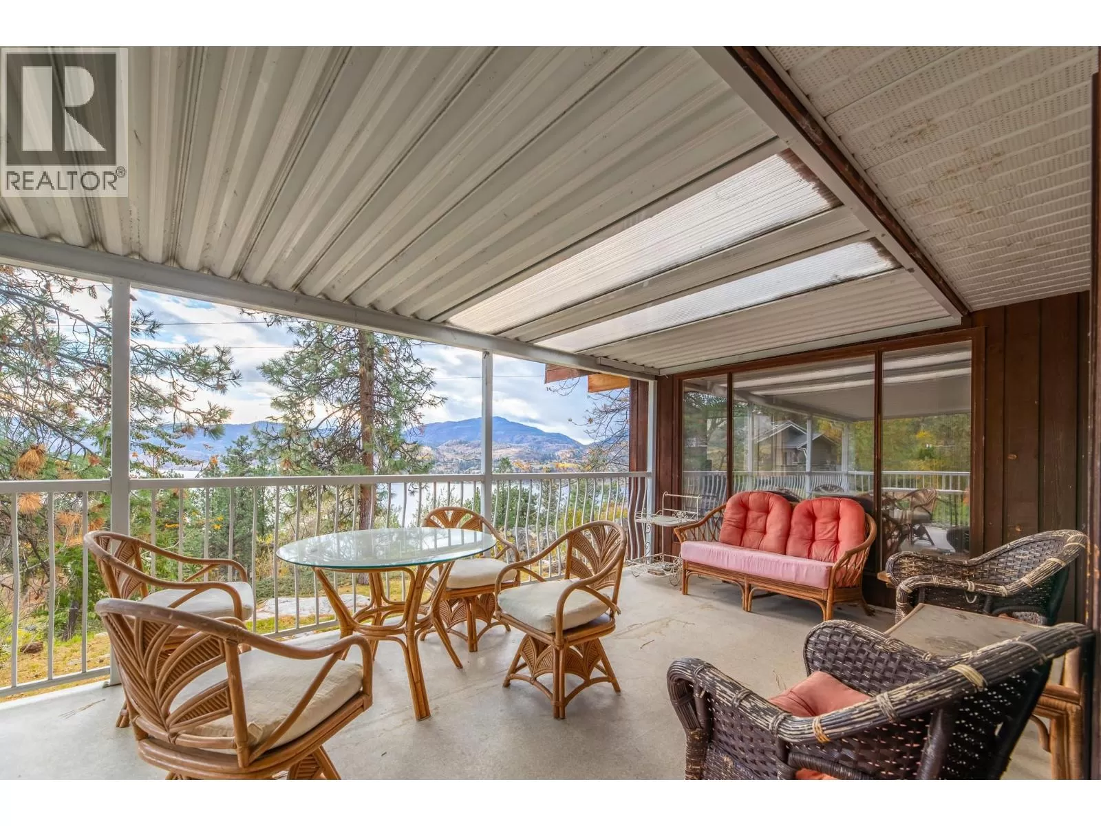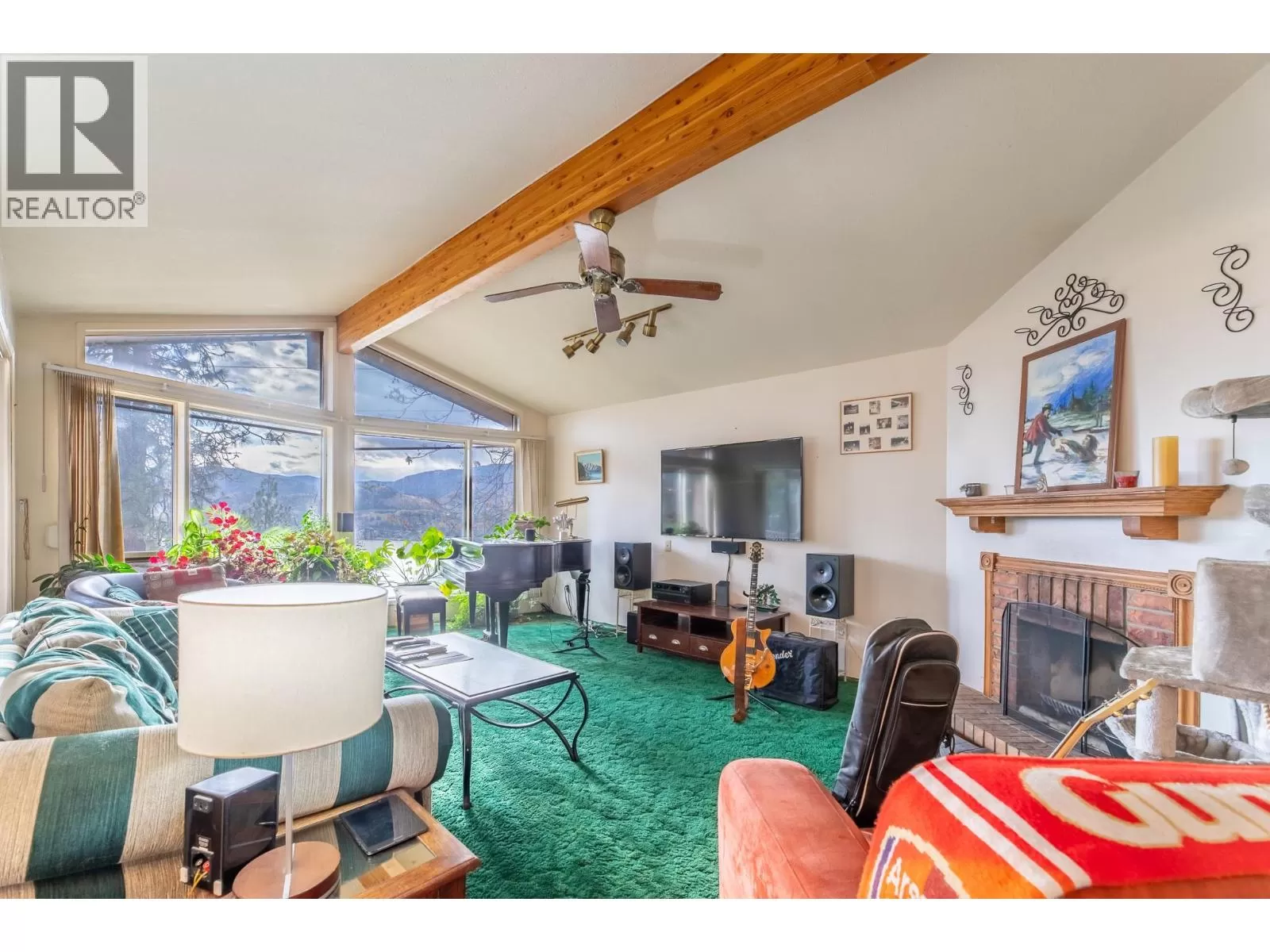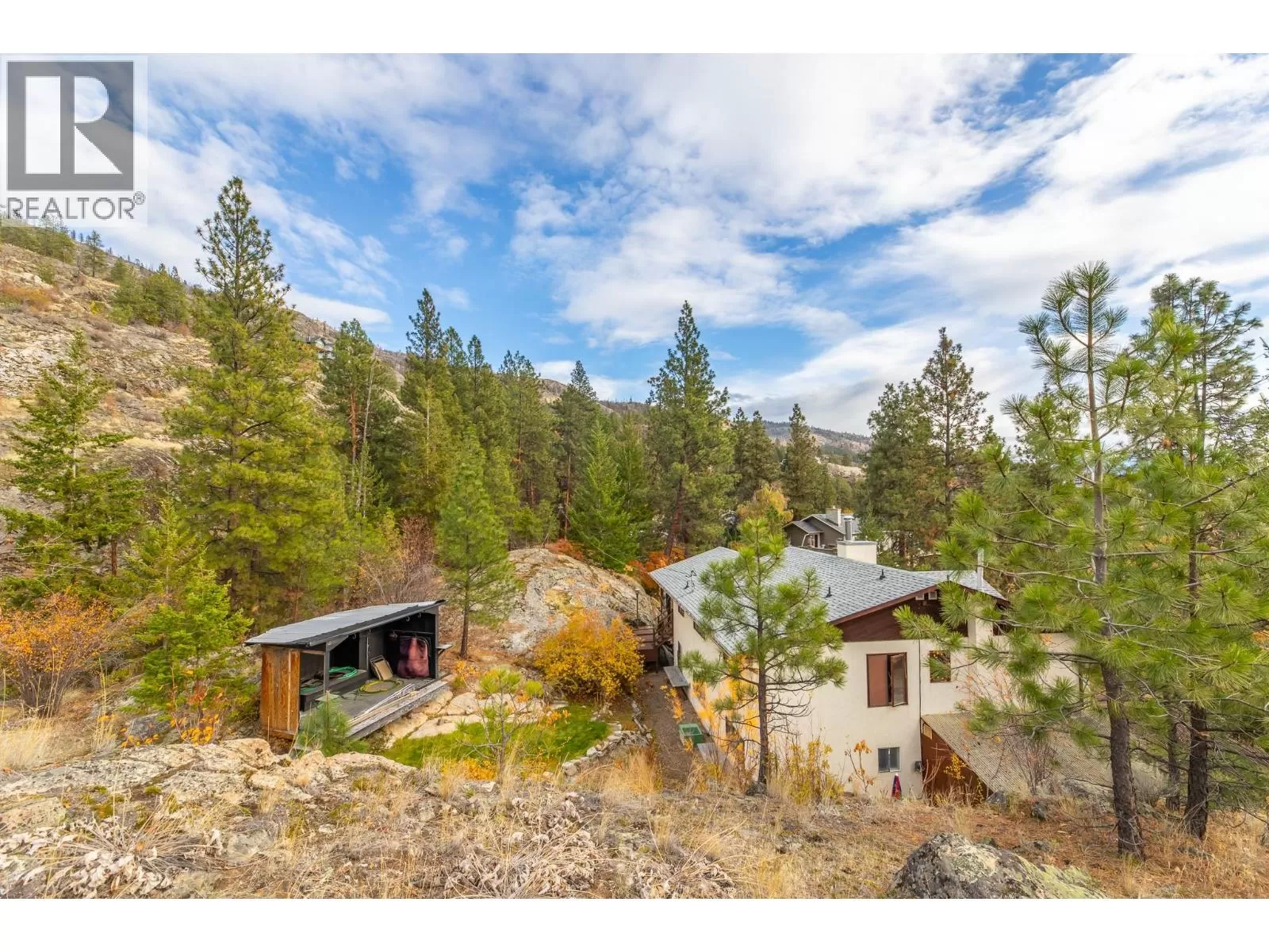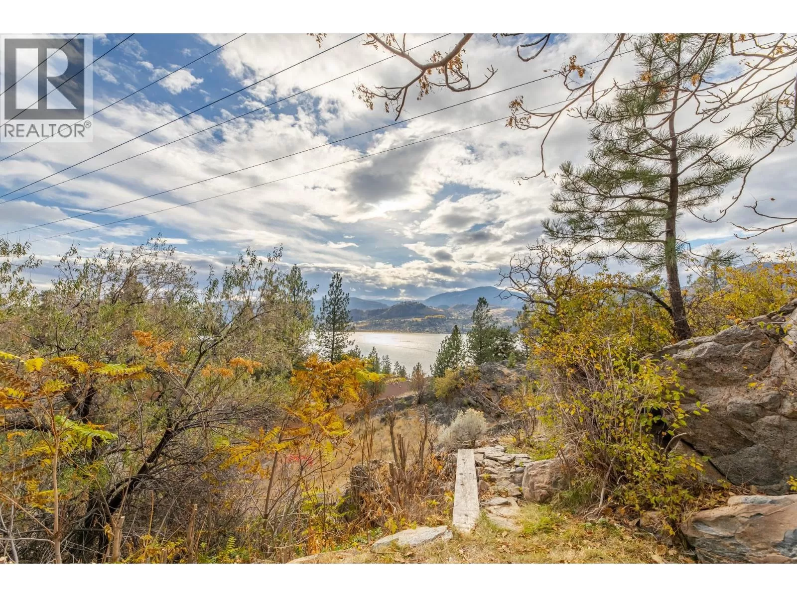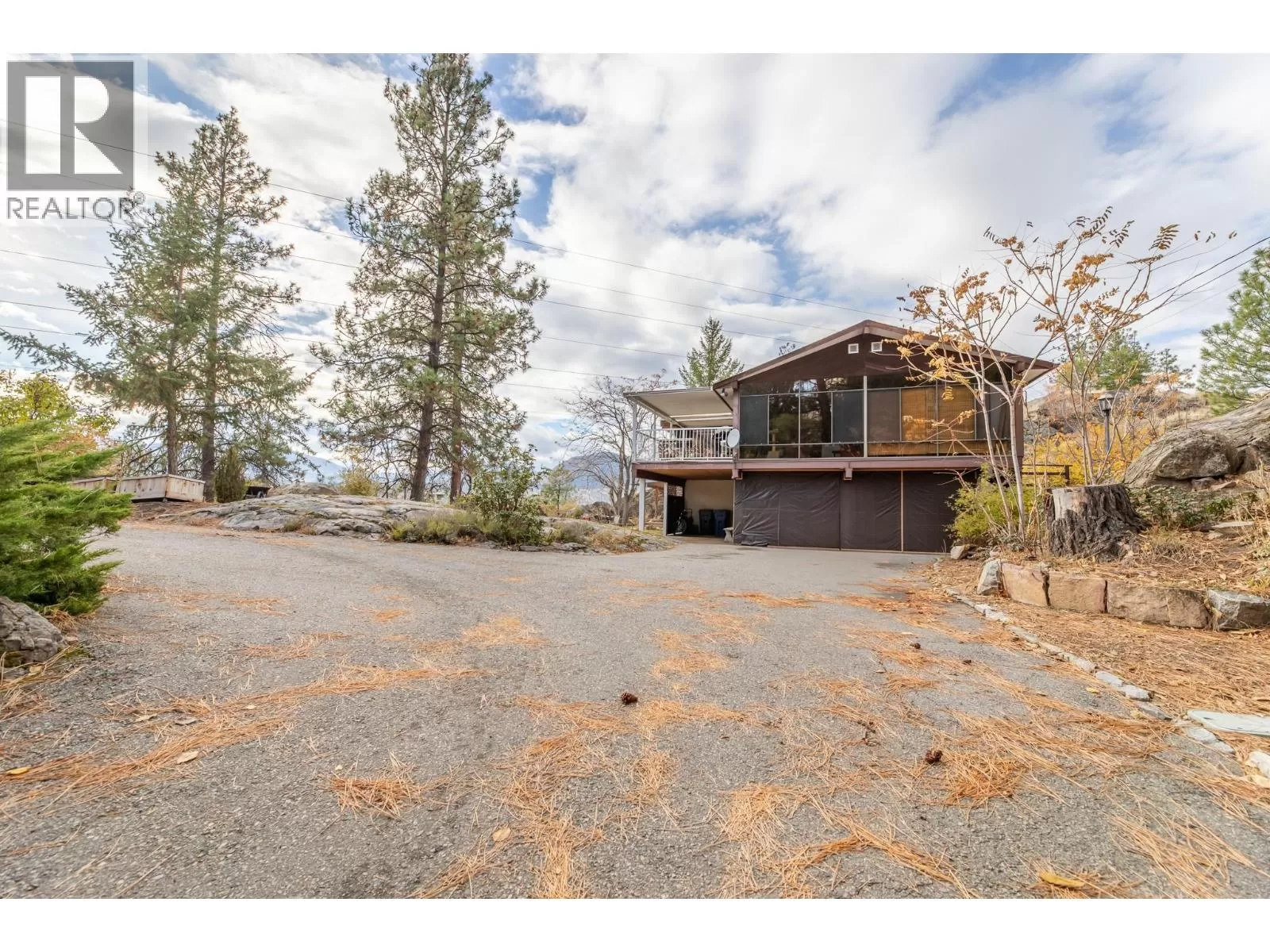 Perched at the end of a quiet cul-de-sac in sought-after Heritage Hills, this private 4-acre property offers breathtaking views of Skaha Lake and a rare natural landscape featuring striking rock outcroppings. A private driveway leads you to the homeâs entrance, tucked into a serene and beautifully secluded setting. Originally built in 1982, the spacious home features a well-designed floor plan with vaulted ceilings and a cozy fireplace in the living room. The main level includes three bedrooms, while the lower level offers two additional bedrooms, a large family room with a gas fireplace, and walk-out access. An enclosed entertainment deck provides the perfect space for year-round enjoyment, and a double carport adds to the convenience. Zoned to allow a second dwelling or a legal secondary suite, this property presents an exceptional opportunity for customization or future development. Direct access to over 150+ acres of adjacent Nature Trust land with hiking trails makes this a haven for nature lovers. (id:27476)