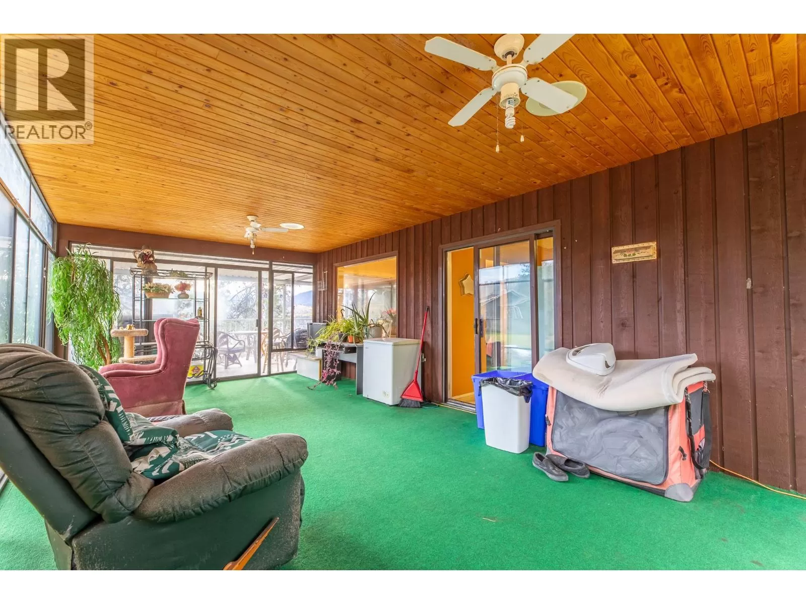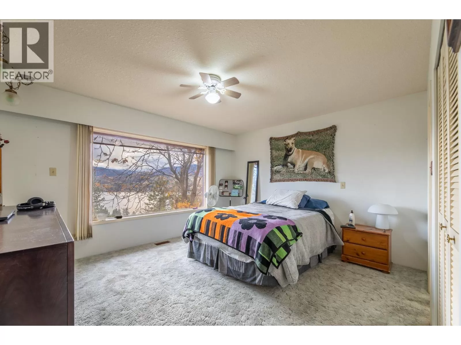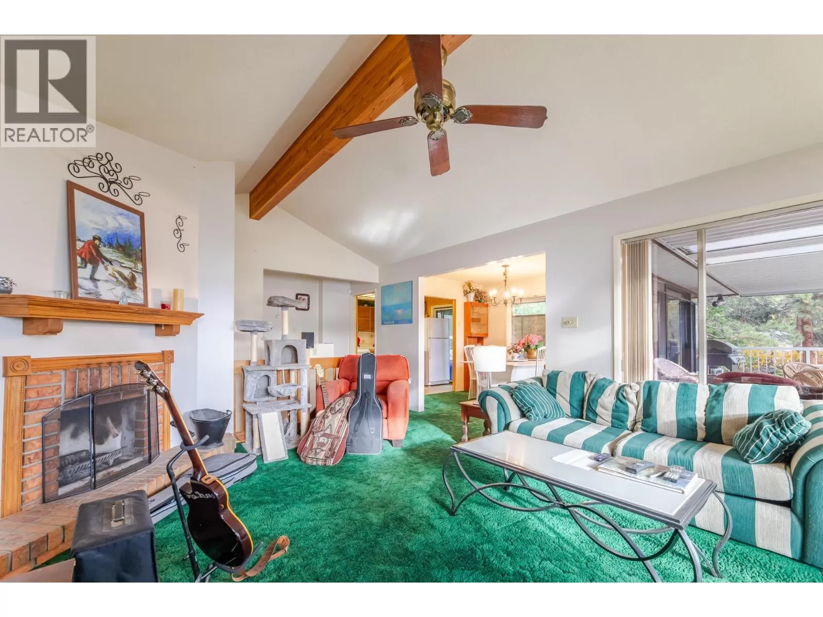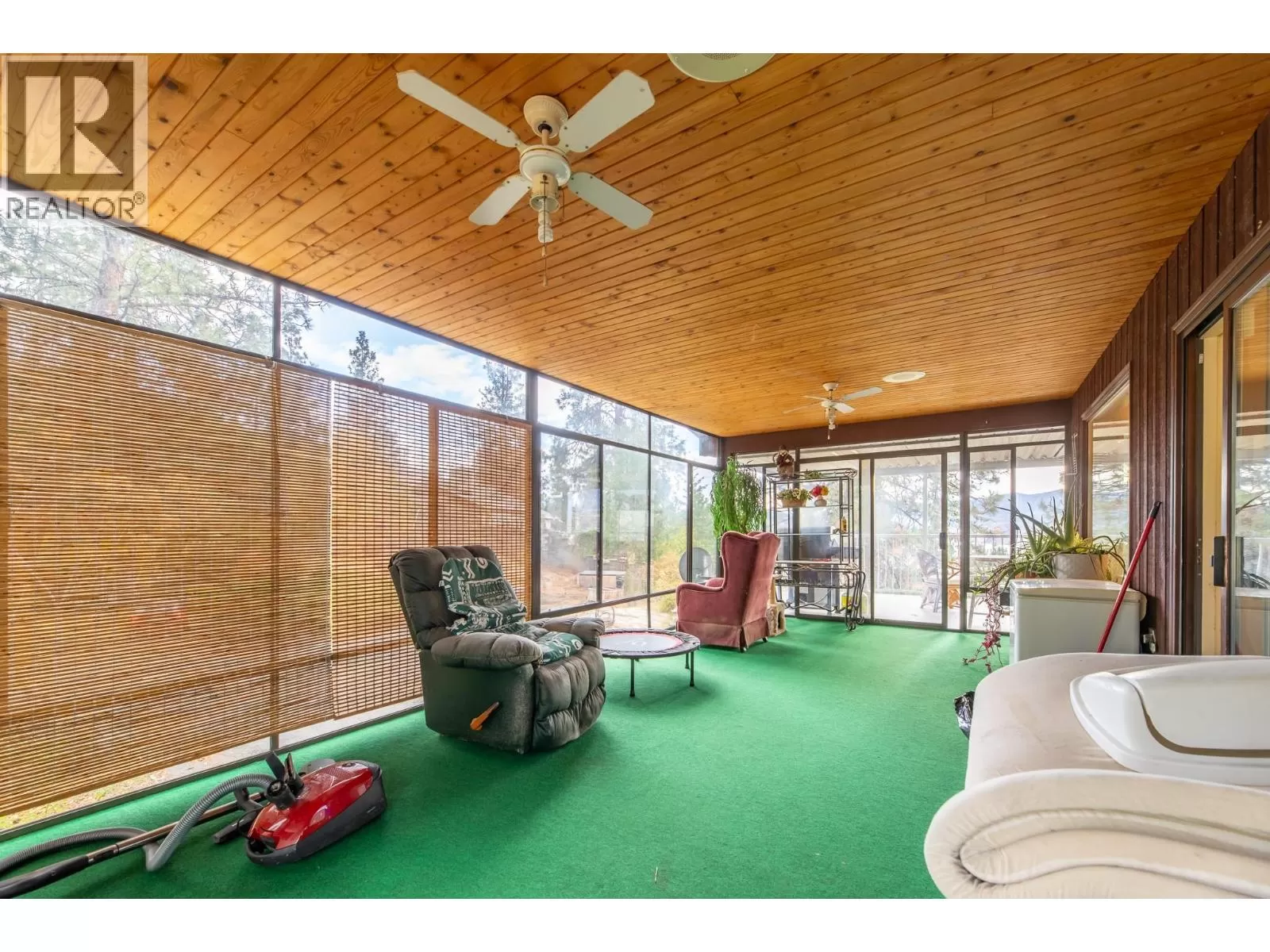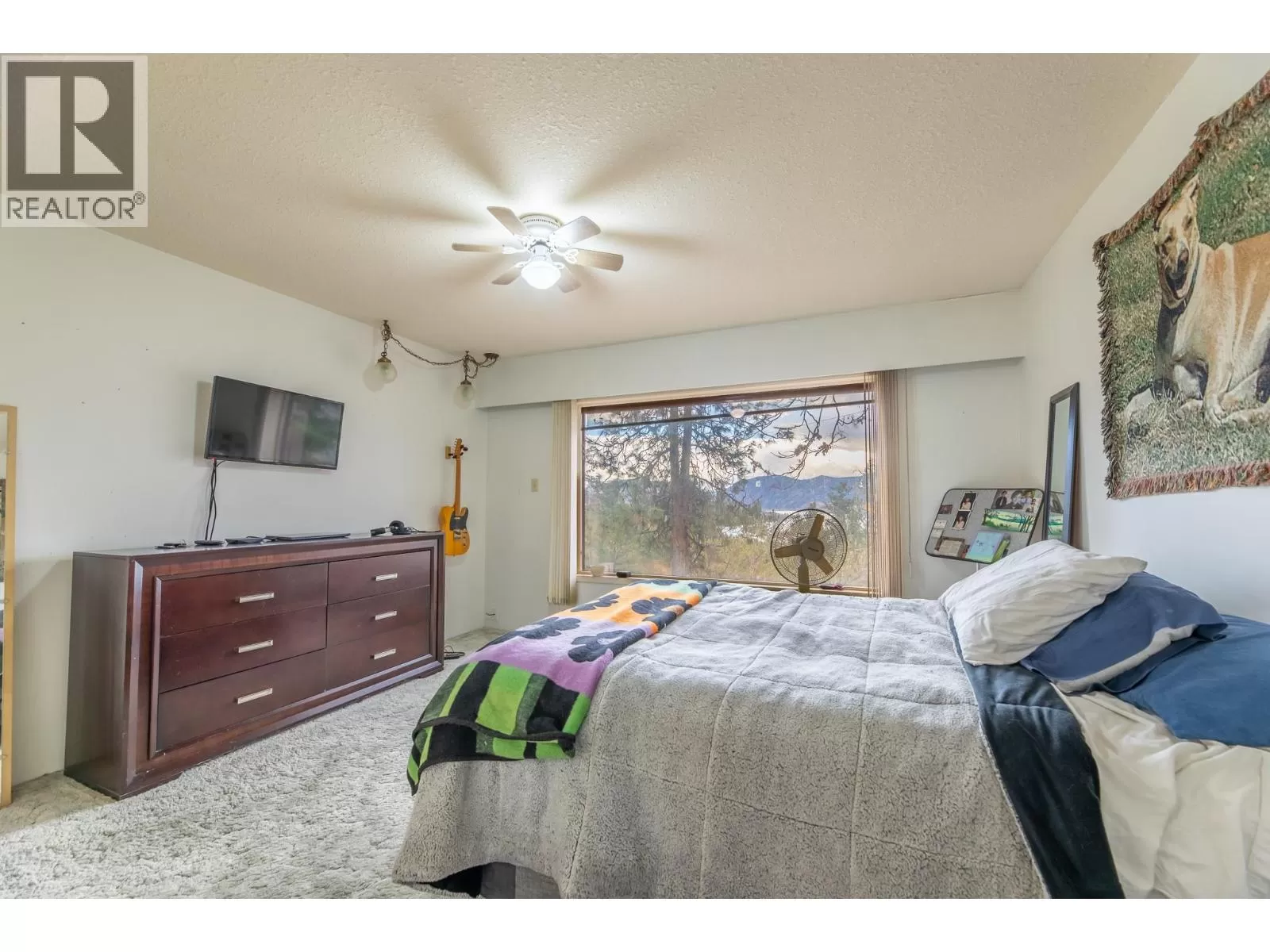 Perched at the end of a quiet cul-de-sac in sought-after Heritage Hills, this private 4-acre property offers breathtaking views of Skaha Lake and a rare natural landscape featuring striking rock outcroppings. A private driveway leads you to the homeâs entrance, tucked into a serene and beautifully secluded setting. Originally built in 1982, the spacious home features a well-designed floor plan with vaulted ceilings and a cozy fireplace in the living room. The main level includes three bedrooms, while the lower level offers two additional bedrooms, a large family room with a gas fireplace, and walk-out access. An enclosed entertainment deck provides the perfect space for year-round enjoyment, and a double carport adds to the convenience. Zoned to allow a second dwelling or a legal secondary suite, this property presents an exceptional opportunity for customization or future development. Direct access to over 150+ acres of adjacent Nature Trust land with hiking trails makes this a haven for nature lovers. (id:27476)