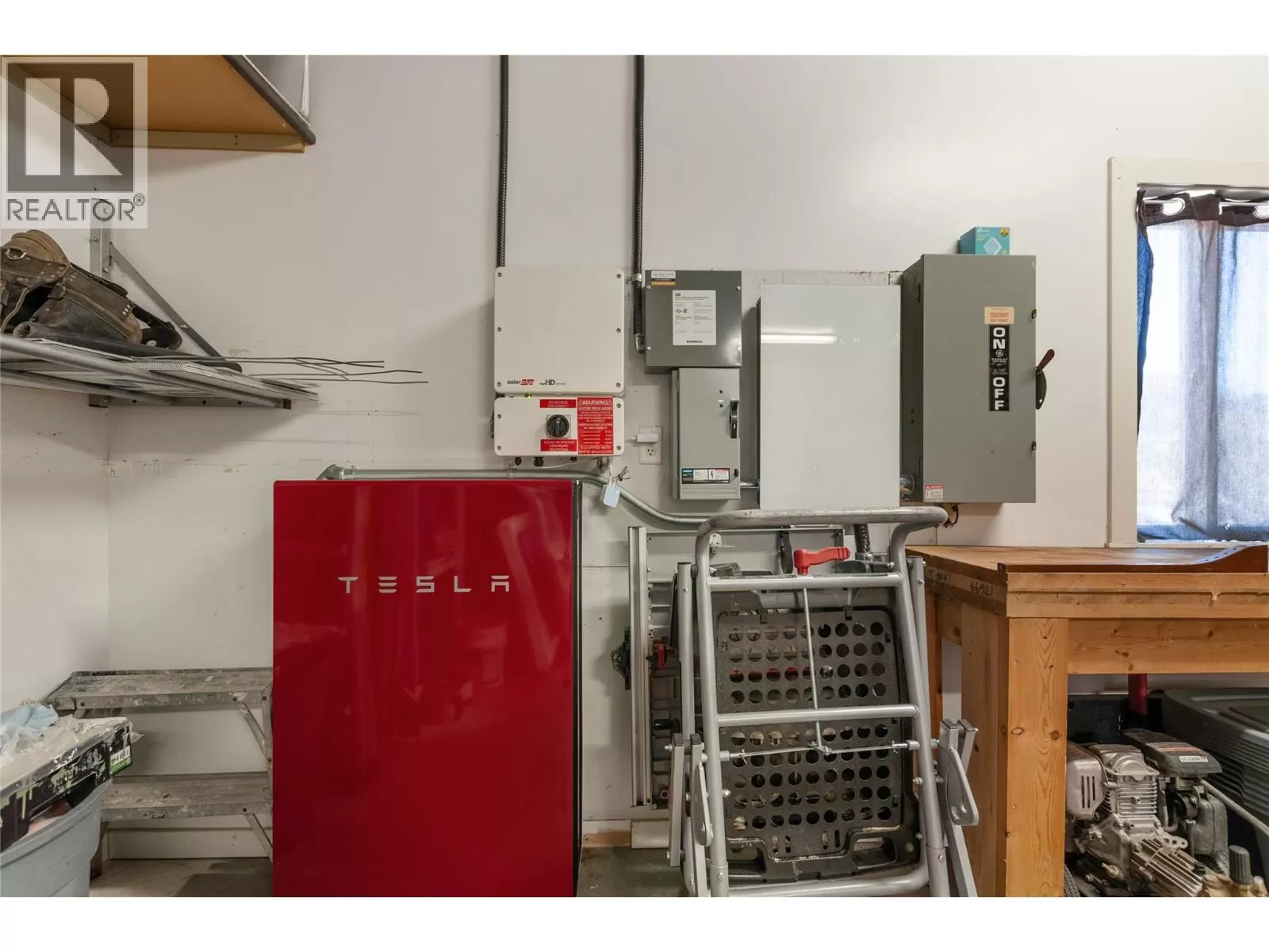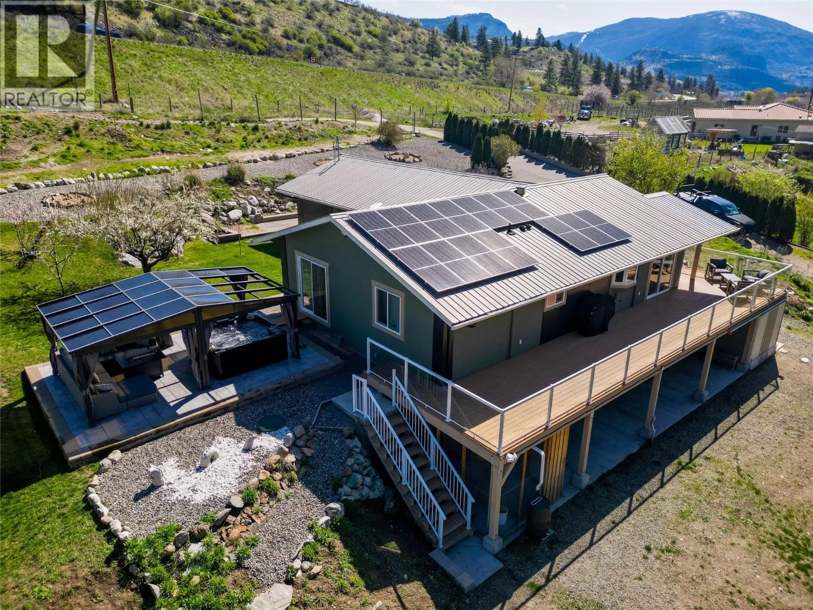 CLICK TO VIEW VIDEO: Discover the freedom of self-reliant living at 1998 Highway 97, just south of Okanagan Falls. This 2004-built walkout bungalow sits on 1.41 acres and has an impressive EnerGuide rating of 1. Enjoy privacy, updates, and modern efficiency. Free yourself from costly levies and municipal upgrades with your own private well, on-site septic system, and a 15.4 kW solar array paired with twin Tesla Powerwalls for power storage and 50 amp EV charging. The double garage, RV parking, and automatic gate provide convenience and security, while architectural metal panels, stucco exterior and metal roofing deliver striking curb appeal. Inside, the bright open-concept living space is highlighted by smart appliances, sleek finishes, and large south-facing windows. The main floor offers 3 bedrooms and 2 bathrooms, including a primary suite with ensuite. The walkout basement expands your options with a spacious rec room and unfinished areas for a gym or studio. Outdoors, enjoy the large composite deck, fruit trees, chicken coop, and a private gazebo with a hot tub. This property backs onto Vaseux Lake, a bird sanctuary and fishing paradise. True independence with all the lifestyle benefits of the South Okanagan. Buyers to verify measurements if deemed important, some storage space in the basement is unfinished. (id:27476)