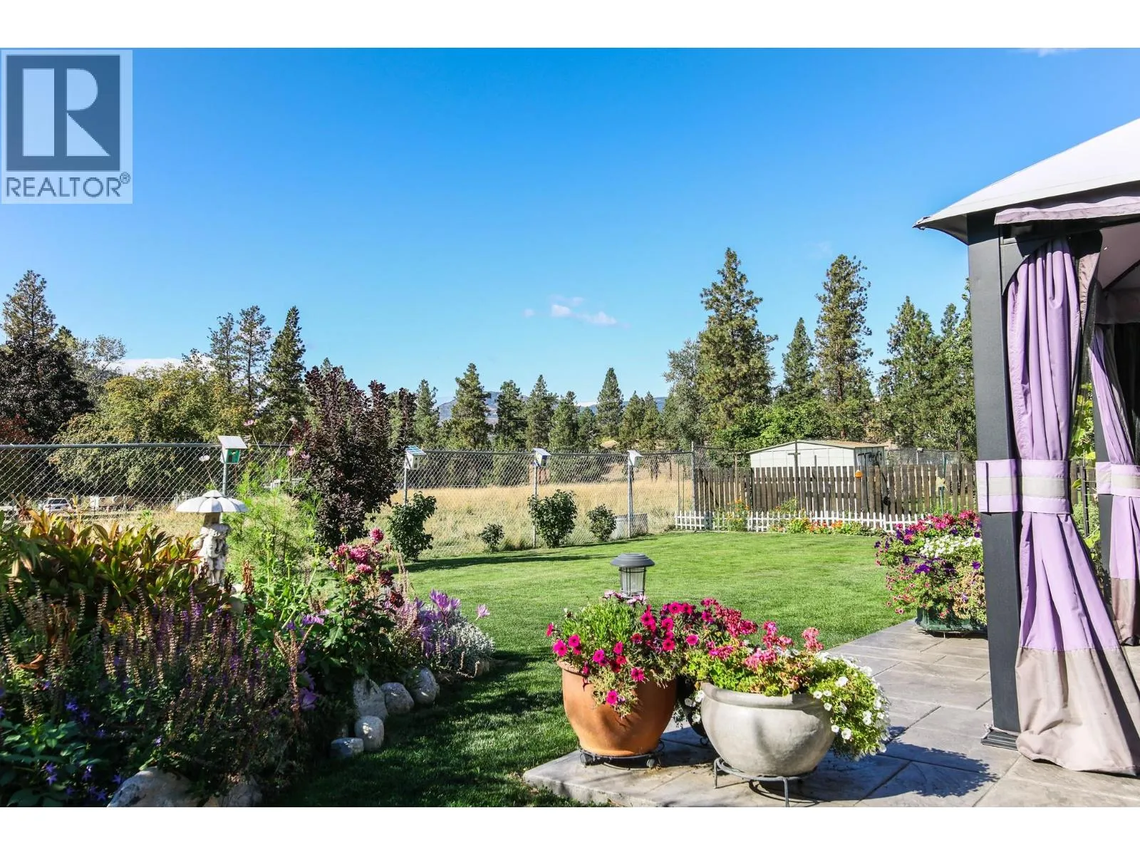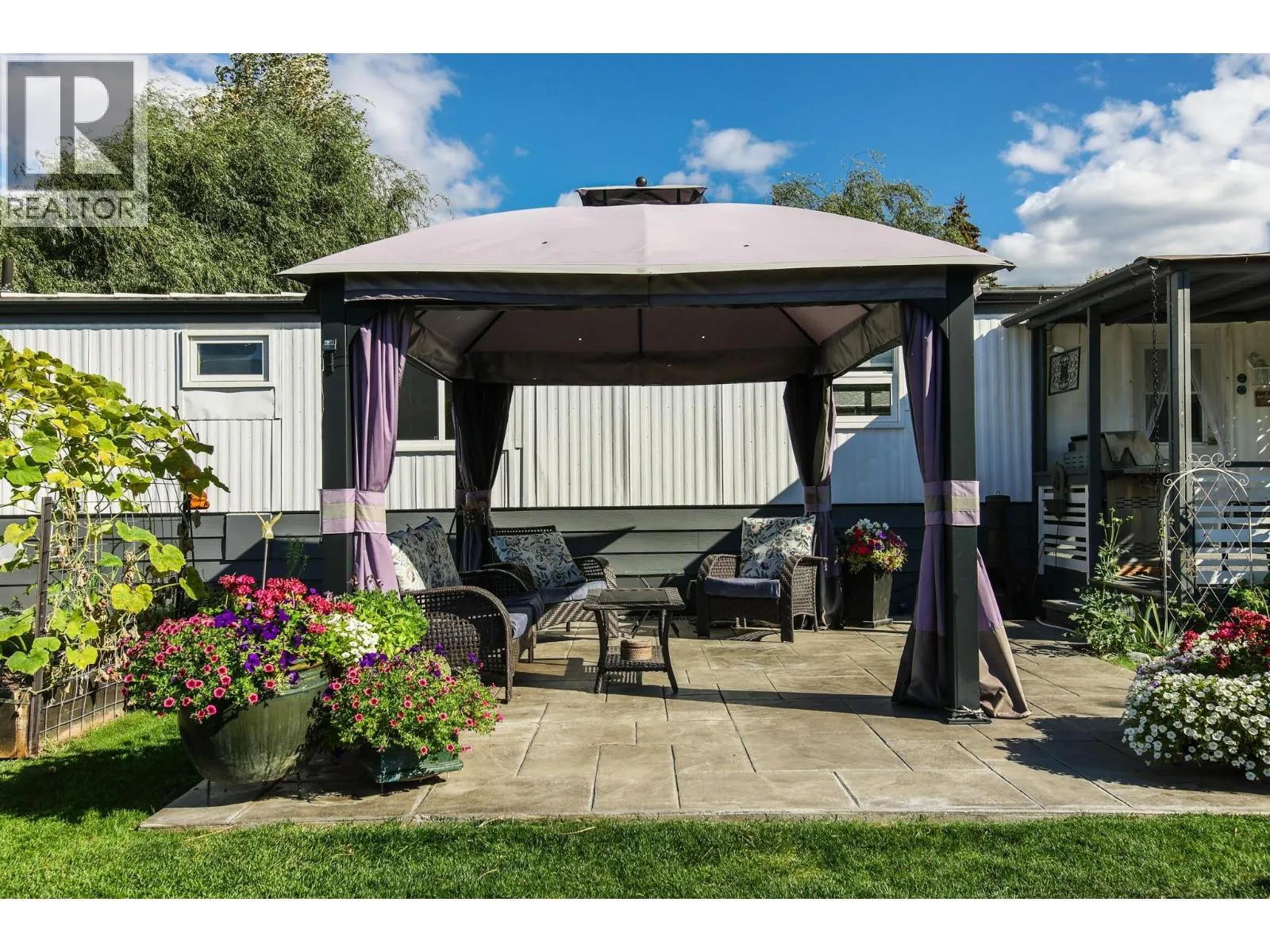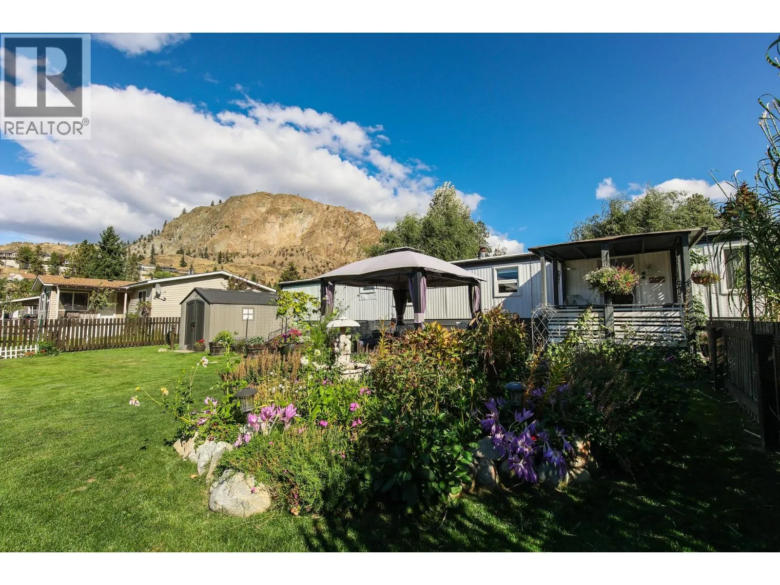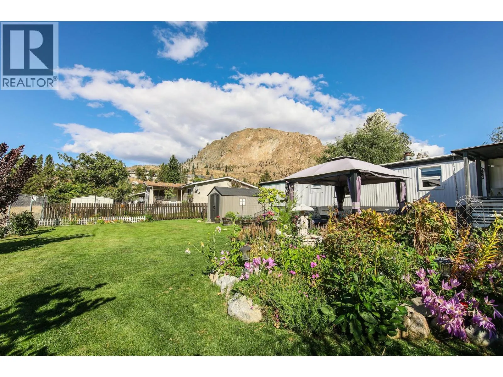 MOTIVATED SELLERS! END LOT MOBILE HOME WITH LARGE YARD AND AMAZING VIEWS! Welcome to one of the nicest lots right here at the very sought after PEACH CLIFF ESTATES! Right here in beautiful OK Falls, this amazingly landscaped home is situated facing West overlooking large open pasture making for truly private living! This breathtaking recently renovated bright and open home has been fully transformed with modern finishings and appliances (4 yrs) with Extensive renovations! Kitchen is a spacious U shape with with quartz counter tops, soft close drawers, with a view while prepping dinner. This 2 Bedroom, 1 Bath 900+ sqft home is perfect for entertaining friends and family with a large 17x14 stamped concrete deck and gazebo, BBQ and unobstructed views. Yard is beautifully landscaped with rock and box garden features, storage shed, and fencing. This home has 2 parking stalls, and RV/Boat storage also available in the park. Stroll only a few steps to the Peach Cliff pathway along Shuttleworth Creek making for a remarkable daily walk. Peach Cliff Estates is only a few minutes from downtown shopping, Skaha beach, vineyards, recreation, Christie Memorial Park, and Kenyon Park, Legion, Grocery store, and Falls Hotel! Located just 15 minutes South of Penticton and 15 minutes North of Oliver gives this 55+ park many additional options for shopping and recreation while maintaining private retirement living! Pets allowed upon approval, and no rentals. Measurements are approx. Book today! (id:27476)
