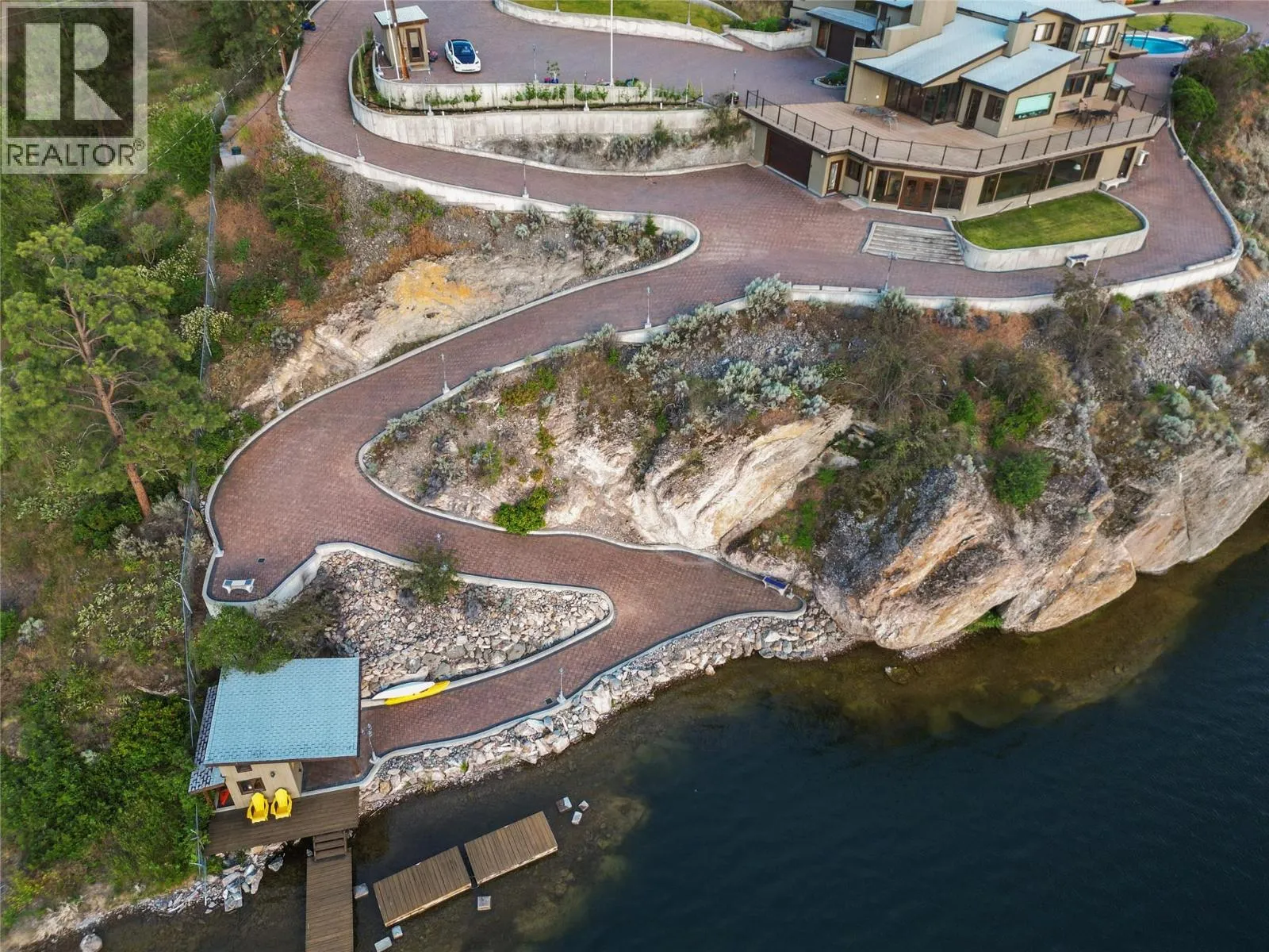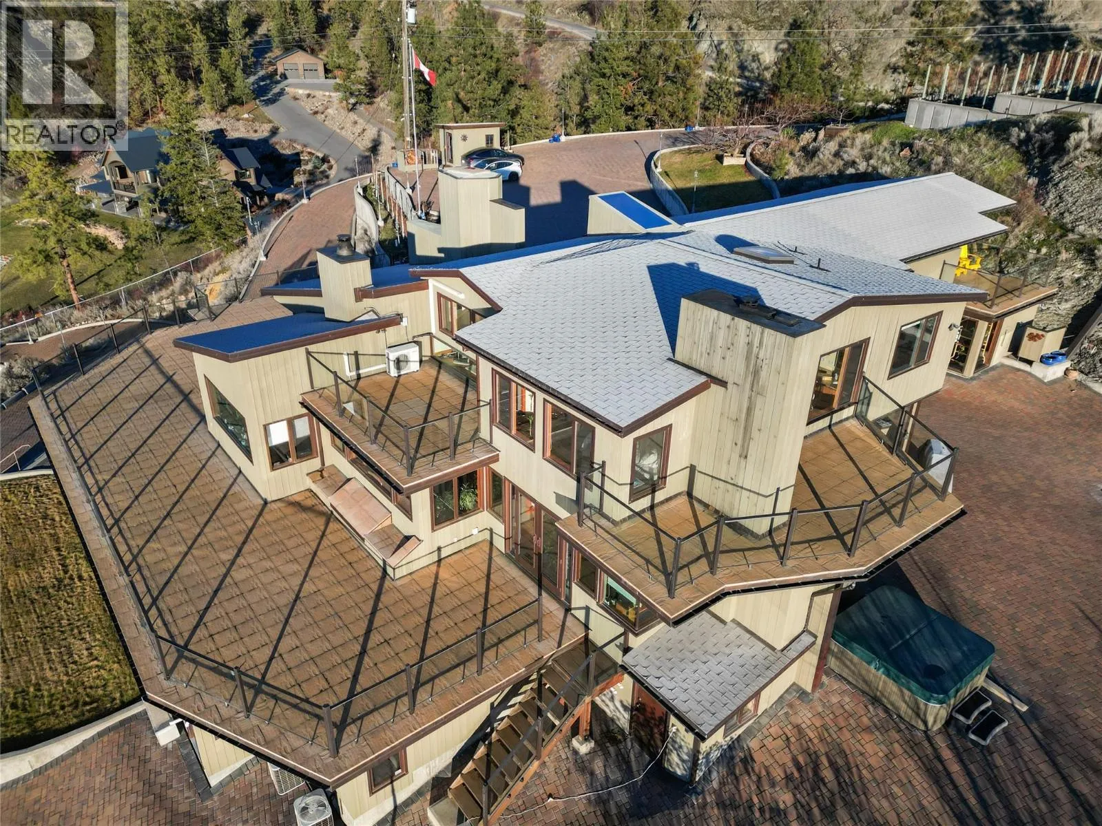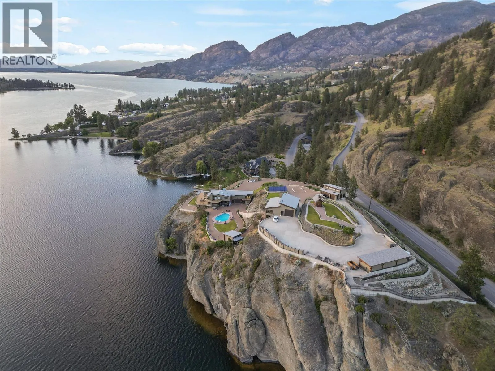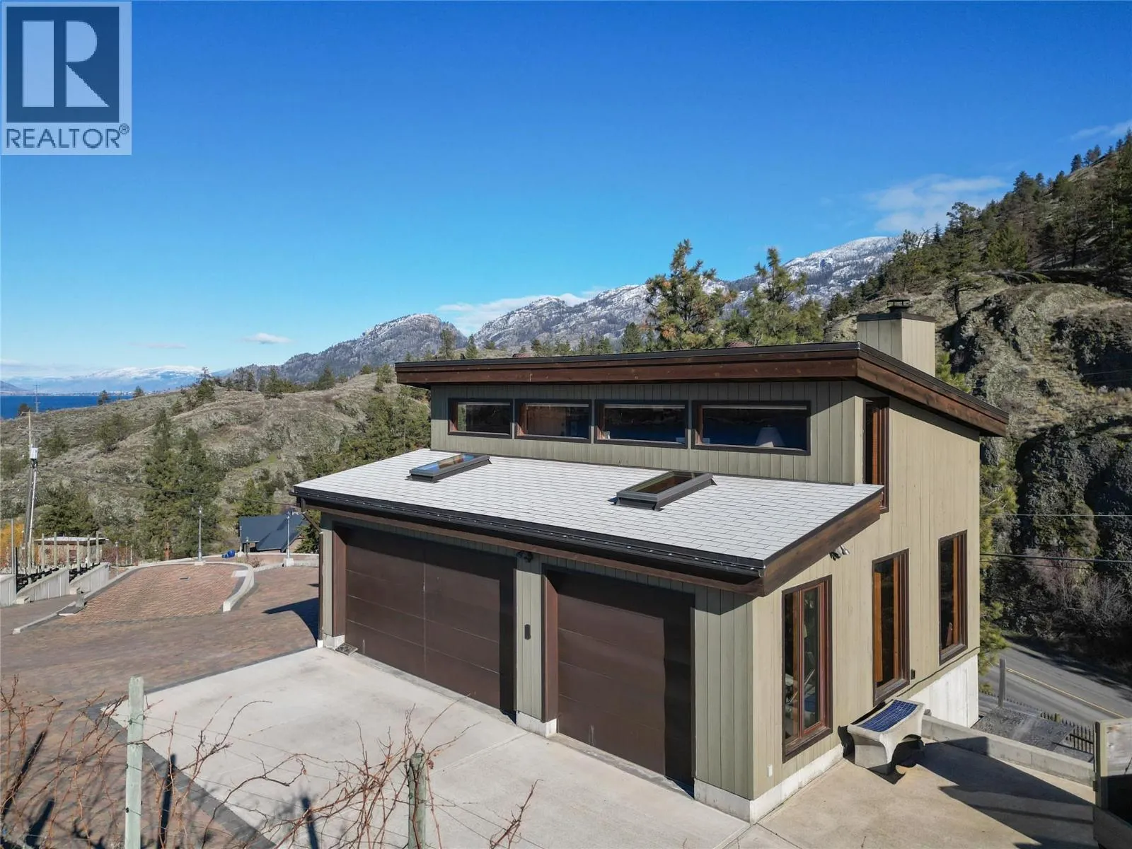 Enter through the private hand-crafted wrought iron gate you'll immediately be wowed by the home's unique charm and inviting atmosphere. The tastefully renovated home seamlessly flows into an exceptional views of Skaha Lake featuring the wonderful sunsets over the neighbouring hills. Outside you can marvel at the rock features that border an inviting in ground pool or take a stroll to the road leading down to over 550 ft of lakeshore. Inside the Ron Thomâs architecture features an award winning design tastefully updated incorporating many unique features including copper framed windows and doors, hand-crafted copper stair railing, native eagle motif skylight, ceramic tile throughout, expansive use of glass and over 2100 sq/ft of deck. The primary bedroom with a den area offers versatility for a home office or cozy reading nook. The updated lower level is a treasure, featuring a closed breezeway with a walk in fridge - endless possibilities here! Ample space for RV parking or additional vehicles. Privately located with the perfect proximity to restaurants, shops, schools, and beautiful Skaha lake. This property is not just a house; it's an investment in a lifestyle that effortlessly combines the charm of the past with the comforts of today. Call today to arrange private viewing. (id:27476)