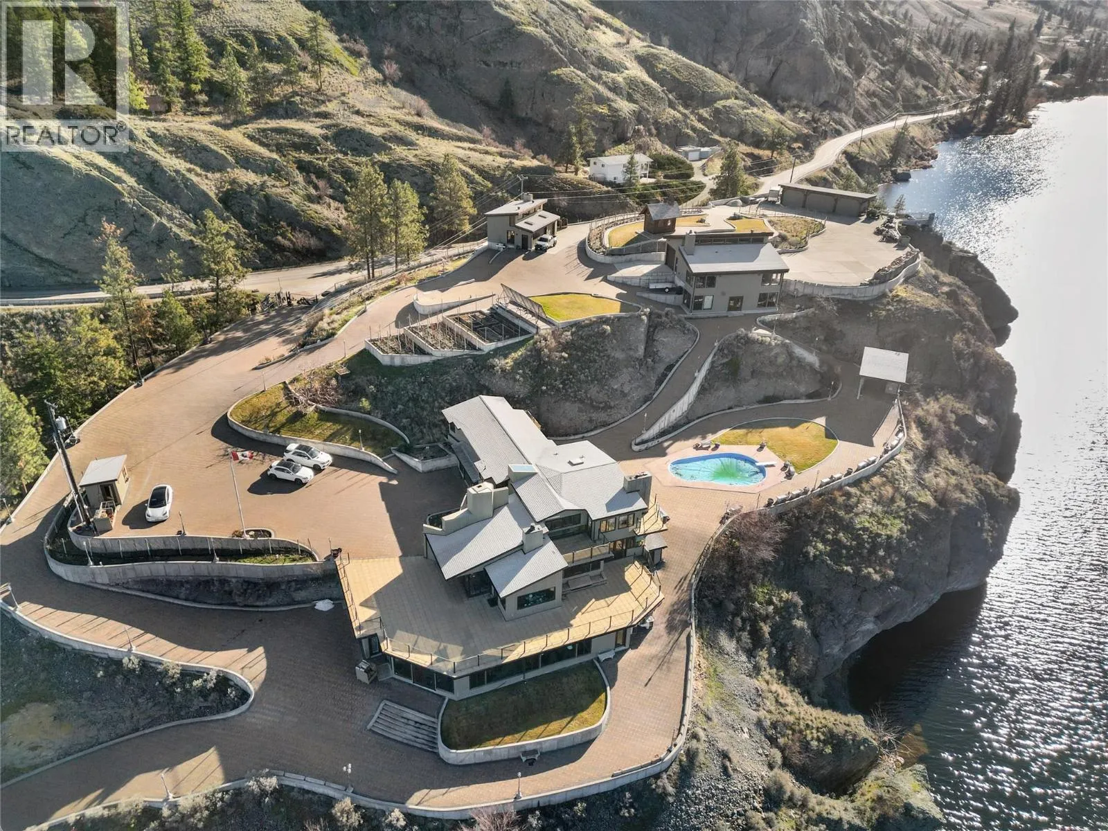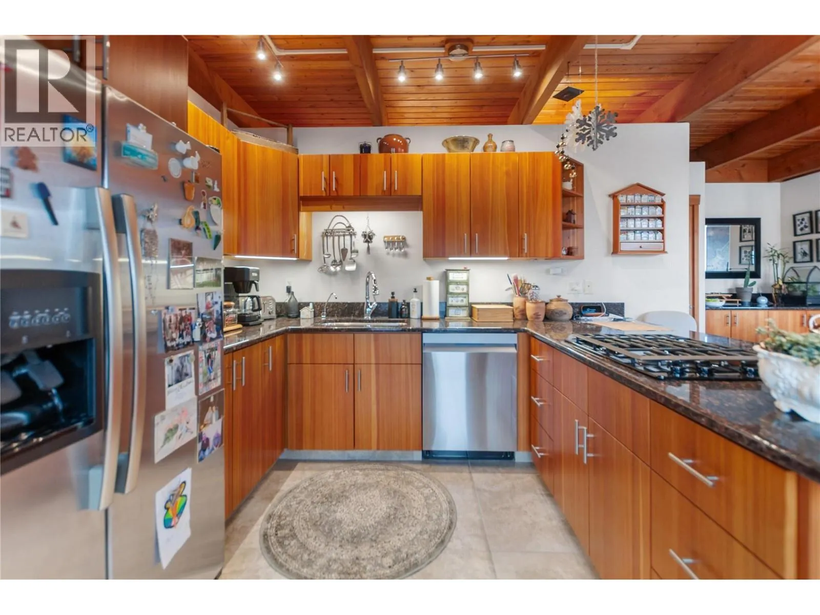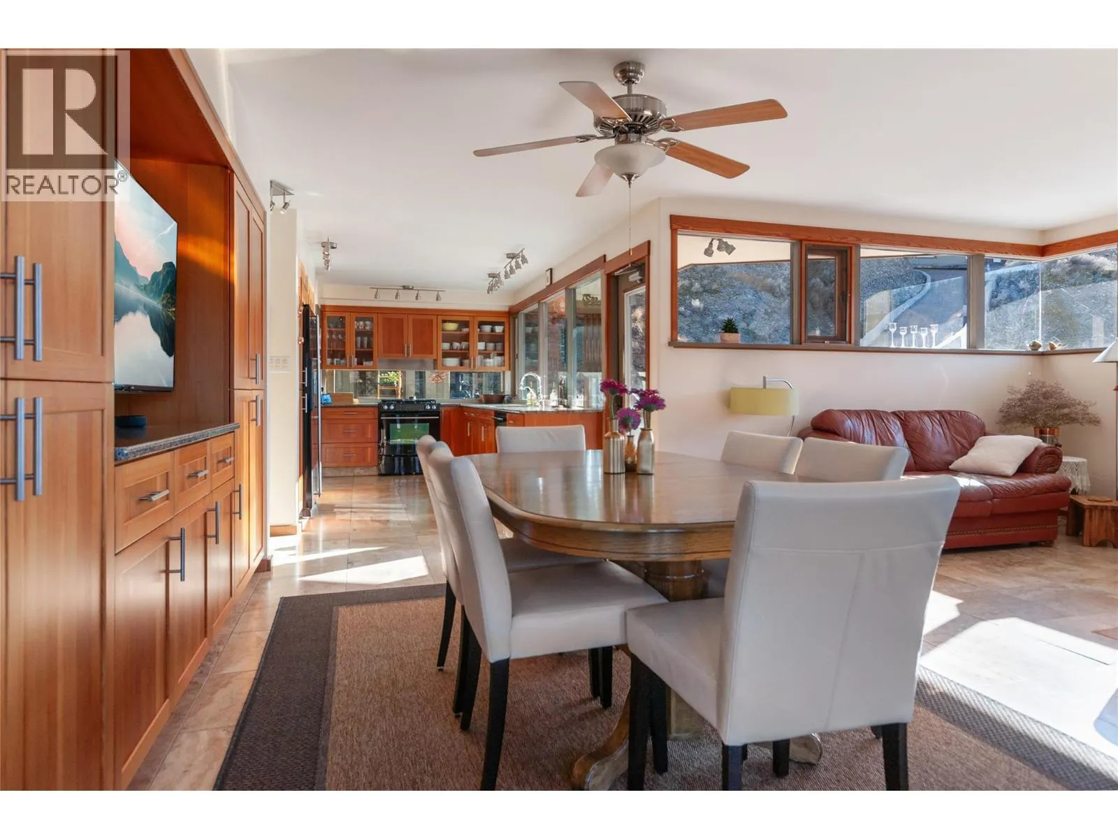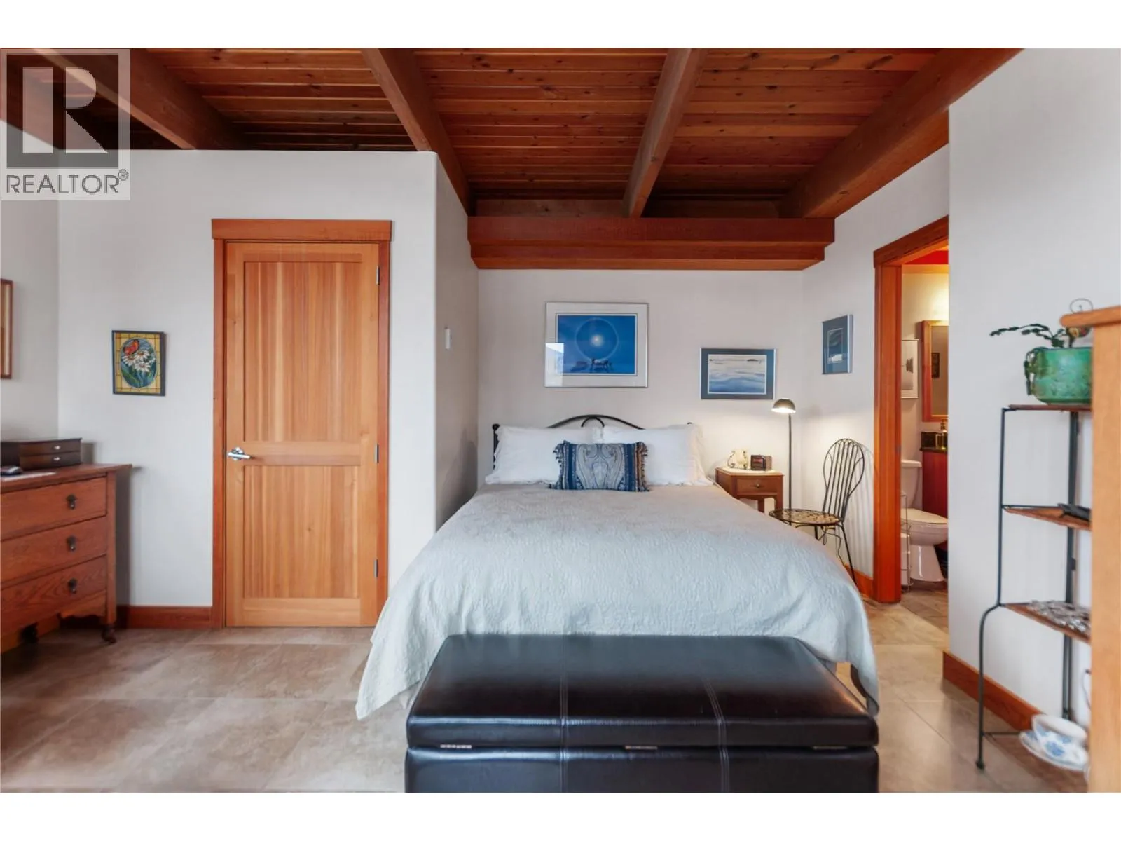 Enter through the private hand-crafted wrought iron gate you'll immediately be wowed by the home's unique charm and inviting atmosphere. The tastefully renovated home seamlessly flows into an exceptional views of Skaha Lake featuring the wonderful sunsets over the neighbouring hills. Outside you can marvel at the rock features that border an inviting in ground pool or take a stroll to the road leading down to over 550 ft of lakeshore. Inside the Ron Thomâs architecture features an award winning design tastefully updated incorporating many unique features including copper framed windows and doors, hand-crafted copper stair railing, native eagle motif skylight, ceramic tile throughout, expansive use of glass and over 2100 sq/ft of deck. The primary bedroom with a den area offers versatility for a home office or cozy reading nook. The updated lower level is a treasure, featuring a closed breezeway with a walk in fridge - endless possibilities here! Ample space for RV parking or additional vehicles. Privately located with the perfect proximity to restaurants, shops, schools, and beautiful Skaha lake. This property is not just a house; it's an investment in a lifestyle that effortlessly combines the charm of the past with the comforts of today. Call today to arrange private viewing. (id:27476)
