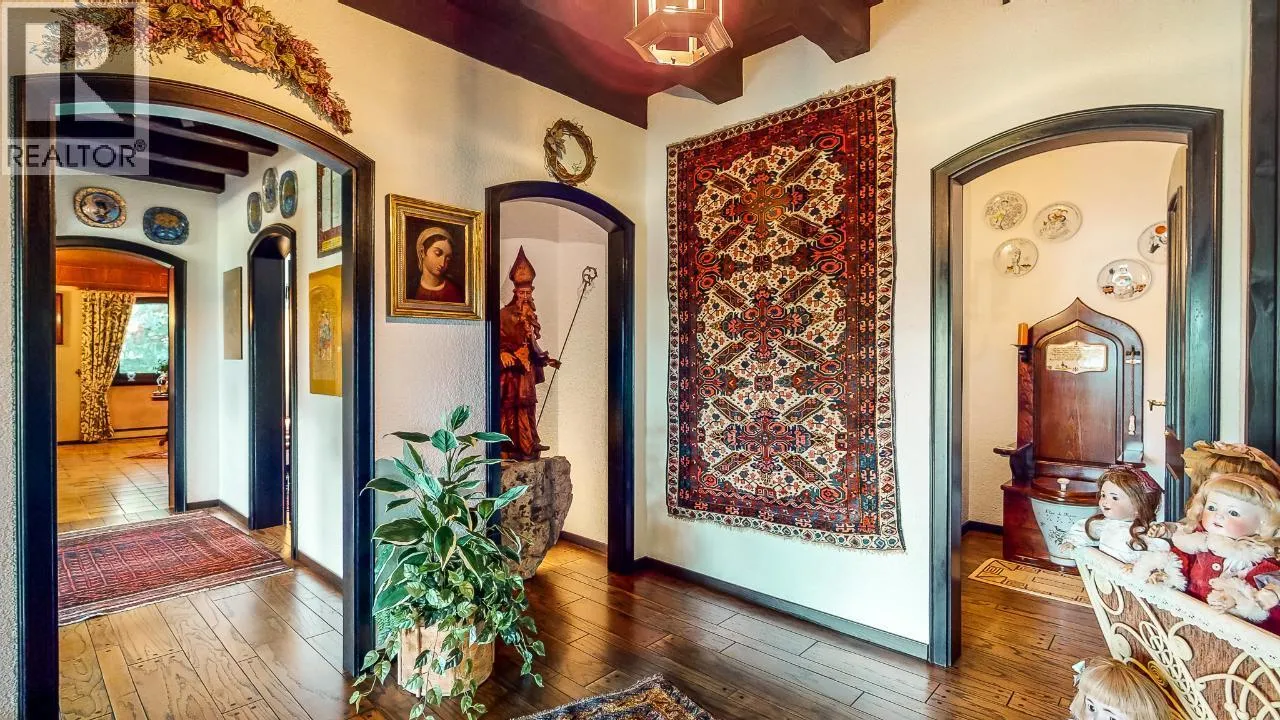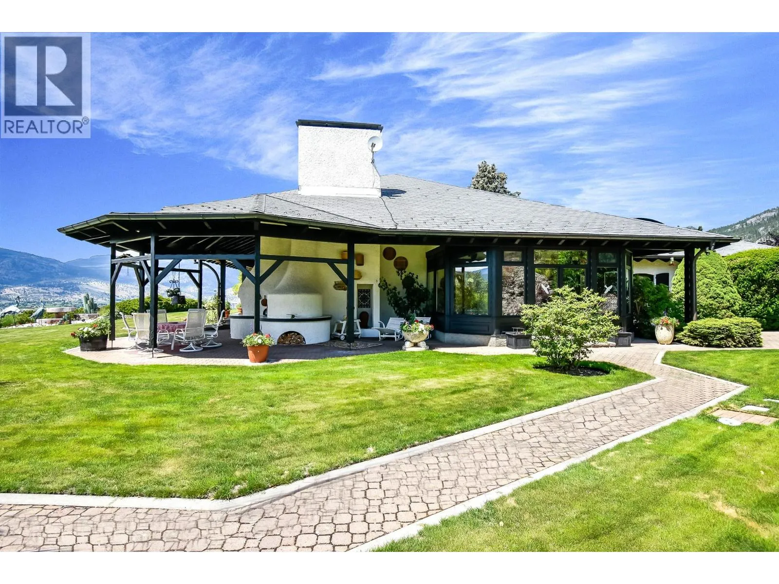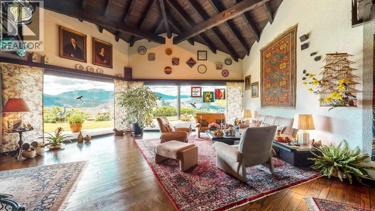 GATED EUROPEAN INSPIRED ESTATE overlooking Skaha Lake. VERY PRIVATE and perfect for a family compound with TWO HOMES, 4 STALL HORSE BARN, DOG KENNEL, STORAGE SHED, a small fruit orchard and vegetable garden. Exceptional POST & BEAM CONSTRUCTION inspired by a home in Germanyâs Black Forest. This home has been meticulously maintained and is in original pristine condition. Spanning over 7,200 sq. ft., the main house features wood flooring, vaulted ceilings and MONTANA GOLD ROCK FIREPLACE in the living room. An expansive SUNROOM, & INDOOR POOL provide year-round enjoyment. 2 bedrooms on the main include the Primary Suite and Ensuite with gold-plated fixtures, dual marble pedestal sinks, soaking tub, and walk-in closet. An EXPANSIVE 2,100 sq ft LOFT area offers flexible space with an open loft bedroom, home office, one sitting area overlooking the living room and 2nd sitting room overlooking the pool as well as a bathroom and a sauna. This estate features a COVERED PATIO with an OUTDOOR KITCHEN, PIZZA OVEN, FIREPLACE and WET BAR making alfresco dining an experience. The charming GUESTHOUSE is positioned to capture sweeping lake views, offering 2 bedrooms, a full kitchen, and a cozy living room. Set on 198 acres of hillside land with approximately 3 acres of fenced meadow & a reservoir lake onsite for irrigation, this property is ideal for those seeking a very private estate in a quiet rural location. Only 20-minutes from Penticton and minutes to Okanagan Falls. (id:27476)