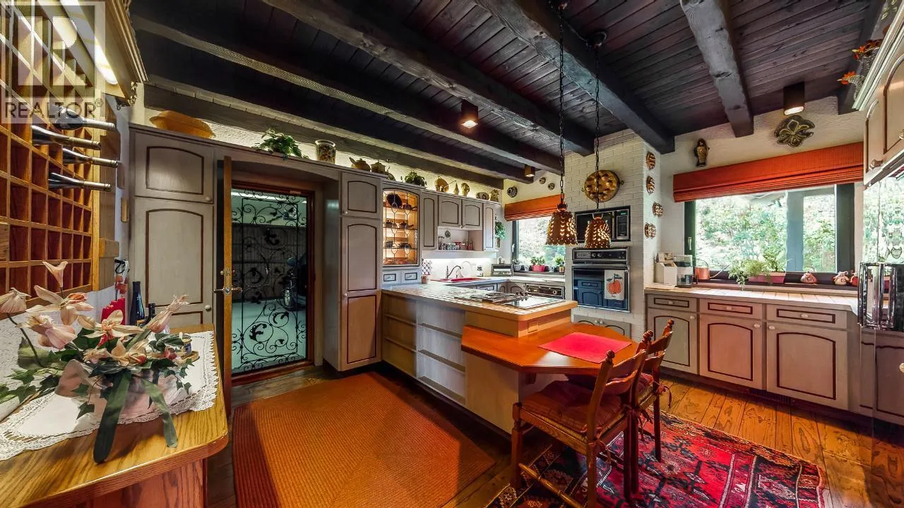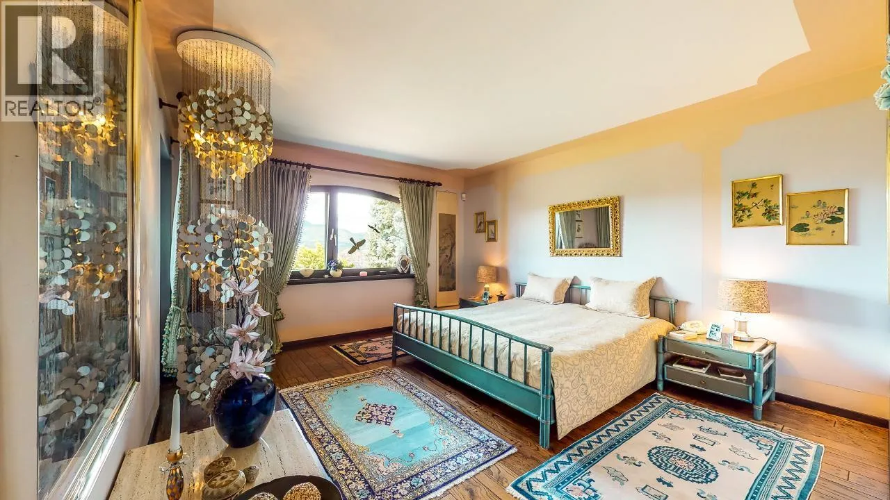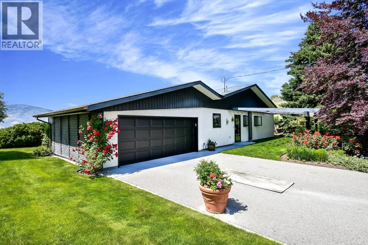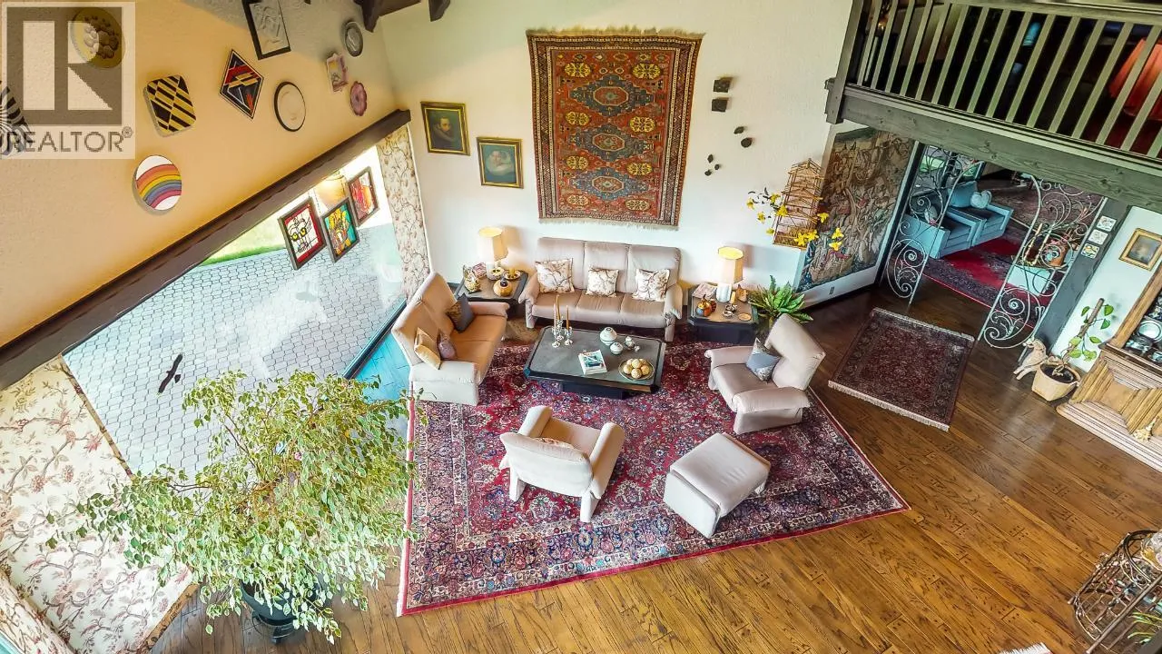 GATED EUROPEAN INSPIRED ESTATE overlooking Skaha Lake. VERY PRIVATE and perfect for a family compound with TWO HOMES, 4 STALL HORSE BARN, DOG KENNEL, STORAGE SHED, a small fruit orchard and vegetable garden. Exceptional POST & BEAM CONSTRUCTION inspired by a home in Germanyâs Black Forest. This home has been meticulously maintained and is in original pristine condition. Spanning over 7,200 sq. ft., the main house features wood flooring, vaulted ceilings and MONTANA GOLD ROCK FIREPLACE in the living room. An expansive SUNROOM, & INDOOR POOL provide year-round enjoyment. 2 bedrooms on the main include the Primary Suite and Ensuite with gold-plated fixtures, dual marble pedestal sinks, soaking tub, and walk-in closet. An EXPANSIVE 2,100 sq ft LOFT area offers flexible space with an open loft bedroom, home office, one sitting area overlooking the living room and 2nd sitting room overlooking the pool as well as a bathroom and a sauna. This estate features a COVERED PATIO with an OUTDOOR KITCHEN, PIZZA OVEN, FIREPLACE and WET BAR making alfresco dining an experience. The charming GUESTHOUSE is positioned to capture sweeping lake views, offering 2 bedrooms, a full kitchen, and a cozy living room. Set on 198 acres of hillside land with approximately 3 acres of fenced meadow & a reservoir lake onsite for irrigation, this property is ideal for those seeking a very private estate in a quiet rural location. Only 20-minutes from Penticton and minutes to Okanagan Falls. (id:27476)