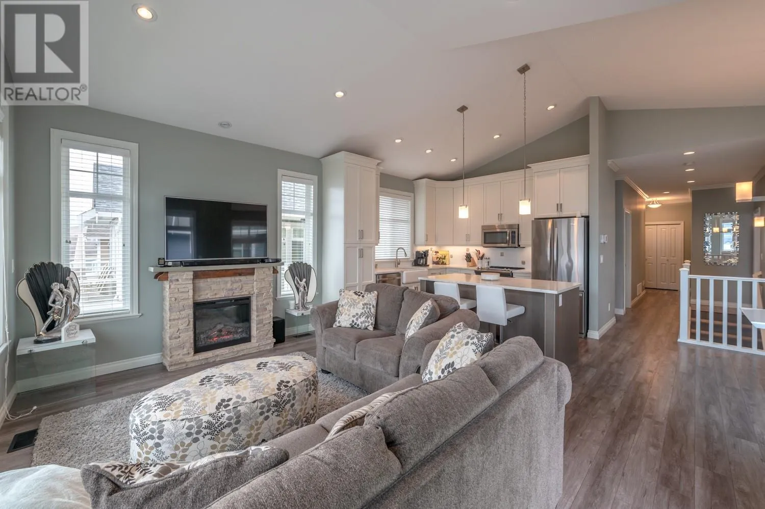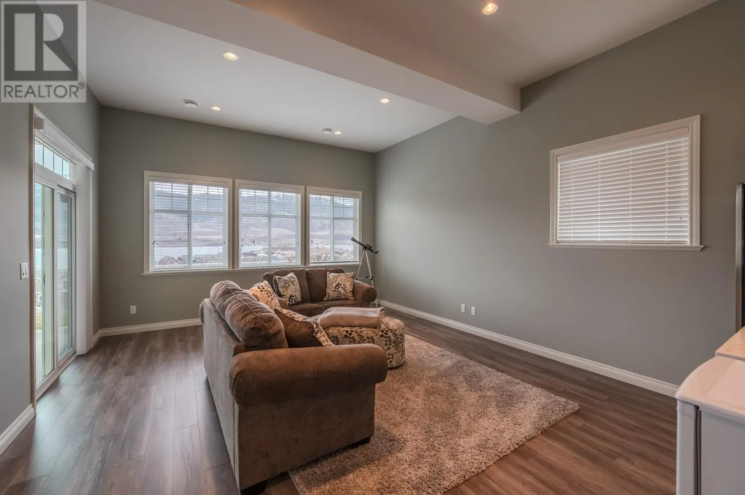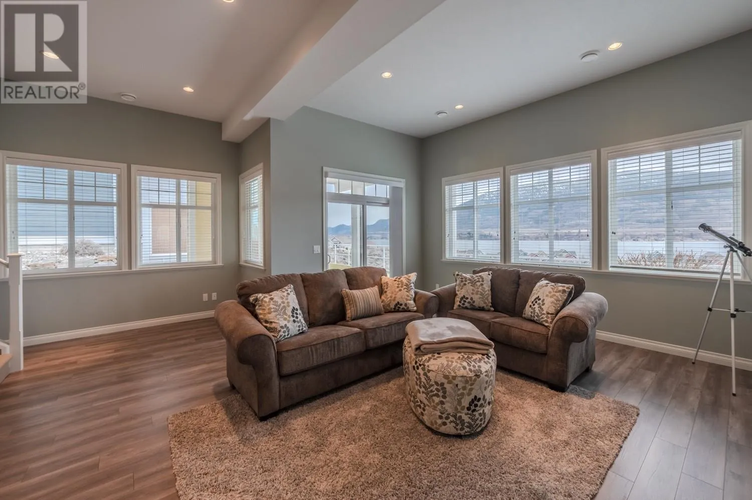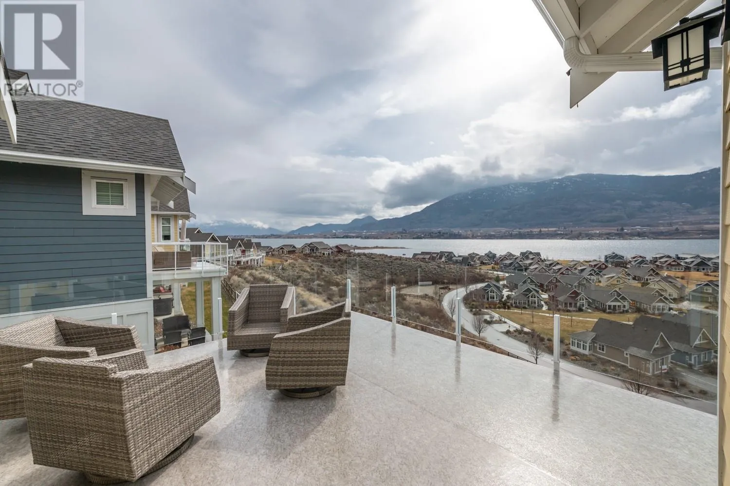 Welcome to your dream retreat at the Cottages on the Lake! This meticulously cared-for property boasts one of the BEST VIEWS of the lake, ensuring every moment is filled with awe-inspiring beauty. With original owners who've never rented out, this home exudes a sense of pristine perfection with upgrades chosen to maximize view and sunlight. 11ft ceilings in the extended basement, complemented by a spacious concrete patio below; The kitchen is a culinary haven with its white modern tall farmhouse cabinets, complete with a farm sink and quartz countertops, wine fridge, crown molding, and a double vaulted living room, creating a stunning entertaining space. Retreat to the Master Ensuite with a frameless glass walk-in shower and a jetted tub, promising ultimate relaxation after a day of lakeside adventures. The extended garage offers ample space for all your toys, equipped with hot and cold water for added convenience. This property comes furnished, with a BOAT SLIP and a newer GOLF CART, ensuring endless fun on the lake. Don't miss your chance to own this slice of paradise at Osoyoos Lake. Indulge in luxury, tranquility, and breathtaking views. Enjoy the convenience of no GST or PTT on this purchase, and the flexibility of allowing rentals for 5 days or longer. (id:27476)