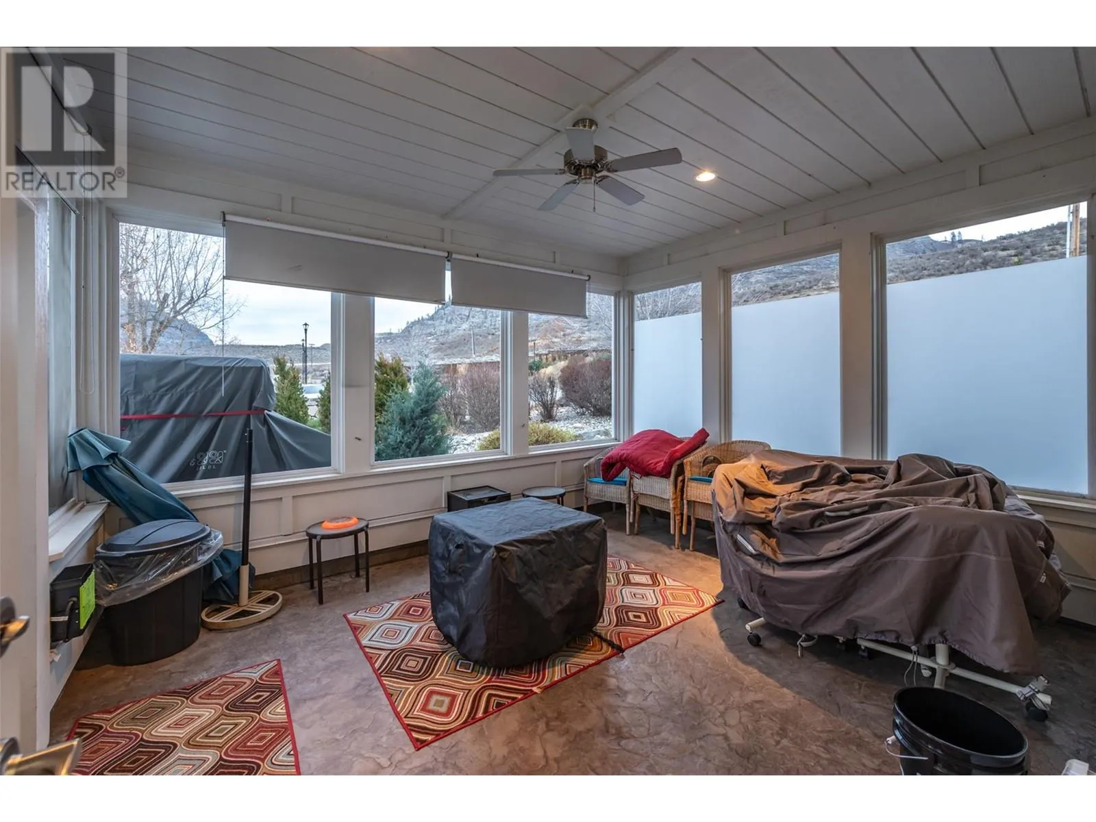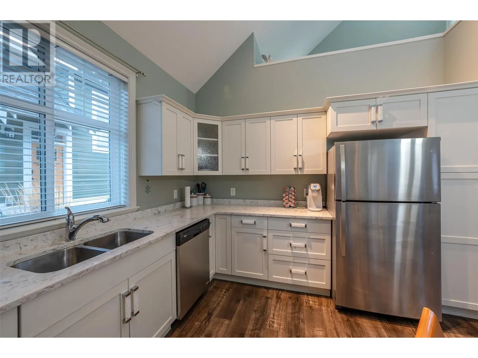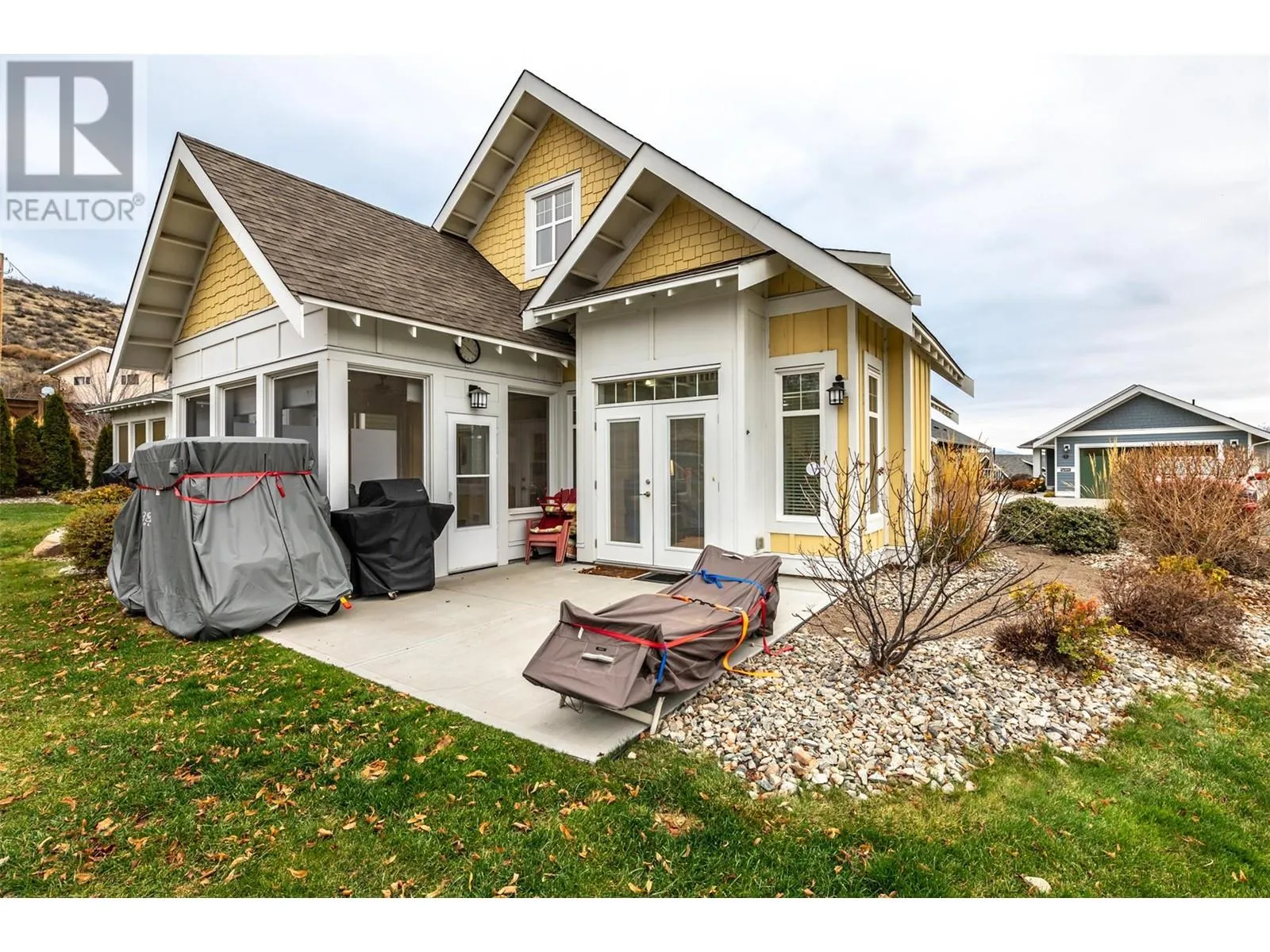 IMAGINE OWNING YOUR OWN SUMMER HOLIDAY HOME AT THE COTTAGES ON OSOYOOS LAKE! This TURN-KEY customized BING Cottage is cute as a button and embodies the original dream of this development ...""COTTAGE LIFE"" at its best. This affordable home features the Master Bedroom and Ensuite on the main floor, additional Bedroom, main Bath, Laundry and all your living on the ground floor, there is a secondary Master Suite upstairs in the Loft. Enjoy our gorgeous warm summer evenings on your screened-in porch and NORTH FACING Backyard opening up to large green belt. This end unit home is located at the North end of the complex to enjoy a private and quiet dinner on your patio enjoying the sunsets. INCLUDES 23' BOAT SLIP ($55k value) . This executive gated community features outdoor pools, hot tubs, gym, numerous walking trails, playgrounds, and 500 ft of sandy beach. SHORT TERM RENTALS ARE ALLOWED! (5 days or longer) NO GST, NO PTT, NO SPECULATION/ EMPTY HOMES TAX, AND PREPAID LEASE. (id:27476)