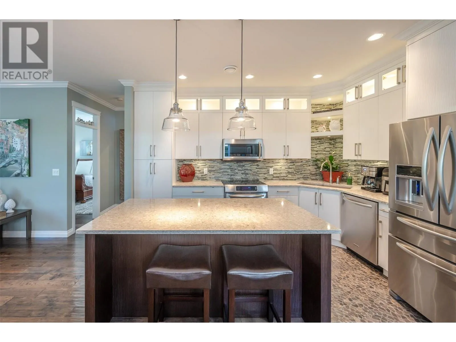 Welcome to this exceptional One of A Kind - Custom-Built Extended Burgundyâa 4 bed, 2.5 bath home with over $160K in upgrades (see customization list!). Thoughtfully designed and beautifully maintained by the original owner, this home has never been rented and is ideal for full-time living to fully appreciate all the details. Inside, you'll find gorgeous hardwood floors, beautiful custom kitchen cabinetry, oversized windows, custom lighting and tons of built-in storage. The main level offers a spacious primary suite, an additional bedroom/office, and access to the stunning 3-season porch with insulated ceiling, storm door, and upgraded windows. Upstairs features two more bedrooms, a full bath, and a versatile bonus space perfect for hobbies or a second lounge. Step outside into a serene, private oasis with mature landscaping, stamped concrete patio, and custom touches throughout the garage including storage cabinetry and canning kitchen. This home is truly one-of-a-kindâa must see to appreciate the upgrades and thoughtful details throughout! Access to boat slip if one wishes to purchase. The Cottages on Osoyoos Lake is a rare find with its lovely walking trails, kids playgrounds, large clubhouse, pools, hot tubs , off-leash dog area, and 500 ft of sandy beach all while in a secure and gated community. Make this your FOREVER HOME, SUMMER GET AWAY OR INCOME INVESTMENT PROPERTY. Rentals are allowed 5 days or longer. NO GST, NO PTT, NO EMPTY HOMES TAX, PREPAID LEASE. (id:27476)