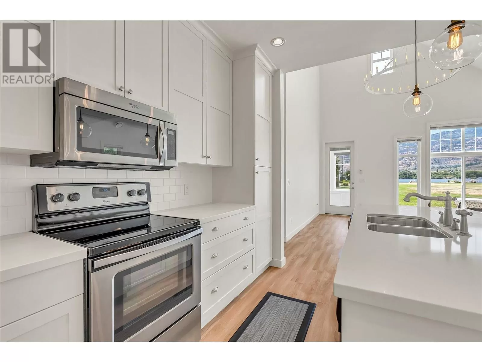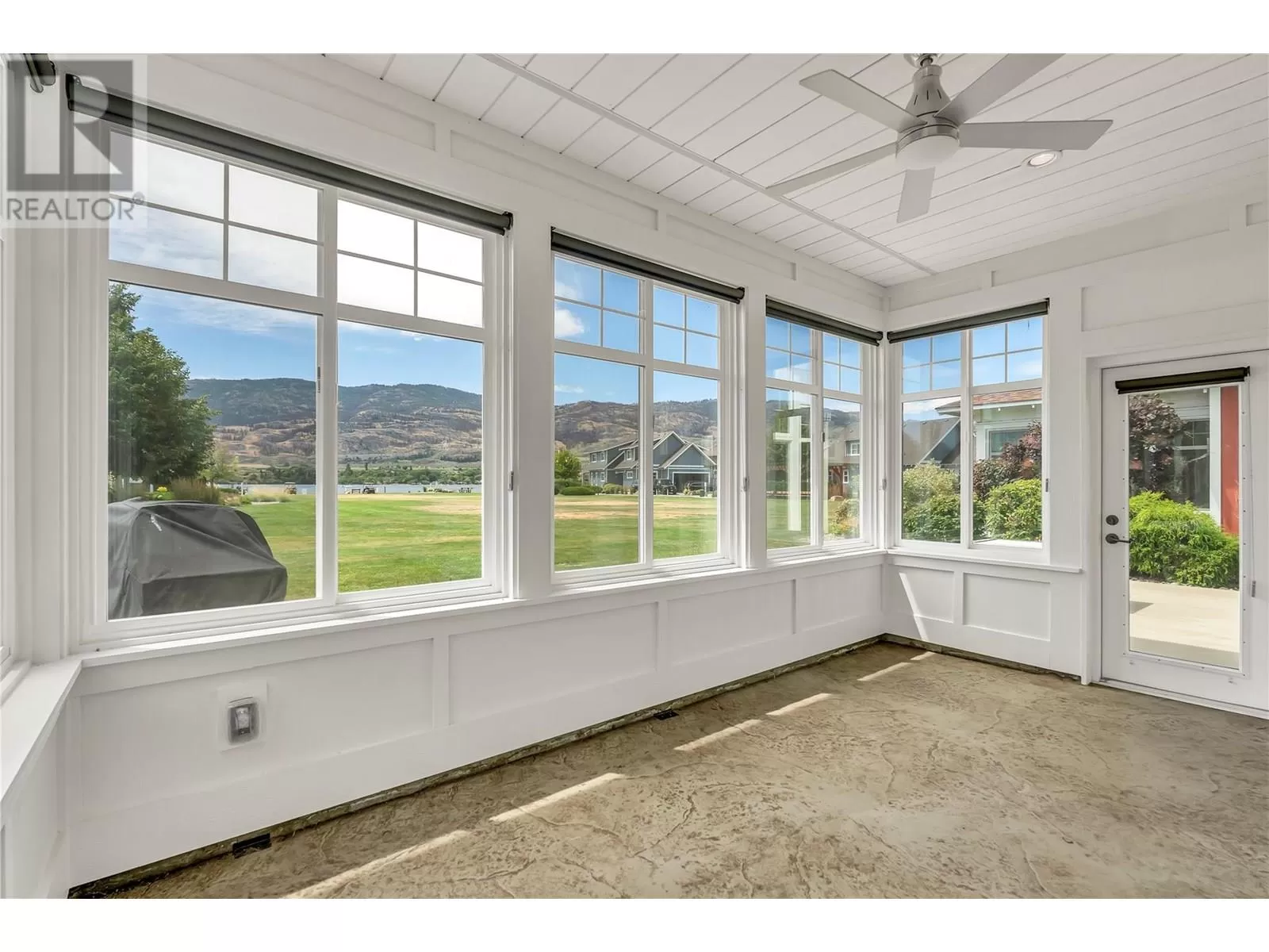 Welcome to this stunning 4-bedroom plus den custom-built home, thoughtfully designed for both functionality and comfort. BONUS: boat slip included! Located in one of the most desirable spots within The Cottages, this beautifully crafted home features a spacious, well-laid-out floorplan ideal for full-time living or a relaxing vacation home. The main level includes a generous primary suite complete with a walk-in closet and full ensuite, a bright den perfect for a home office, and a beautiful sunroom filled with natural light. The kitchen is a chefâs dream with quartz countertops, stainless steel appliances including a wine fridge, and plenty of cabinetry for storage. The large living and dining areas are perfect for gathering with family and friends, while the laundry room and double-car garage add everyday convenience. Upstairs, youâll find three generously sized bedrooms, a full bathroom, and a bonus sitting area. Large windows throughout the home fill the space with natural light and frame the spectacular views of Osoyoos Lake. Step outside to your private patio, which opens directly onto a spacious green space without anything obstructing your view of the lake and beach. The clubhouse offers outdoor pools, hot tubs, a fitness centre, & a banquet room. The Cottages also offer walking trails, pickleball courts, a private beach with a volleyball court and firepits, playgrounds for kids, and even a dog park. Short-term rentals are permitted (Min 5 days) (id:27476)
