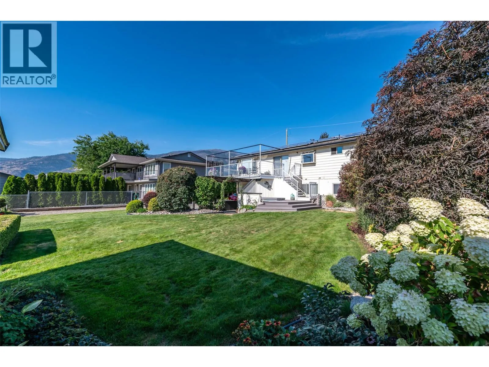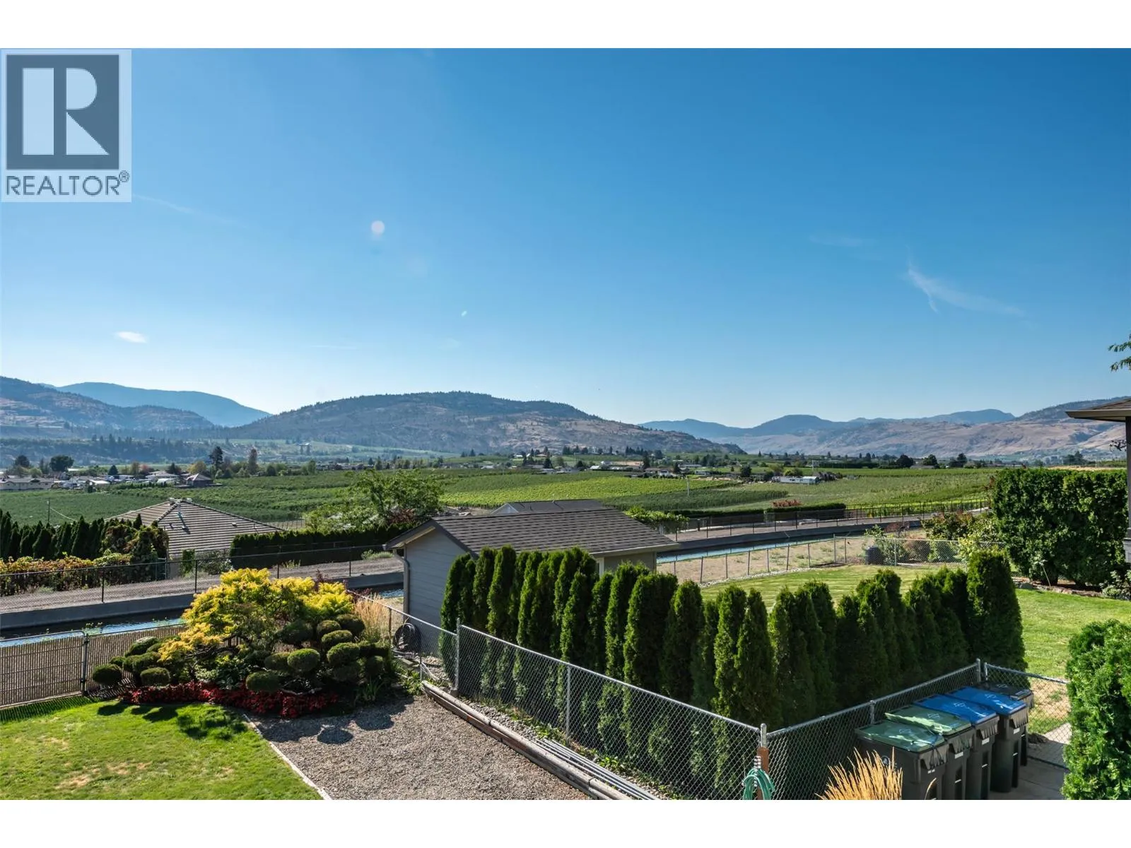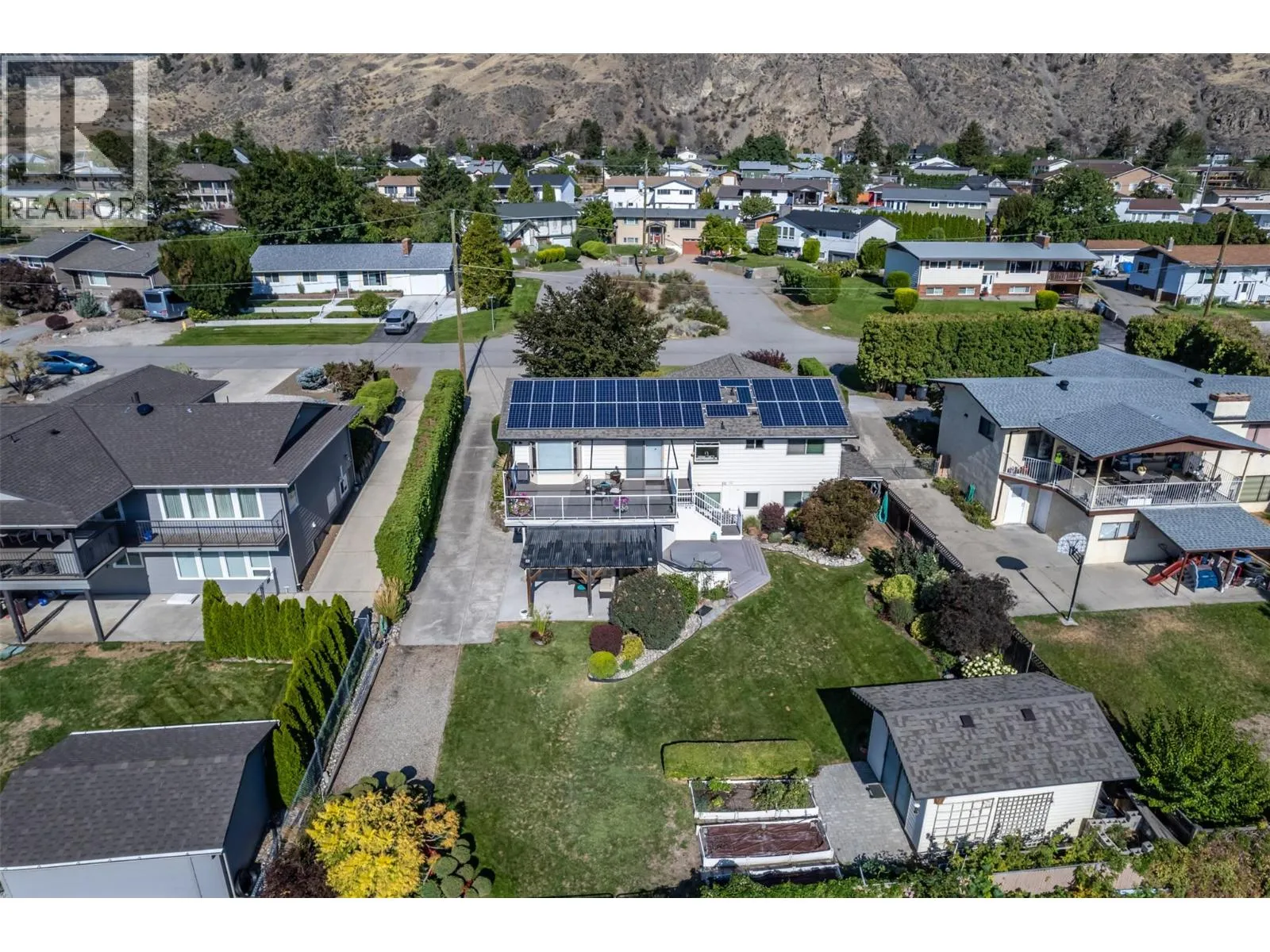 Panorama Crescent has to be one of the best streets in Oliver! This quiet cul-de-sac boasts unobstructed valley views stretching over vineyards, orchards, and Mt. Baldy - all within walking distance to town, schools, and the new canal-side walking trail! Lovingly owned by the same family for over 45 years, this 5-Bedroom, 2-Bathroom home has been thoughtfully updated over time: Roof (2017), HWT (2021), Heat Pump (2012), and Solar Panels (2018). The lower level includes a Legal 1-Bedroom Suite, perfect for a tenant or licensed short-term rental. The outdoor spaces are just as special. Professionally designed with low-maintenance gardens, underground sprinklers, accent lighting, a bubbling water feature, rockery, and raised beds for the avid gardener. A detached shed provides extra storage, while the hot tub and tiered deck are ideal for stargazing or entertaining against a breathtaking backdrop. Inside, the cozy living room is wired for surround sound, and the entire home is ready for modern living with EV charging and solar panels producing an average of 8,500 KWH annually. With charm, updates, and unbeatable views, this could truly be THE ONE YOU'VE BEEN WAITING FOR! (id:27476)