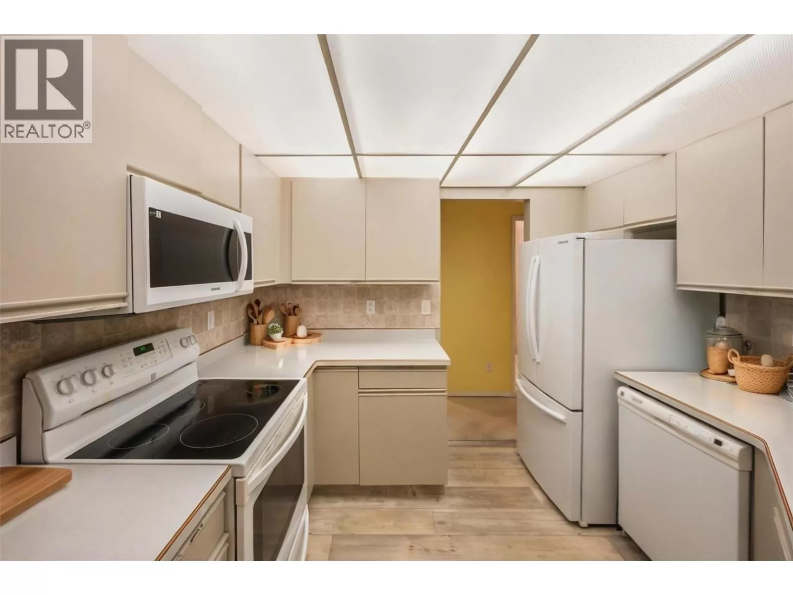 Welcome to this bright and inviting corner unit condo offering a perfect blend of comfort, convenience, and community living. With level entry and easy access, this home is designed for effortless everyday living. Enjoy year-round relaxation in the enclosed sun patio, where you can soak in the mountain views no matter the season. Inside, the open floor plan features a spacious living room with a functional wall unit, a welcoming dining areaâideal for entertaining. The kitchen has ample cupboard and counter space, plus a charming pass-through window to the living room for added convenience. This condo is filled with natural light throughout and has a lovely 3 pc bath with a walk-in shower and is part of a wheelchair-friendly complex, making it accessible to all. Location, Location, Location! Just a short walk to downtown, the hospital, recreation center, arena, shopping, and only steps away from the scenic hike and bike path along the Okanagan River. Fantastic Amenities! The complex offers a common room, library, full commercial-style kitchen, dance floor, games room, guest suite, and fitness area. Additional features include covered parking for owners, ample visitor parking right by your unit, and rental-friendly bylaws within this mature-living, pet-free community. If youâre looking for a well-appointed home in a central location with outstanding amenities and community spirit, this condo is a must-see! *Some photos may be digitally staged (id:27476)