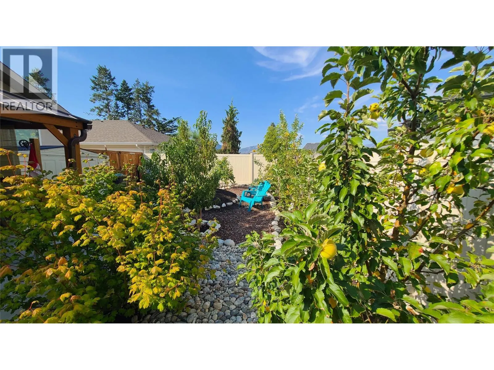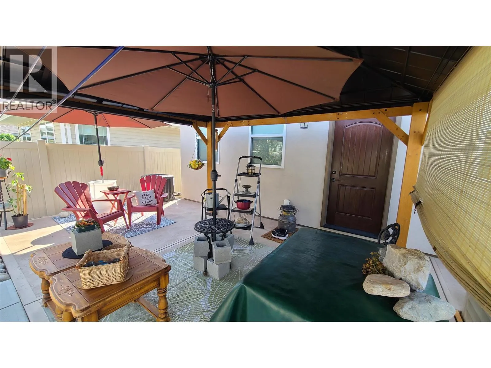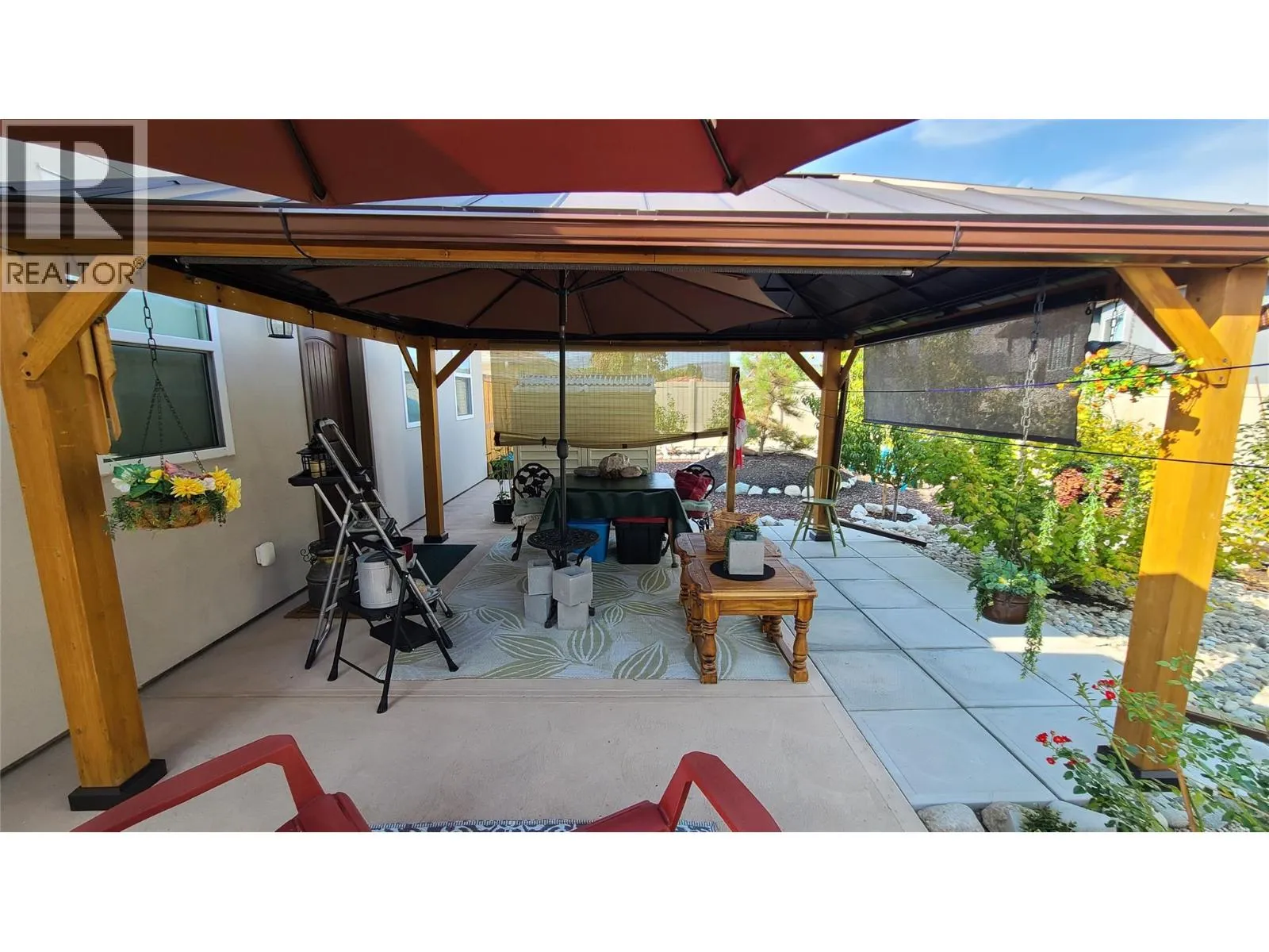 Rancher with Exceptional Layout discover this beautifully designed 2-bedroom, 3.5-bath rancher featuring a bright, thoughtful floor plan and an abundance of natural light. The spacious kitchen is perfect for both cooking and entertaining, with a dining area that easily fits your favorite table and chairs. The private living room is warm and inviting, highlighted by large, elegantly dressed windows. Comfort is ensured year-round with central A/C. Outdoors, the low-maintenance backyard offers a covered concrete patio ideal for BBQs and relaxing with family and friends. Just one block from the Okanagan River, this home offers unmatched lifestyle convenience. Enjoy the Trans-Canada Trail, a paved, vehicle-free path leading straight into town for walking, cycling, and year-round recreation. ""Plenty of space to park your RV or trailer."" (id:27476)