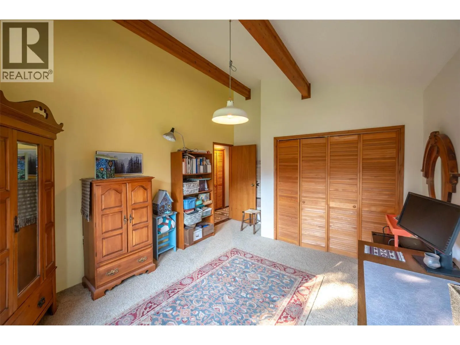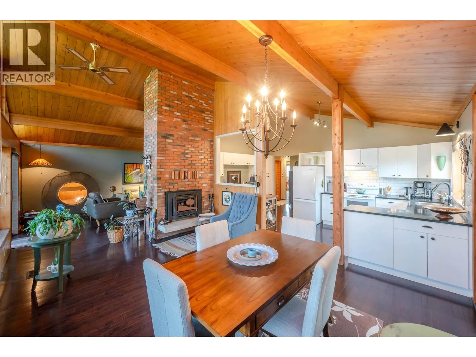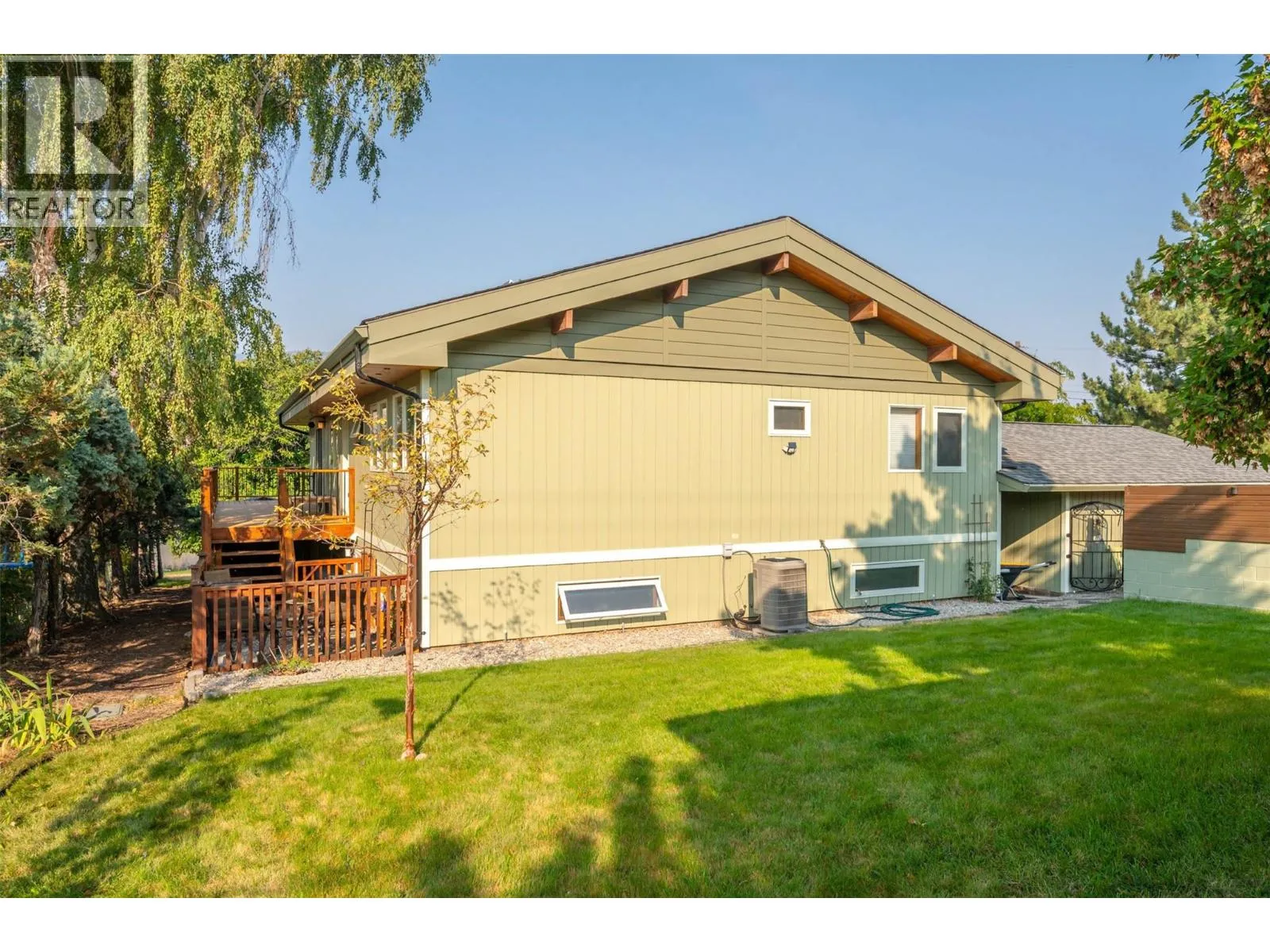 Lovely custom-built character home on a quiet cul-de-sac just east of Oliver, offering 3,112 sq ft of living space on a 0.208-acre lot with lake views. This thoughtfully designed residence features soaring vaulted ceilings with exposed beams, a wall of windows that flood the interior with natural light, and both open and covered decks to enjoy the scenery. The main level showcases hardwood flooring, updated light fixtures, and an updated sundeck, while the lower level includes an in-law suiteâideal for extended family, guests, or potential use as an Airbnb. With 4 bedrooms, 4 bathrooms, and 2 kitchens, there is room and flexibility for everyone. Recent upgrades include a new furnace, air conditioning, hot water tank, water softener, completed eavestroughing with downspouts, UV-protected window screens, and a radon mitigation system. The main living area features an updated high-efficiency fireplace insert, while the suite includes its own wood stove for added comfort. Outdoors, enjoy a fully enclosed garden/play area, a large custom post-and-beam arbour, and a garden/tool shedâperfect for the hobbyist or gardener. The double semi-detached garage provides secure parking and storage, with a spacious driveway for extra vehicles. Just minutes from town amenities yet tucked away for privacy, this is a one-of-a-kind home that blends character, comfort, and modern updatesâall ready for its next chapter. (id:27476)