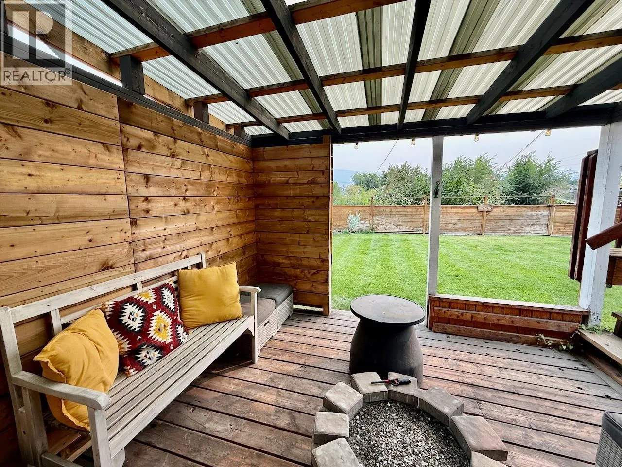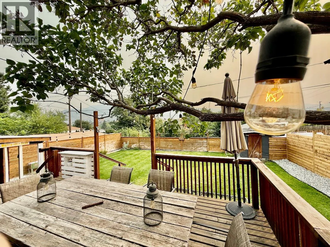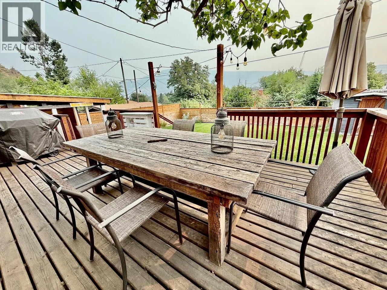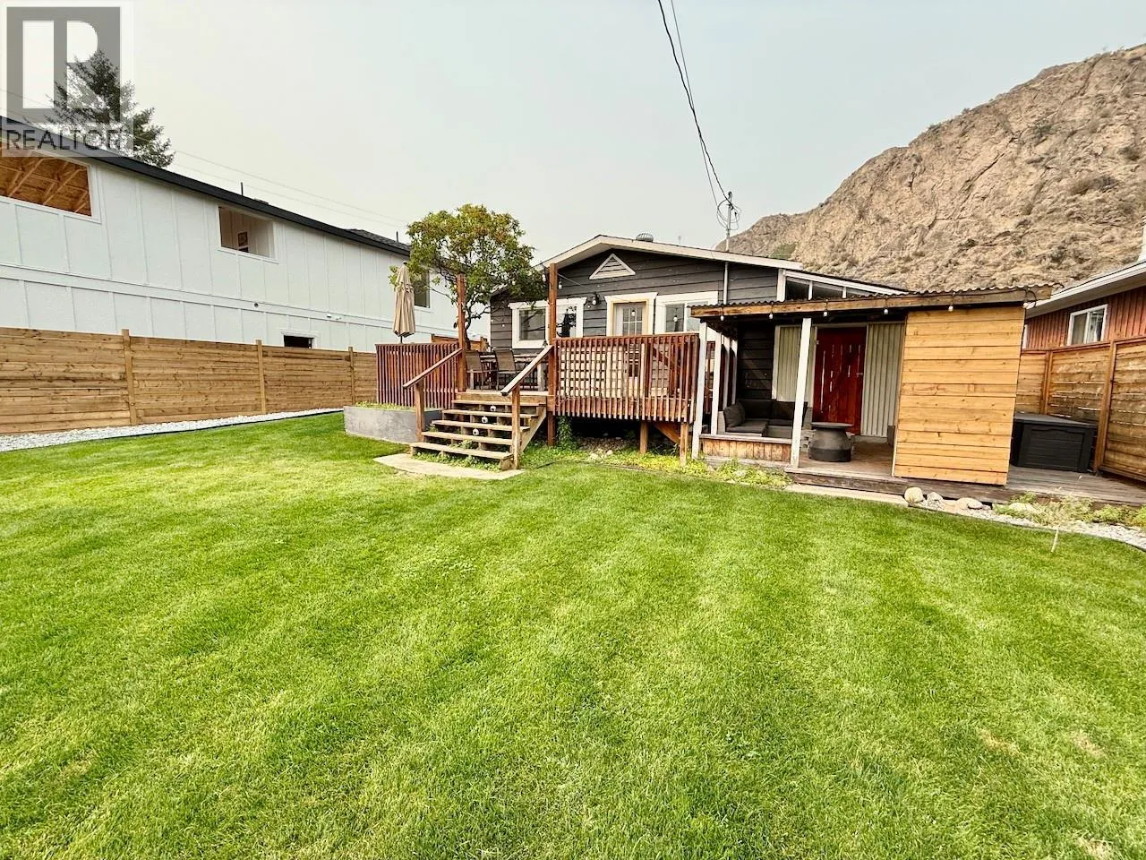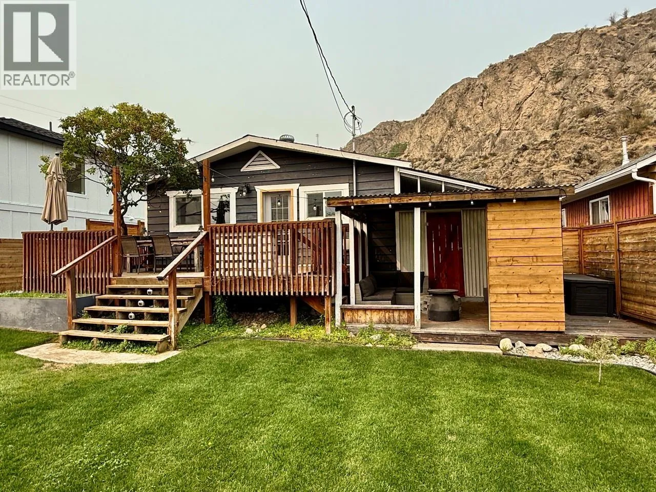 Tastefully updated 2 bedroom, 2 bathroom level entry home in central Oliver with stunning views of the dramatic 'Rockcliffes' right out your front door. This small but mighty and charming home has been extensively modernized with luxury vinyl plank flooring throughout, a bright island-style kitchen with tasteful backsplash, abundant storage, and great built-ins. Both bathrooms, kitchen, windows, doors, heating, A/C, and decks have all been redone, along with updated plumbing, advanced water purification, and a new hot water tank. The main-floor laundry adds convenience, while the outside access cellar-style basement provides ample utility and extended storage options for seasonal items. Great carport. Full alley access in the back yard. Step outside of the lavish kitchen to enjoy a romantic patio and a fully fenced, manicured backyard oasis with alley access and plenty of parking. Ideal for empty nesters or a small family seeking comfort and practicality at an affordable price point â offering far more space and lifestyle than condo living. Move-in ready and waiting for you! Lots of Potential-- even the possibility of second dwelling built off of the alley. (id:27476)