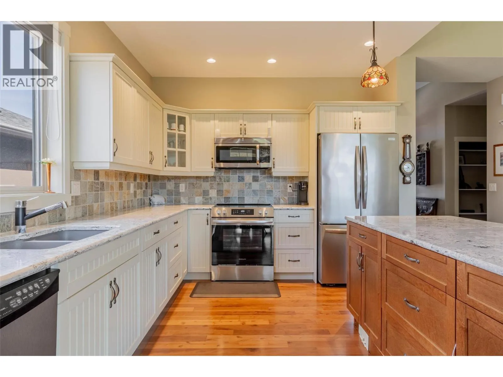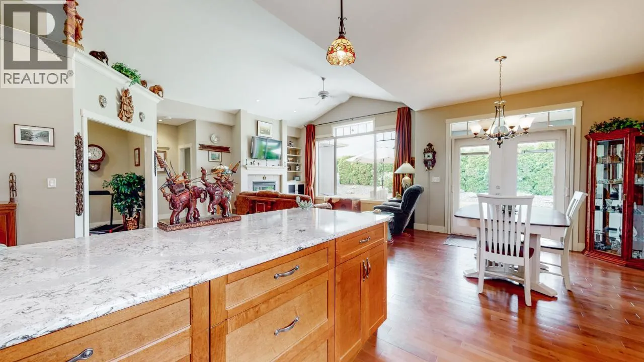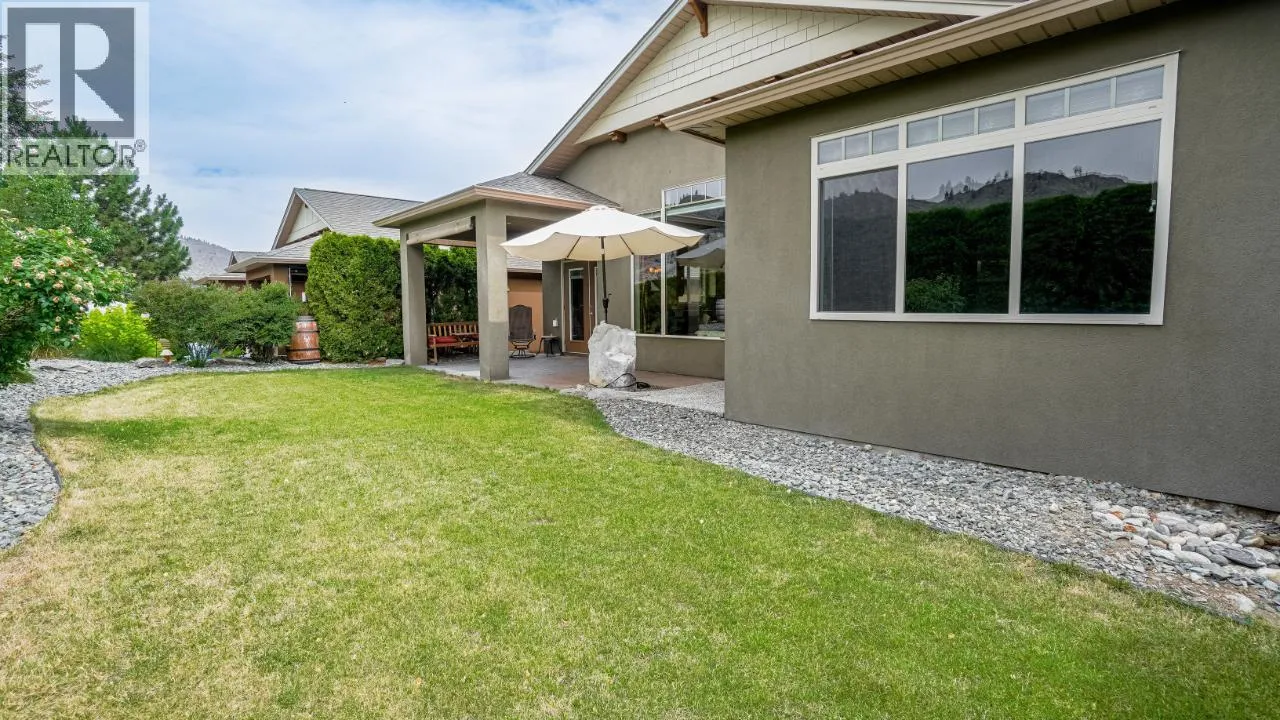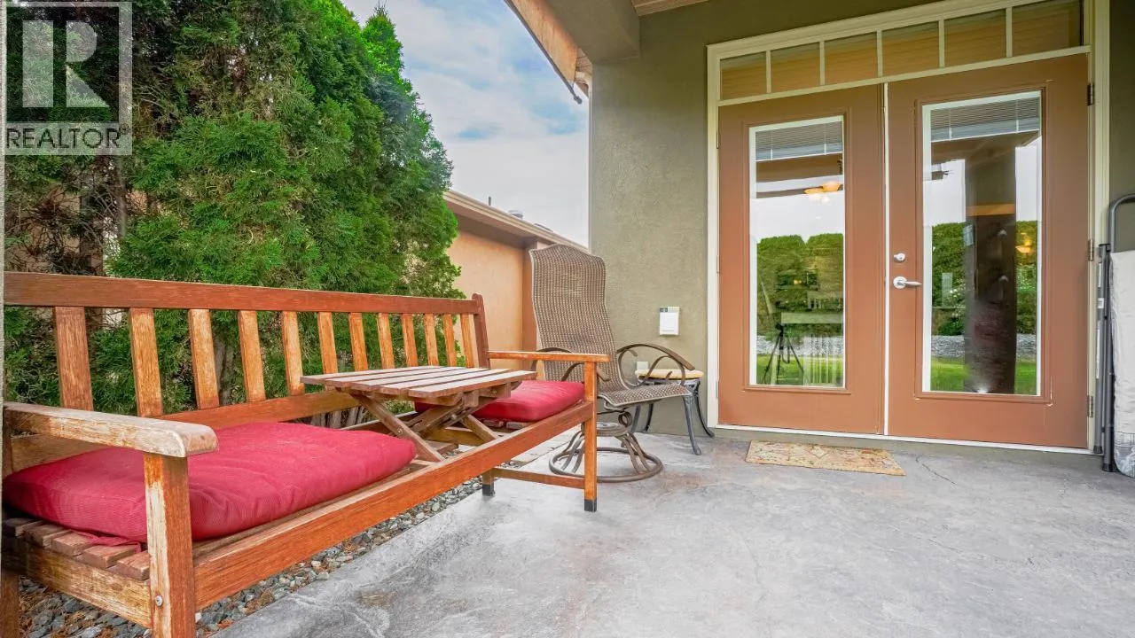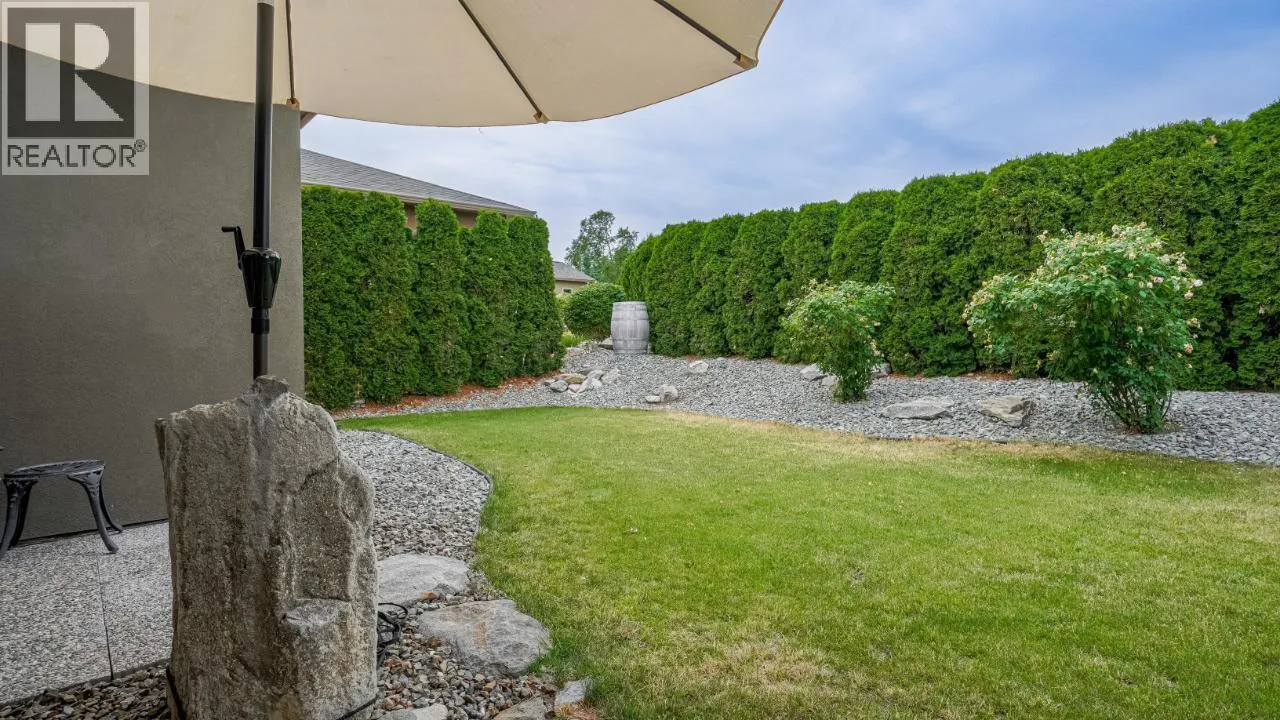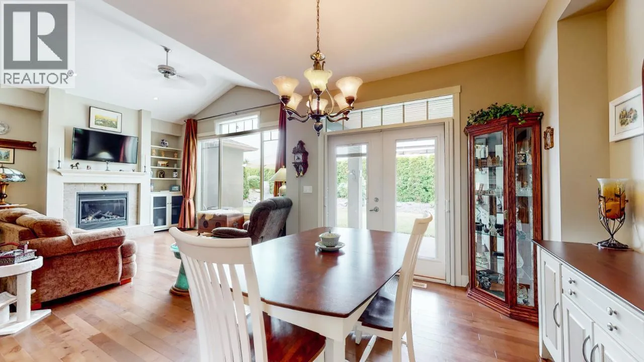 Welcome to Arbor Crest, a highly sought-after 55+ gated community! This beautiful 2 Bedroom + Den, 2 Bath Rancher offers over 1,600 sq ft of quality, custom finishes along with a double garage & private yard. Step inside the roomy foyer to a bright, open great room featuring vaulted ceilings, large windows, hardwood floors & a cozy gas fireplace. The stunning kitchen boasts gorgeous quartz counters, undermount sink, new fridge & stove, elegant taps & a large island perfect for entertaining. Enjoy custom blinds, including sunshades, and French doors with phantom screens leading to a tranquil backyard oasis. Relax on the covered, stamped concrete patio with gas BBQ hook-up, surrounded by privacy hedging & breathtaking sunsets. The back yard was refreshed with new soil & lush green lawn in 2024, along with a new retaining wall on the north side. Spacious primary suite includes an impressive 5-pce ensuite with quartz counters, dual sinks, soaker tub, shower, heated tile floors & walk-in closet. A bright second bedroom sits near a full 3-pce bath, while the French-doored den offers flexible living space. Additional features include a laundry/mudroom with sink, immaculate garage with storage & mounted TV, solar tubes, water softener, central vac & A/C. Beautifully landscaped with U/G irrigation. Low bare-land strata fee $175/mth. Pet-friendly (2 allowed), min. 3-month rentals. Ideally located near the riverfront trail, beach, golf & amenities. Book your private showing today! (id:27476)
