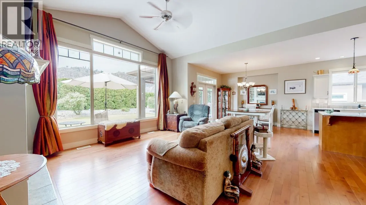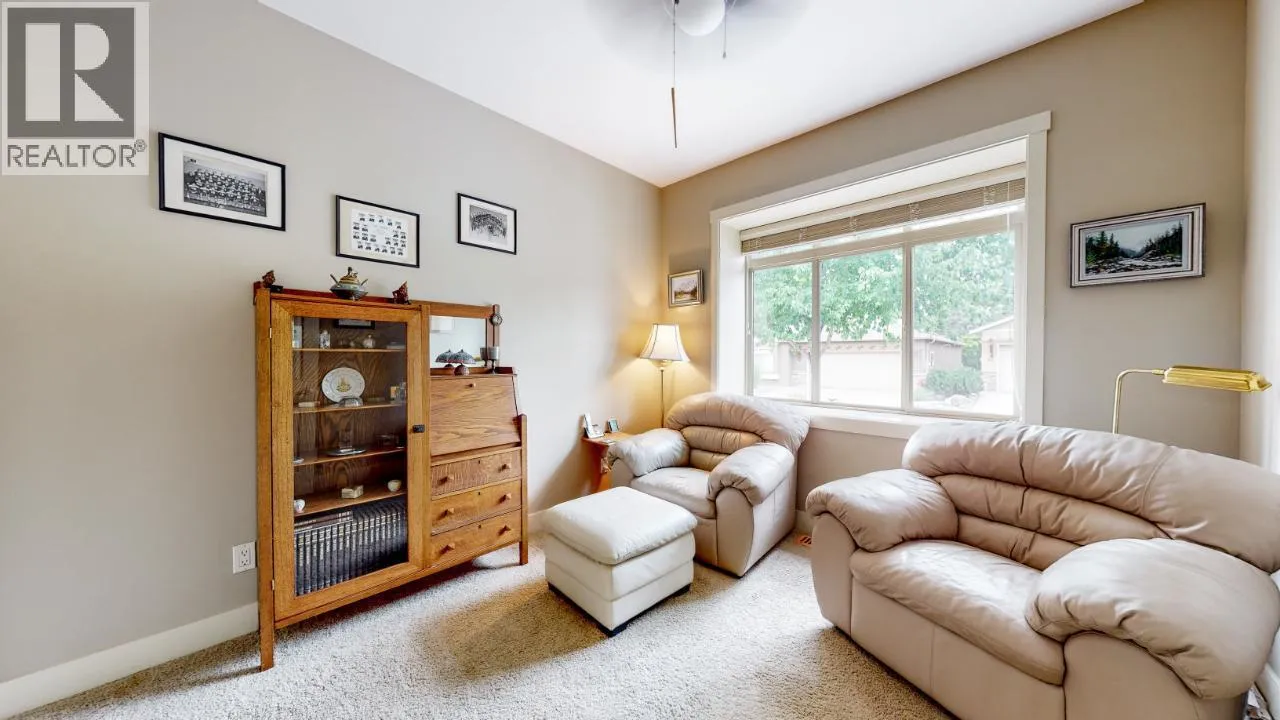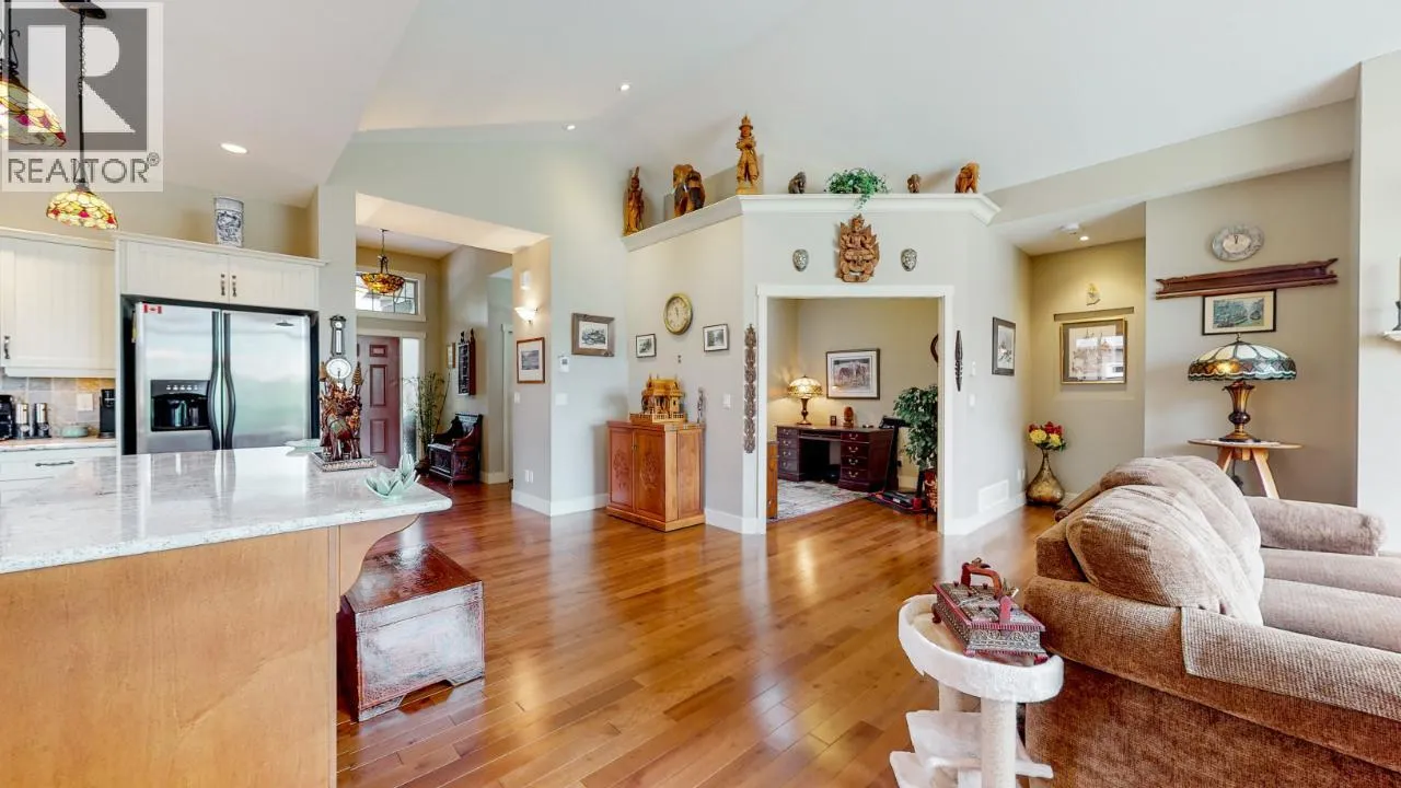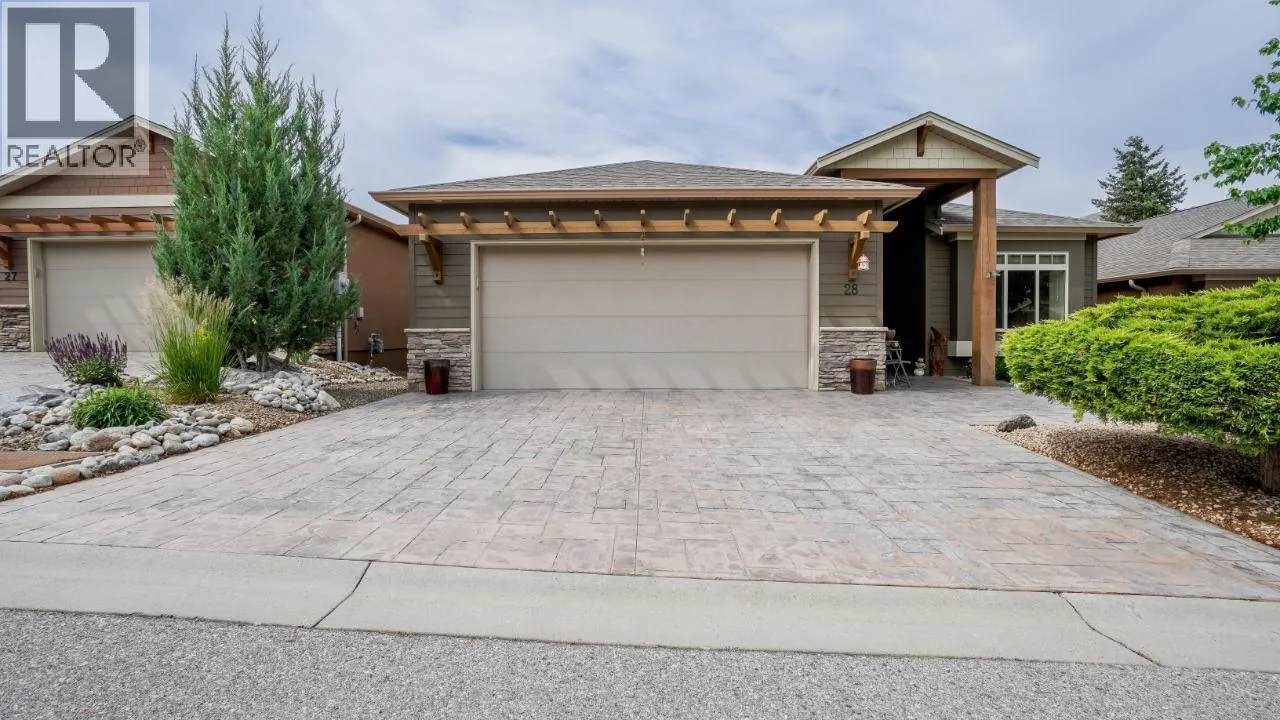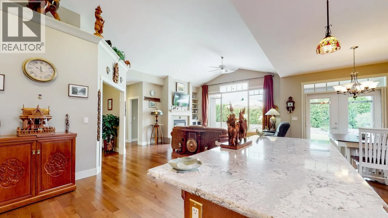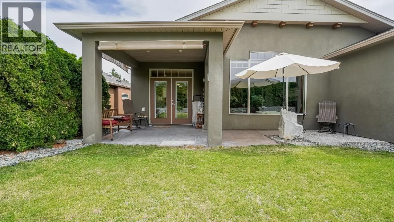 Welcome to Arbor Crest, a highly sought-after 55+ gated community! This beautiful 2 Bedroom + Den, 2 Bath Rancher offers over 1,600 sq ft of quality, custom finishes along with a double garage & private yard. Step inside the roomy foyer to a bright, open great room featuring vaulted ceilings, large windows, hardwood floors & a cozy gas fireplace. The stunning kitchen boasts gorgeous quartz counters, undermount sink, new fridge & stove, elegant taps & a large island perfect for entertaining. Enjoy custom blinds, including sunshades, and French doors with phantom screens leading to a tranquil backyard oasis. Relax on the covered, stamped concrete patio with gas BBQ hook-up, surrounded by privacy hedging & breathtaking sunsets. The back yard was refreshed with new soil & lush green lawn in 2024, along with a new retaining wall on the north side. Spacious primary suite includes an impressive 5-pce ensuite with quartz counters, dual sinks, soaker tub, shower, heated tile floors & walk-in closet. A bright second bedroom sits near a full 3-pce bath, while the French-doored den offers flexible living space. Additional features include a laundry/mudroom with sink, immaculate garage with storage & mounted TV, solar tubes, water softener, central vac & A/C. Beautifully landscaped with U/G irrigation. Low bare-land strata fee $175/mth. Pet-friendly (2 allowed), min. 3-month rentals. Ideally located near the riverfront trail, beach, golf & amenities. Book your private showing today! (id:27476)