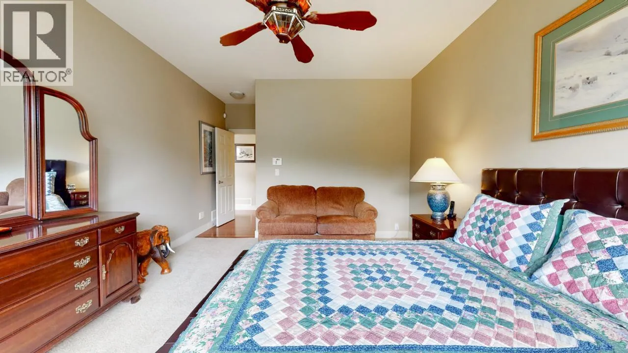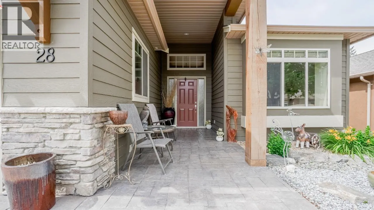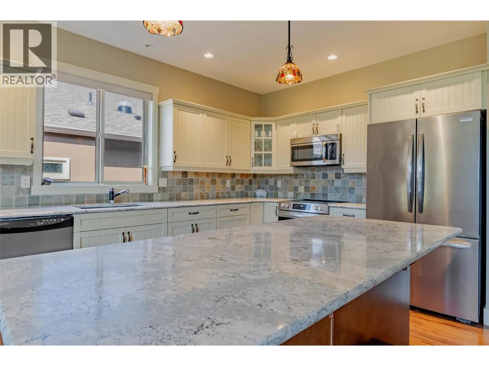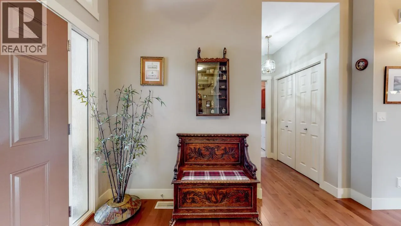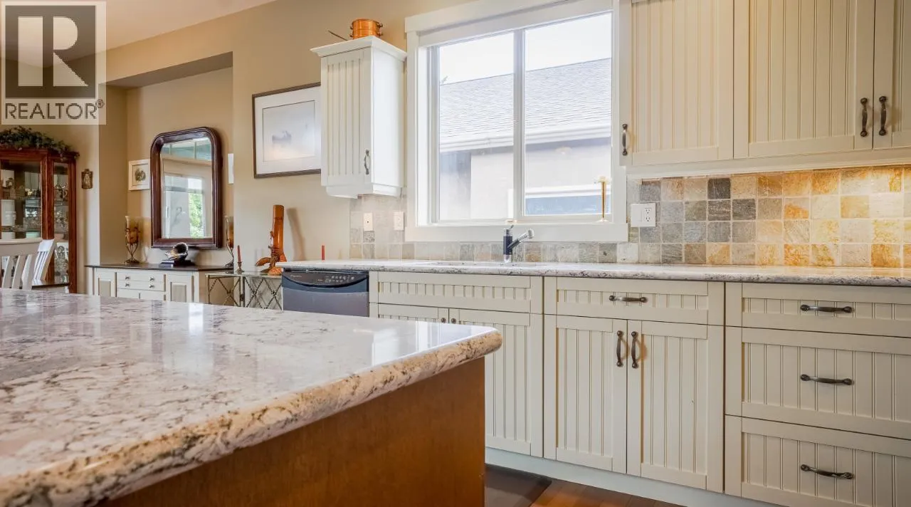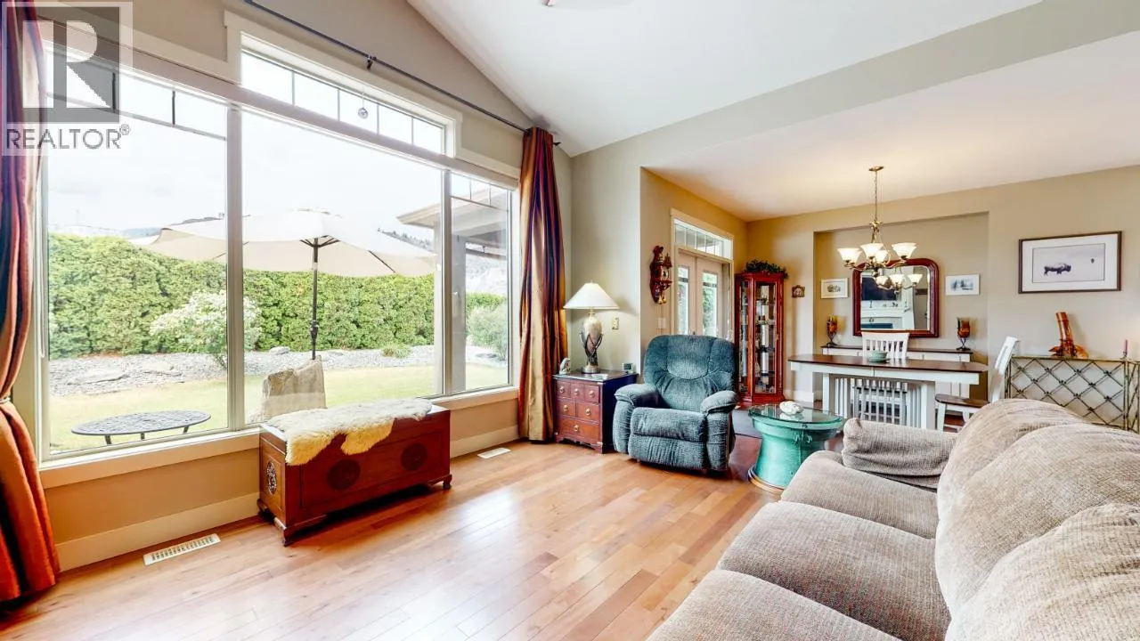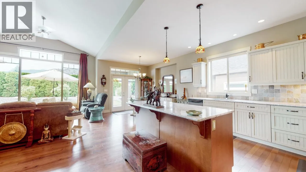 Welcome to Arbor Crest, a highly sought-after 55+ gated community! This beautiful 2 Bedroom + Den, 2 Bath Rancher offers over 1,600 sq ft of quality, custom finishes along with a double garage & private yard. Step inside the roomy foyer to a bright, open great room featuring vaulted ceilings, large windows, hardwood floors & a cozy gas fireplace. The stunning kitchen boasts gorgeous quartz counters, undermount sink, new fridge & stove, elegant taps & a large island perfect for entertaining. Enjoy custom blinds, including sunshades, and French doors with phantom screens leading to a tranquil backyard oasis. Relax on the covered, stamped concrete patio with gas BBQ hook-up, surrounded by privacy hedging & breathtaking sunsets. The back yard was refreshed with new soil & lush green lawn in 2024, along with a new retaining wall on the north side. Spacious primary suite includes an impressive 5-pce ensuite with quartz counters, dual sinks, soaker tub, shower, heated tile floors & walk-in closet. A bright second bedroom sits near a full 3-pce bath, while the French-doored den offers flexible living space. Additional features include a laundry/mudroom with sink, immaculate garage with storage & mounted TV, solar tubes, water softener, central vac & A/C. Beautifully landscaped with U/G irrigation. Low bare-land strata fee $175/mth. Pet-friendly (2 allowed), min. 3-month rentals. Ideally located near the riverfront trail, beach, golf & amenities. Book your private showing today! (id:27476)