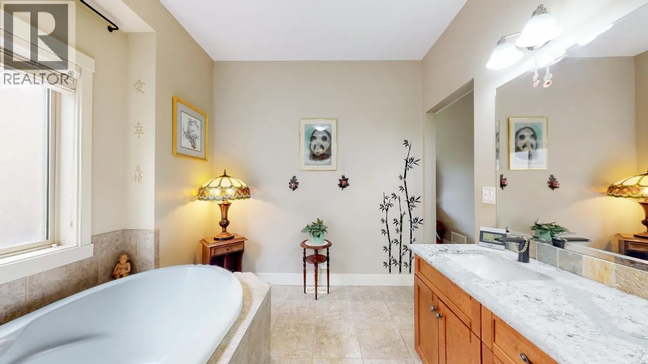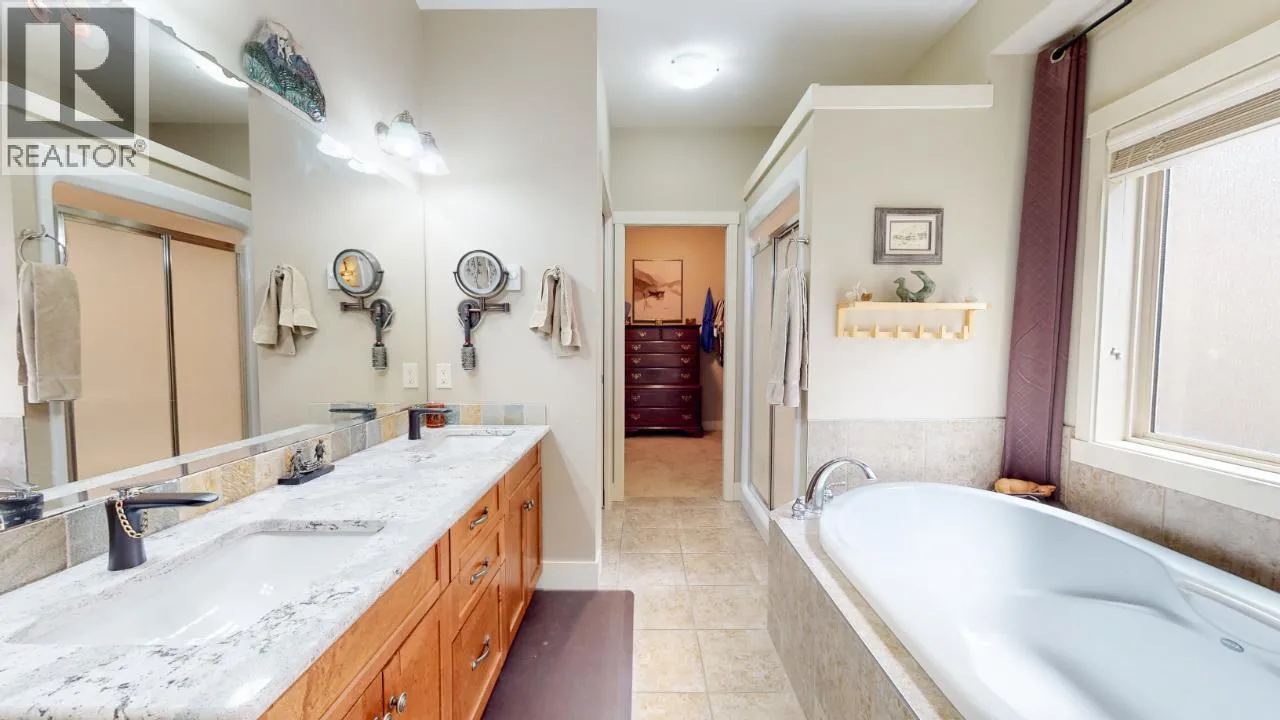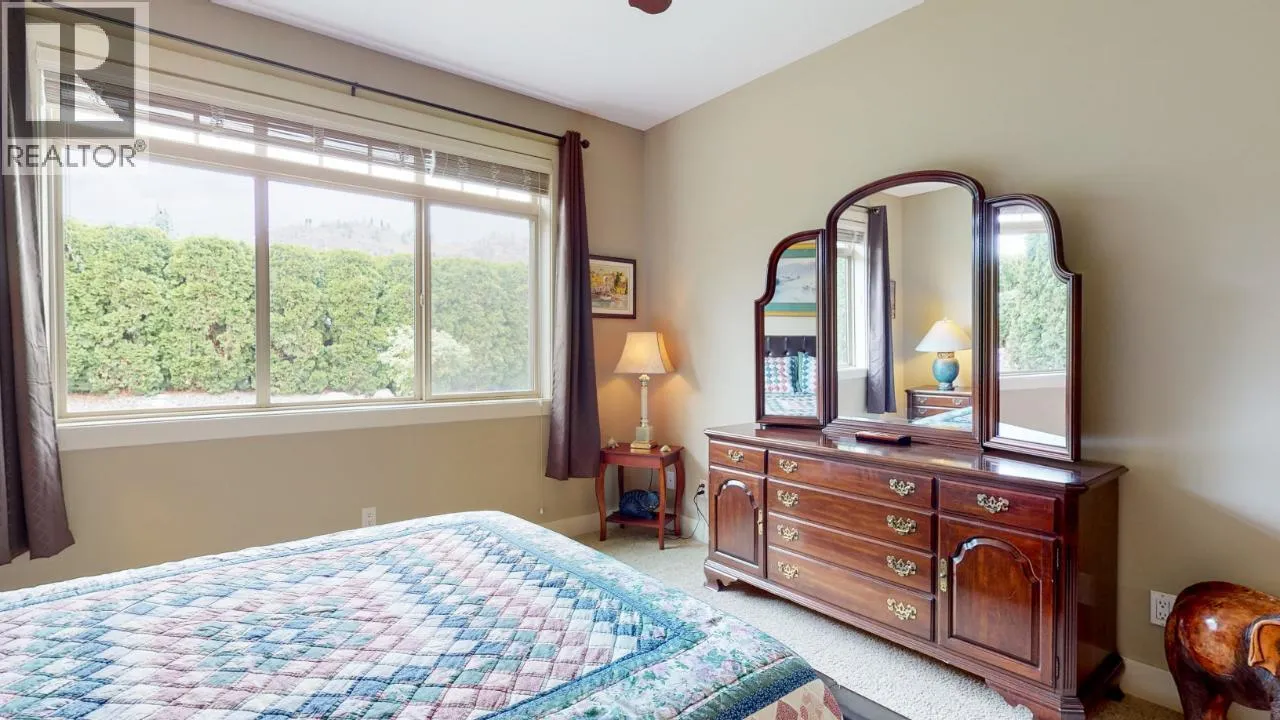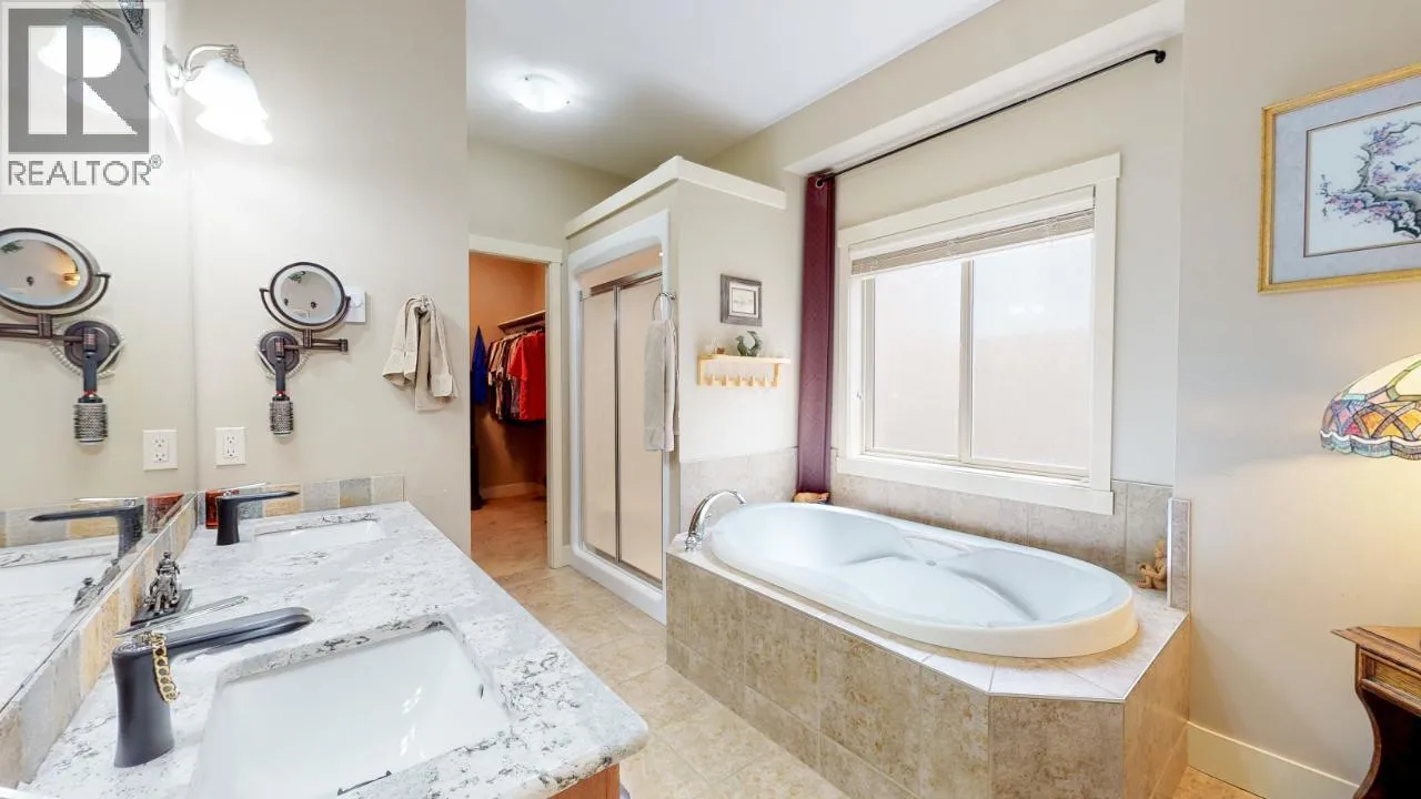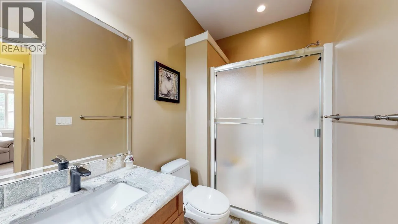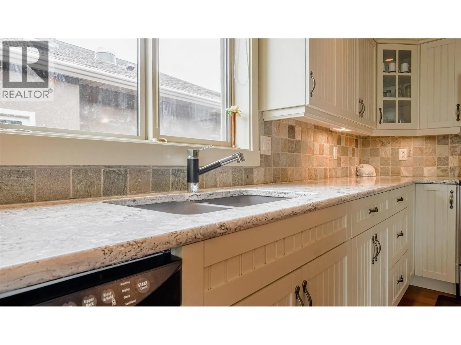 Welcome to Arbor Crest, a highly sought-after 55+ gated community! This beautiful 2 Bedroom + Den, 2 Bath Rancher offers over 1,600 sq ft of quality, custom finishes along with a double garage & private yard. Step inside the roomy foyer to a bright, open great room featuring vaulted ceilings, large windows, hardwood floors & a cozy gas fireplace. The stunning kitchen boasts gorgeous quartz counters, undermount sink, new fridge & stove, elegant taps & a large island perfect for entertaining. Enjoy custom blinds, including sunshades, and French doors with phantom screens leading to a tranquil backyard oasis. Relax on the covered, stamped concrete patio with gas BBQ hook-up, surrounded by privacy hedging & breathtaking sunsets. The back yard was refreshed with new soil & lush green lawn in 2024, along with a new retaining wall on the north side. Spacious primary suite includes an impressive 5-pce ensuite with quartz counters, dual sinks, soaker tub, shower, heated tile floors & walk-in closet. A bright second bedroom sits near a full 3-pce bath, while the French-doored den offers flexible living space. Additional features include a laundry/mudroom with sink, immaculate garage with storage & mounted TV, solar tubes, water softener, central vac & A/C. Beautifully landscaped with U/G irrigation. Low bare-land strata fee $175/mth. Pet-friendly (2 allowed), min. 3-month rentals. Ideally located near the riverfront trail, beach, golf & amenities. Book your private showing today! (id:27476)
