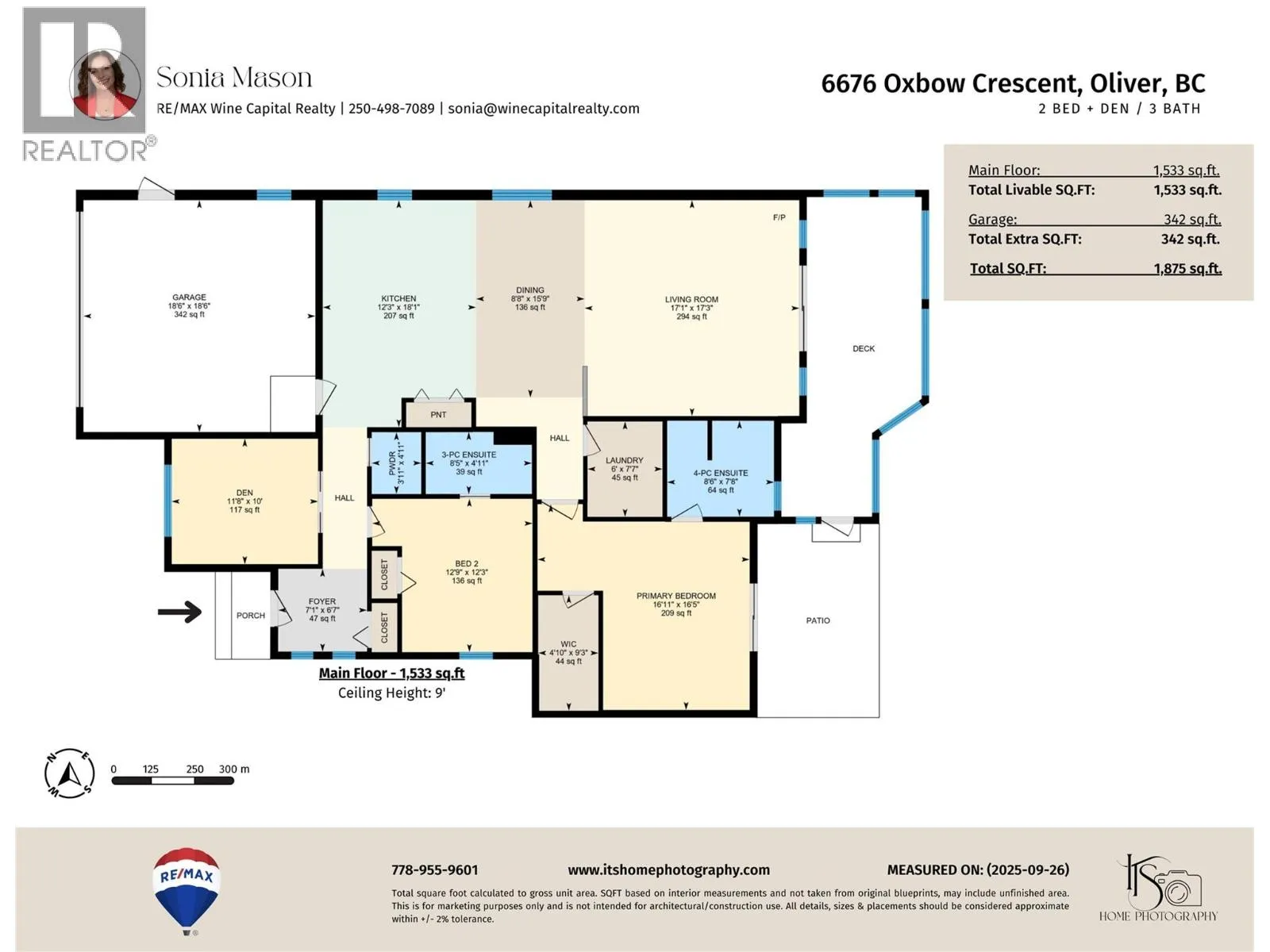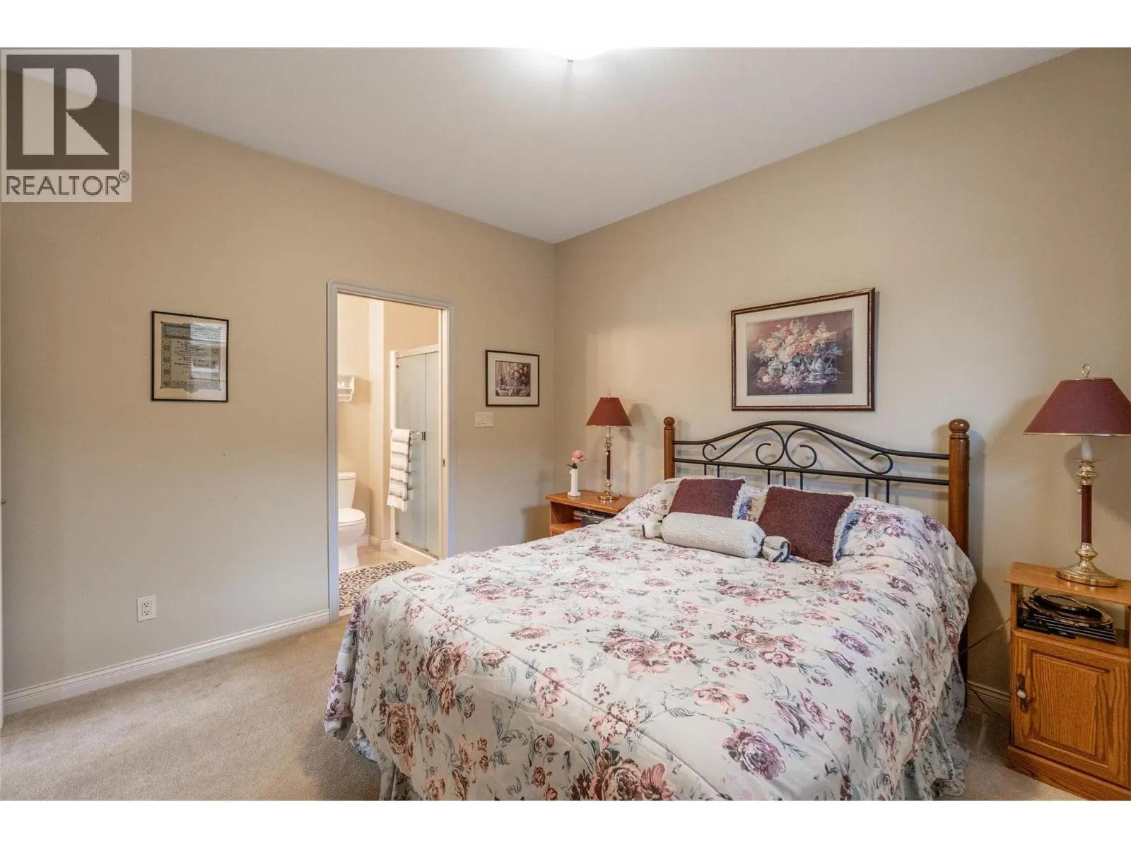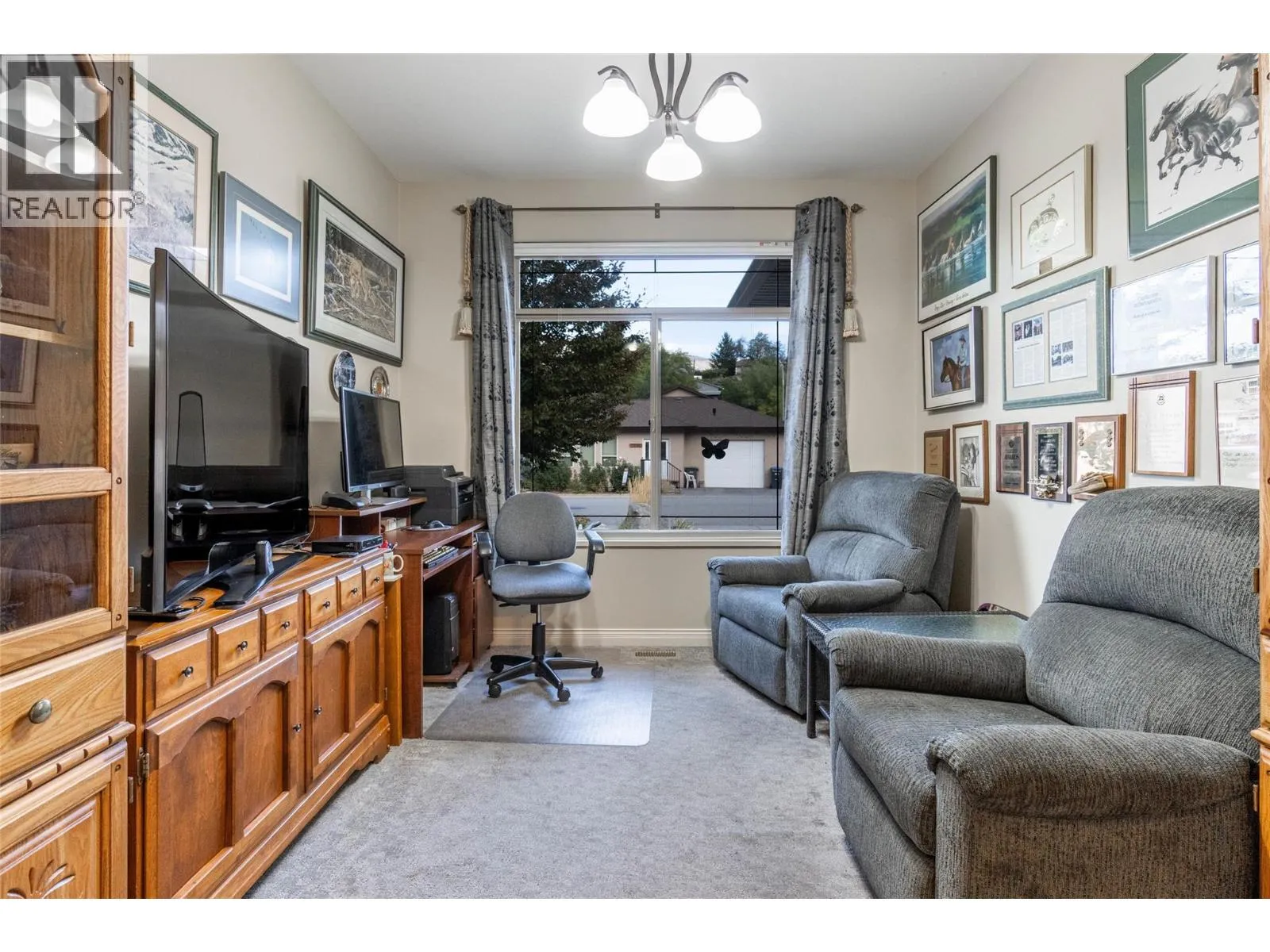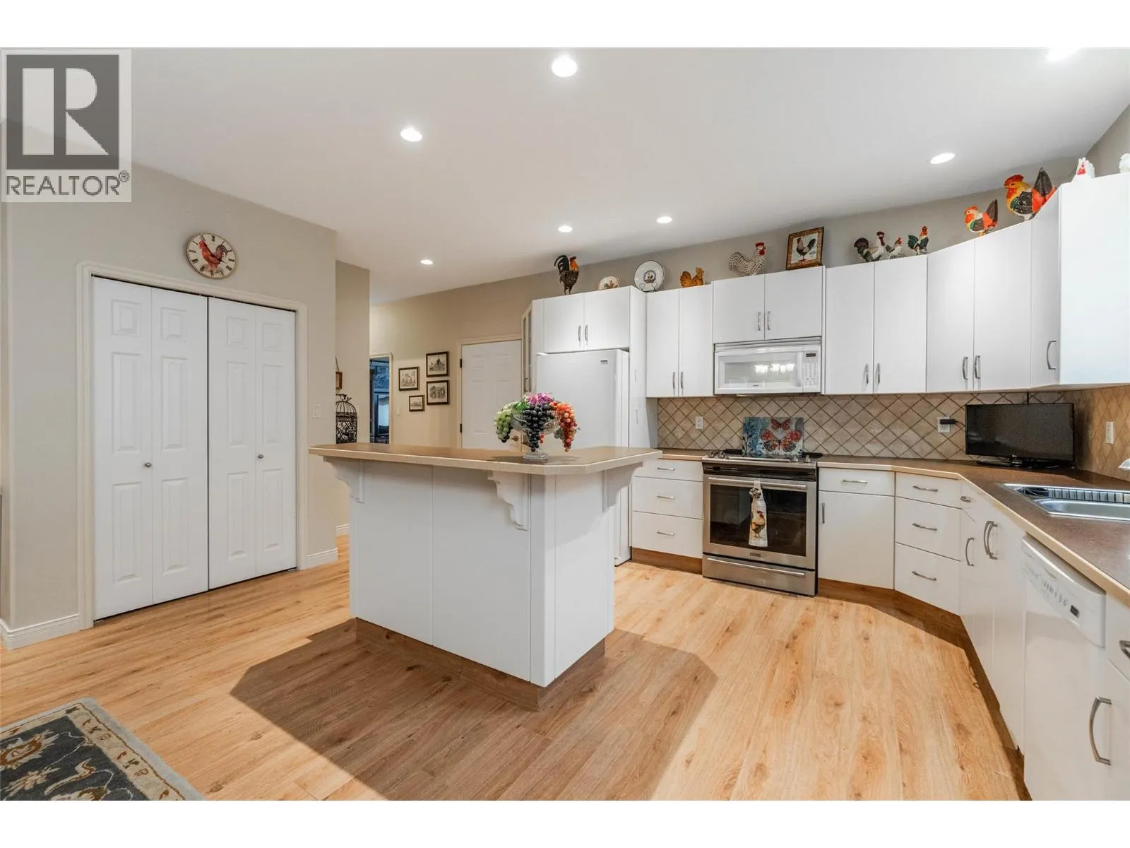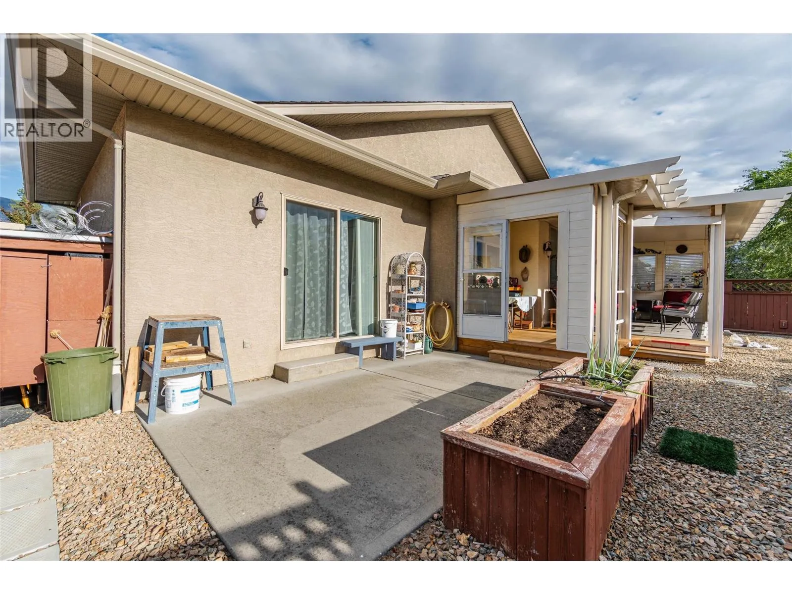 Welcome to Willowglen, a quiet, desirable neighbourhood with access to the hike & bike path along the Okanagan River. Beautiful, move-in ready rancher offers over 1600 sq ft with 2 bedrooms + den, 3 bathrooms including 2 ensuites, heated double garage & a private back yard. The front entry is private with a patio to take in the sunrise. Inside, the home offers 9 ft ceilings & a bright, open concept floor plan. The spacious kitchen has ample counter space & opens to the dining & living room, perfect for hosting family & friends. The living room contains a free-standing gas fireplace for cozy winter nights. Large primary suite has a walk-in closet with window, 4-piece ensuite & sliding doors out to a private patio. The 2nd bedroom has its own ensuite with walk-in shower. Cute 2-piece powder room for guests. Spacious flex room at the front of the home has sliding French doors & makes an ideal office, TV room or hobby room. Upgrades include a new N/G furnace, newer laminate flooring, stove & HWT, water softener, water filter system, central vac & tasteful blinds throughout. The highlight of this home is the beautiful outdoor living space overlooking the oxbow conservation area. Fully fenced, private backyard has a large, covered deck with 2 N/G hookups, sunshades, potting area, raised garden beds & storage space. Easy-care landscaping with U/G irrigation leaves more time for watching the deer, listening to the birds or taking in the stunning sunsets. Donât miss out on this gem! (id:27476)