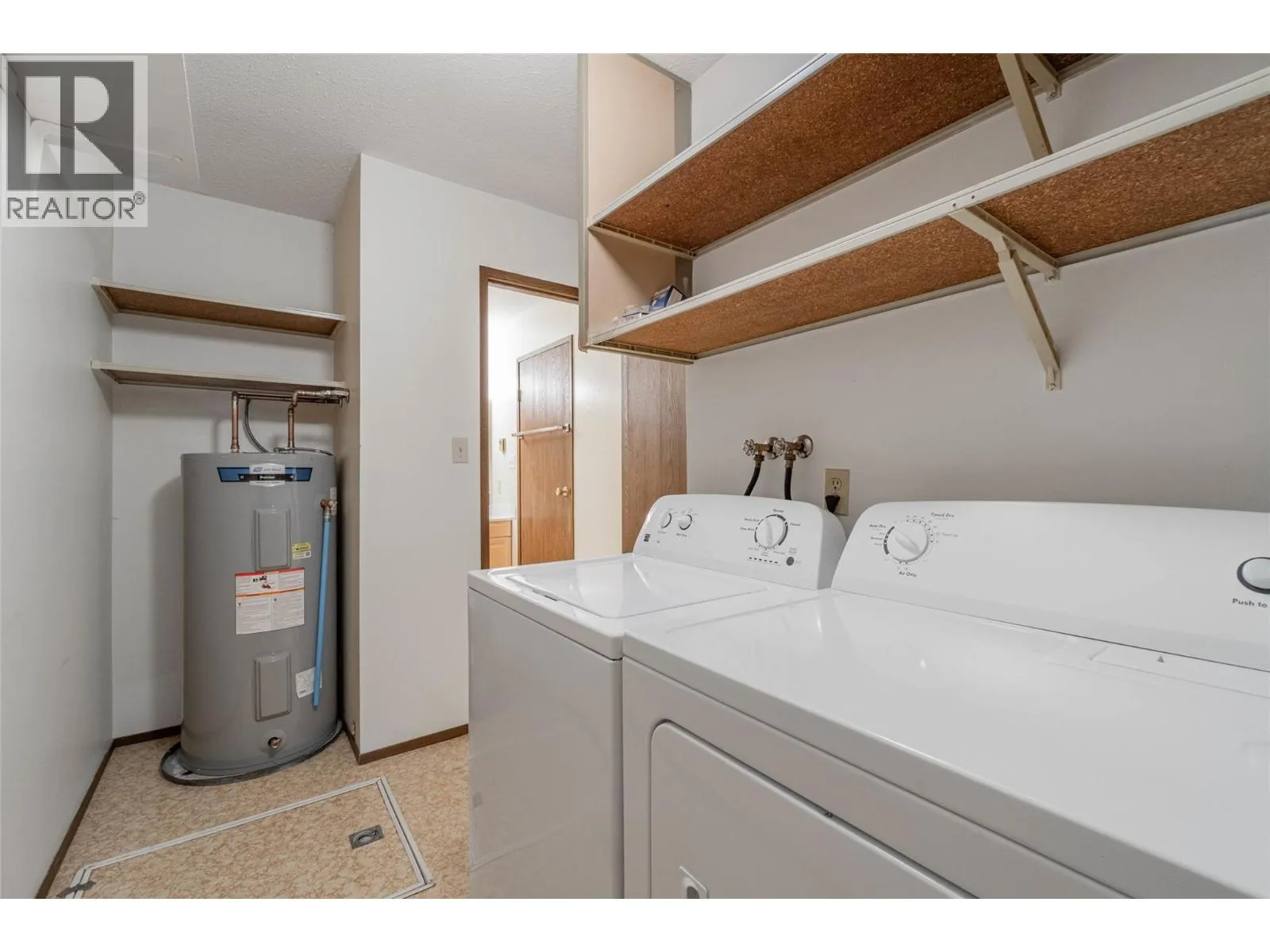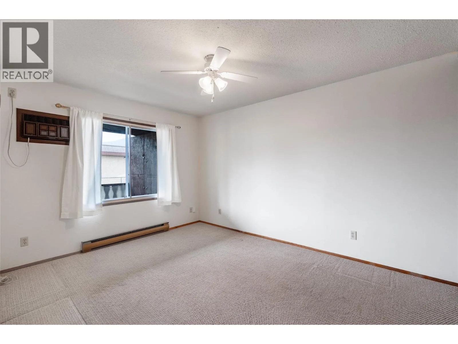 Welcome to Airport Village, a perfect retirement home in the heart of Oliver! This is a quiet, well-maintained 55+ community with only 8 townhome units. Great location next door to the Senior Center and a short walk to shopping in either direction. This 2 bedroom, 1 bathroom townhome has been lovingly maintained and is truly move-in ready. Cute, functional kitchen with fridge, stove, dishwasher and hood range. Easy-care laminate flooring runs through the main living area. Both bedrooms are generously sized and have ample closet space. 4-piece bathroom features a convenient grab rail along the tub for added safety. Large laundry room with washer & dryer, access to crawl space storage and a newer hot water tank (2021). Two A/C units and ceiling fans throughout will keep you comfortable on warmer days. Outside, enjoy your own private space on a HUGE covered north-facing deck, perfect for morning coffee or afternoon relaxation. A handy storage cabinet is included, along with two parking spaces just steps from your door. One small dog or indoor cat is welcome. Low strata fee of just $120.52/month. This home offers unbeatable value in a fantastic location, donât miss this opportunity! (id:27476)