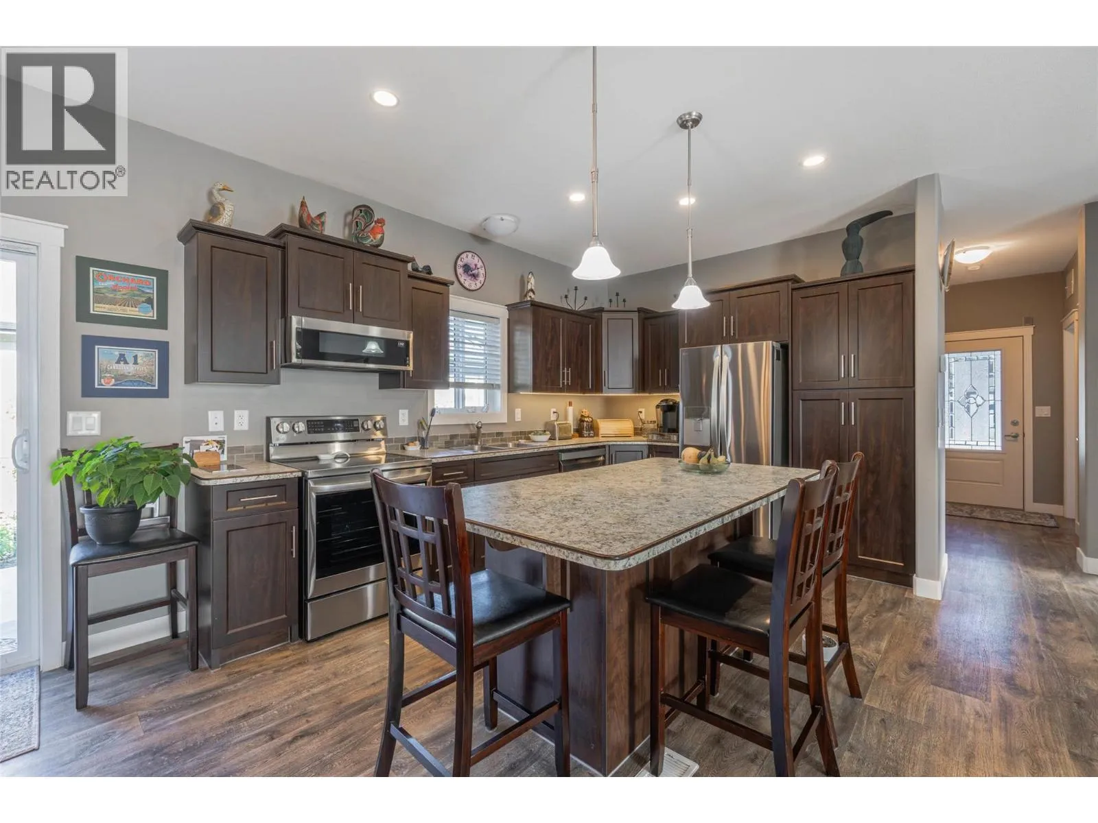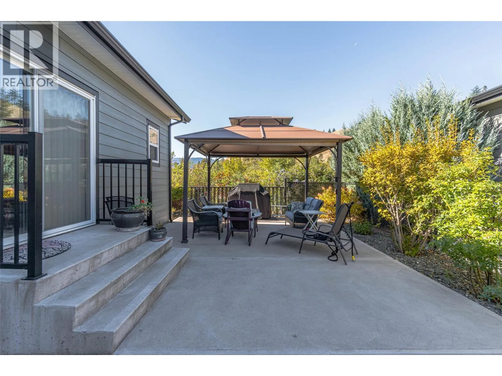 Discover the most desirable locations in Gallagher Lake â This true RIVERFRONT home offers a rare blend of tranquility, function, and modern comfort. Step directly from your home onto an expansive 50' x 16' concrete patio overlooking the water â a perfect space for entertaining, relaxing, or simply soaking in the peaceful views. Inside, the layout is bright and practical, featuring chocolate-toned cabinetry, easy-care vinyl flooring, and a 3-piece ensuite with a 5-foot walk-in shower. The home is equipped with brand-new appliances, underground irrigation, hot-water on demand and a fully fenced yard, ideal for pets and privacy. Youâll appreciate the spacious 2 car garage garage and extra paved parking out front for three more vehicles. Full heated and cooled concrete crawl space. Unlike the other homes for sale in Gallagher Lake Village Park, this one offers true riverfront access, turnkey upgrades, and low-maintenance living thatâs ready to enjoy from day one. Gallagher Lake Village Park is a well-kept community just minutes north of Oliver, offering the perfect balance of nature, comfort, and convenience. Dogs and cats welcome upon approval. Secure RV or trailer parking available in the Complex. (id:27476)