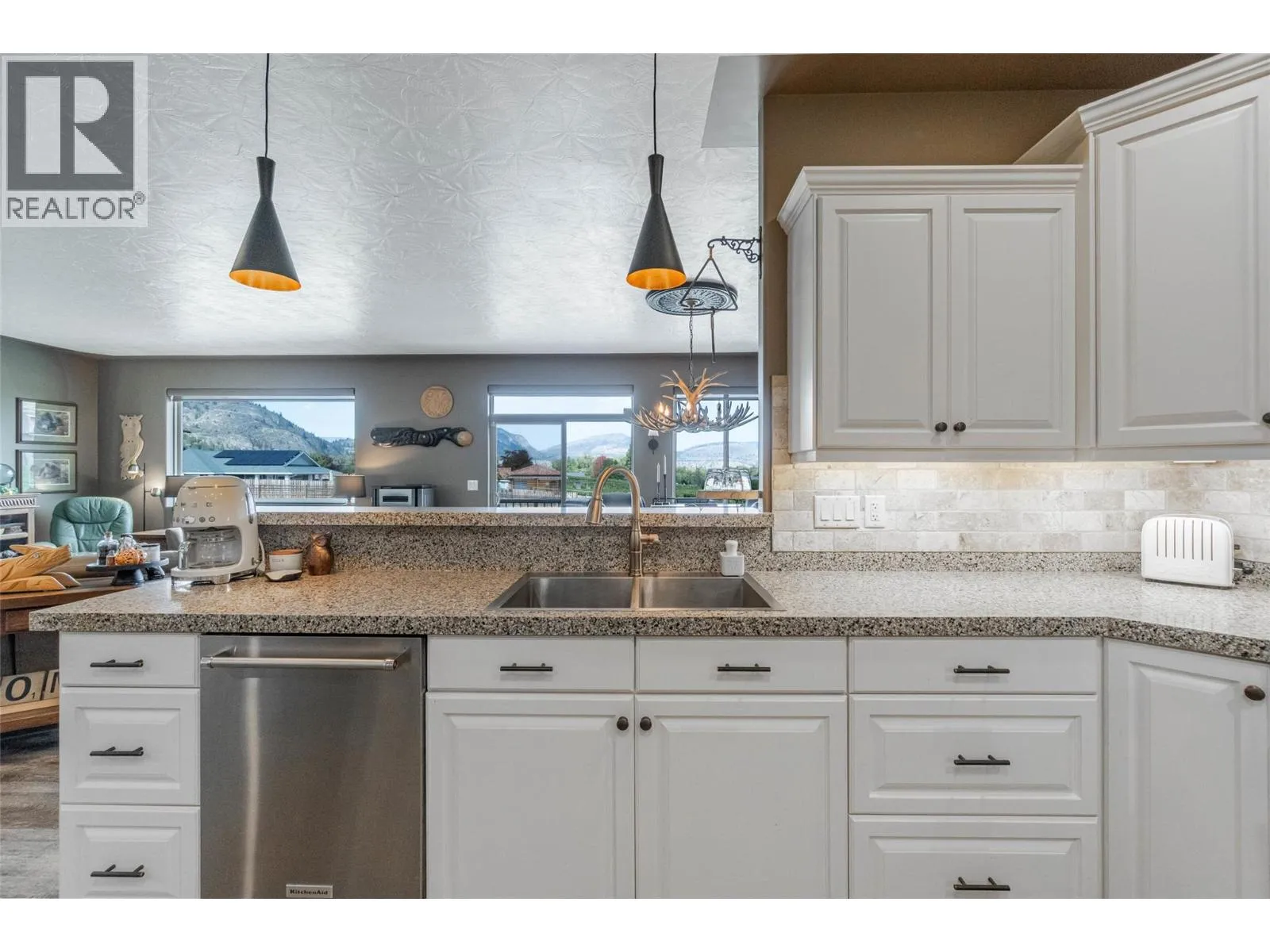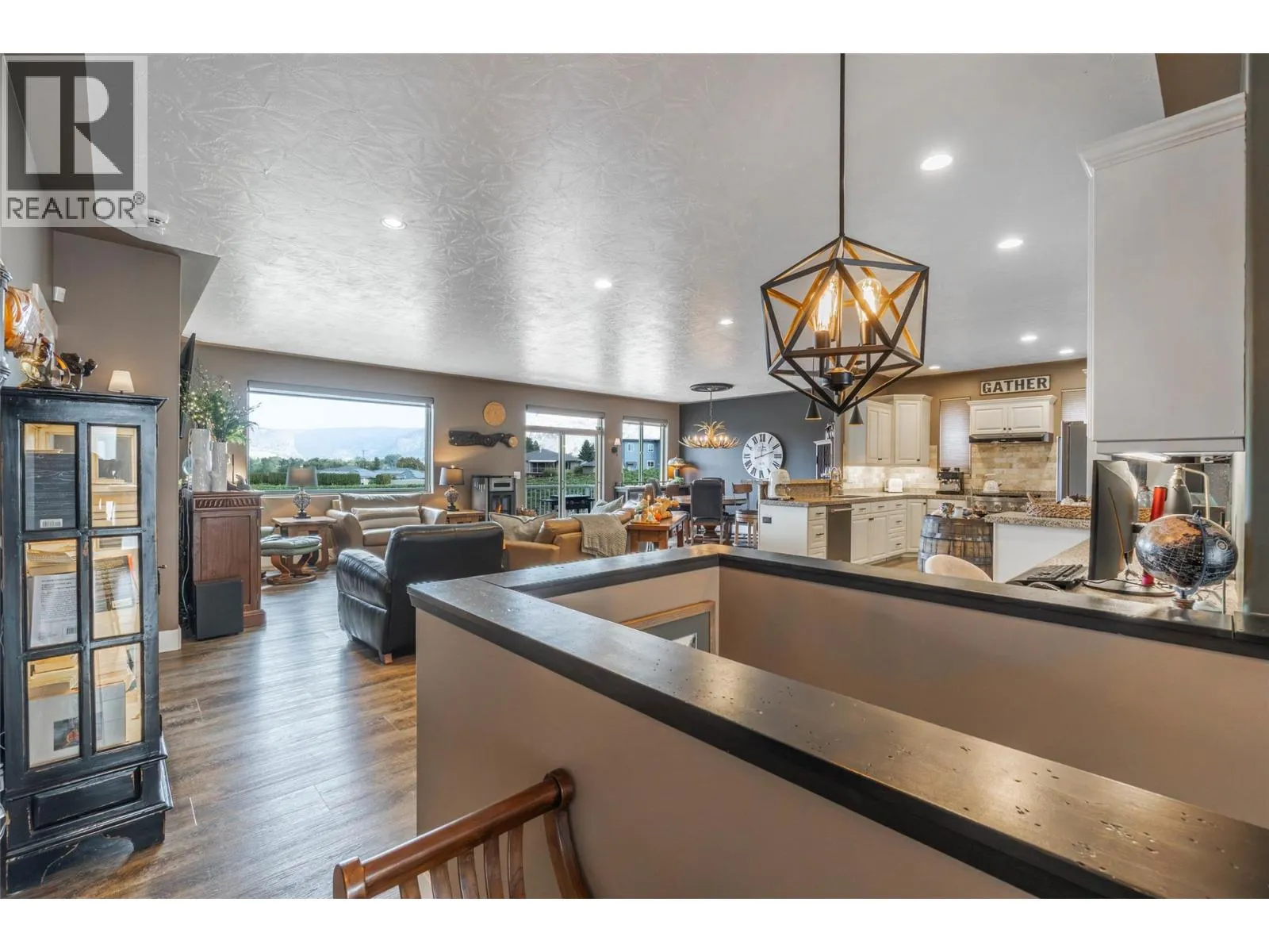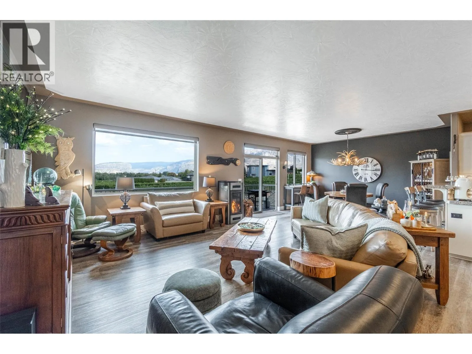Stunning ENTERTAINERâS DREAM HOME nestled in a quiet cul-de-sac in one of the most desirable locations in Oliver. 3 BED, 3 BATH exquisite rancher with walk-out basement offers a perfect balance of luxury & livability. Custom built in 2008 & first occupied in 2016, this home has since been renovated with exceptional craftsmanship. Expansive great room with 9-ft sculptured ceilings, gorgeous kitchen, gas f/p & breathtaking mountain & vineyard views from every window. Enjoy a morning coffee while gazing at McIntyre Bluff on your newly surfaced deck. Tranquil primary bedroom with walk-in closet, 4-pce ensuite & balcony access for your own private views. Updates include kitchen cabinets, stone countertops, appliances, vinyl plank flooring, gas f/p, bathrooms & window coverings. Completing this level is a 2nd bedroom, 3-pce bath & laundry area w/sink. A sweeping staircase leads to an impressive lower level designed for stylish entertaining. Beautifully transformed with bar seating, refreshed kitchenette, frosted glass doors & contemporary lighting. Take your entertainment outdoors to a large, covered walk-out patio with the privacy of a vineyard in your backyard. With its own private entrance, bedroom, 4-pce bath & laundry hook-ups, this level can easily be converted to an in-law suite or mortgage helper. Attached 2-bay oversized & insulated garage. Notable upgrades include newer gas furnace, HWT, water softener, garage doors & front door. Effortless living, beautifully designed. (id:27476)