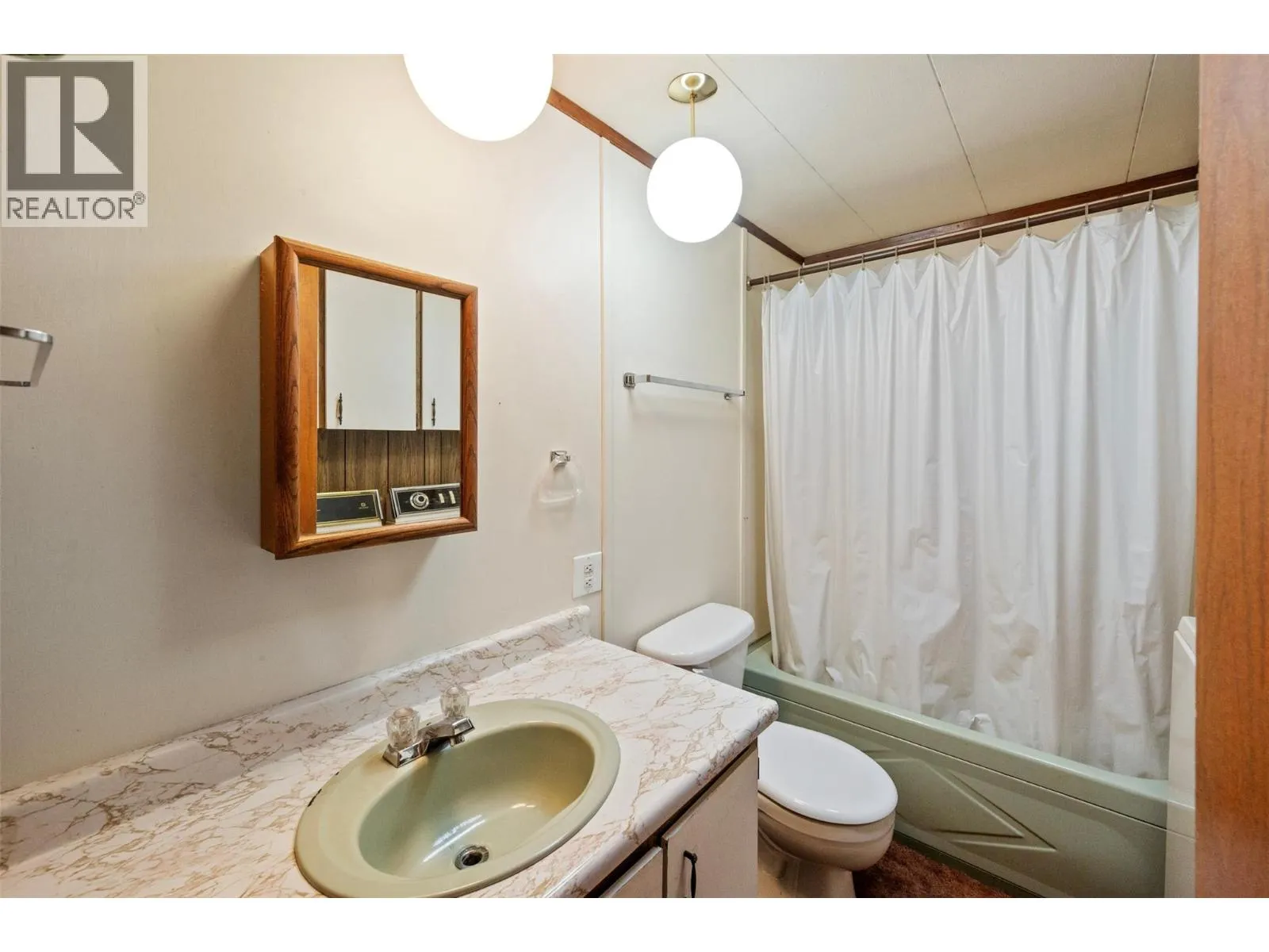 Nestled in the lovely Country Pines community, this charming 2-bedroom mobile home offers comfort, convenience, and a relaxed lifestyle youâll love. The home features a bright north-facing living room that fills with natural light and showcases a cozy bay windowâthe perfect spot to enjoy your morning coffee. The quaint kitchen provides a warm, functional space with a designated dining area, while a bonus room offers endless flexibilityâideal as a second living room, craft space, guest room, or office.Outside, enjoy a spacious backyard, covered deck, and garden area, along with two storage sheds and parking for three vehicles (plus room for your golf cart and guests!). This welcoming community is just 5 minutes from the District Wine Village, 7 minutes to downtown Oliver, and 20 minutes to Penticton, offering easy access to everything you need. As a resident, youâll also enjoy private access to Gallagher Lake, complete with a sandy beach and sparkling waterâplus RV parking and pet and rental-friendly policies, making this an ideal choice for both homeowners and investors. Recent updates include vinyl windows, a newer gas furnace, and a newer roof, giving you peace of mind for years to come. With its friendly neighbors, beautiful setting, and resort-style amenities, this home offers the perfect blend of comfort, community, and convenience. (Some photos digitally staged.) (id:27476)