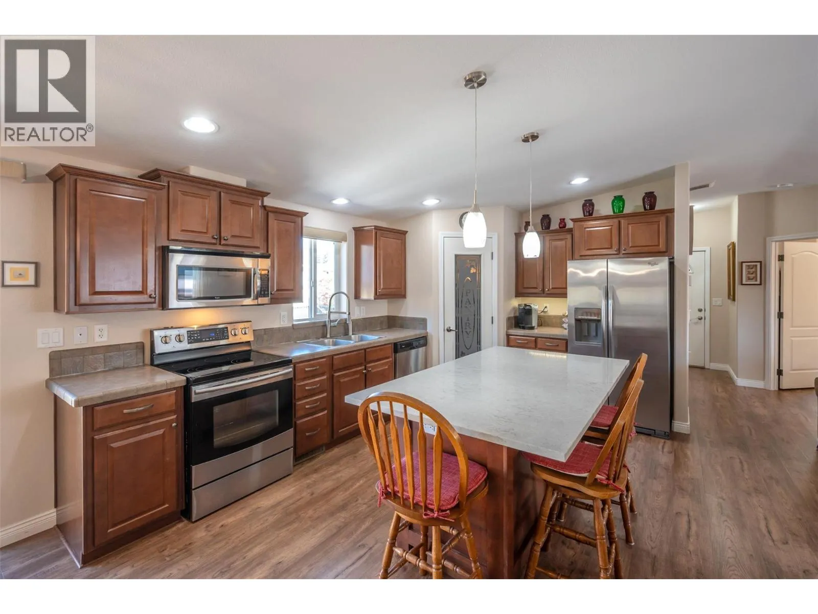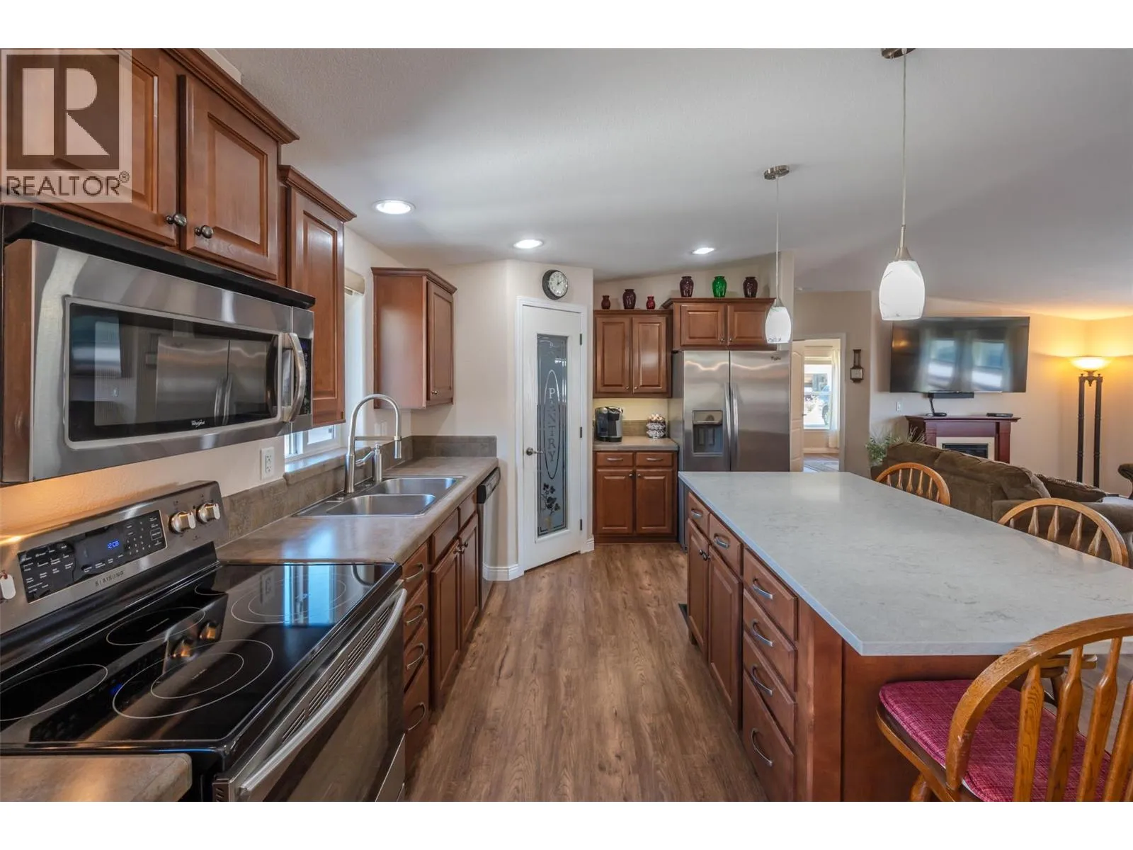 Discover comfortable, one-level living in this 3-bedroom rancher! From the moment you walk in, you will appreciate the bright, open-concept layoutâperfect for both everyday living, effortless entertaining and all on one level! Plus, outside you will enjoy your low-maintenance lifestyle with a stress free backyard complete with a stamped concrete patio, gas BBQ hookup, charming pergola and a handy 8x12 storage shed. A wonderful space to relax or entertain on those warm Okanagan afternoons. This beautiful 3 bedroom, 1,507 SQ FT home features an open layout, large island, walk-in pantry, sleek stainless steel appliances, roomy double garage and shed. The primary suite offers a peaceful retreat with walk-in closet and a spa-inspired ensuite complete with a luxurious soaker tub, tiled walk-in shower, and on-demand hot waterâeveryday comfort at its best. Two additional bedrooms offer flexibility for guests, a hobby space or whatever suits your lifestyle. The laundry room, located just off the double garage, doubles as a convenient mudroom and provides extra storage to keep things organized. Whether youâre downsizing, beginning a new chapter, or seeking a peaceful place to call home, this Gallagher Lake gem offers the ideal blend of modern comfort and easy living. No age restriction! 2 pets allowed! No PTT or GST. $725/m pad rent includes sewer/water/garbage/recycling/mnt. All measurements are apx. (id:27476)