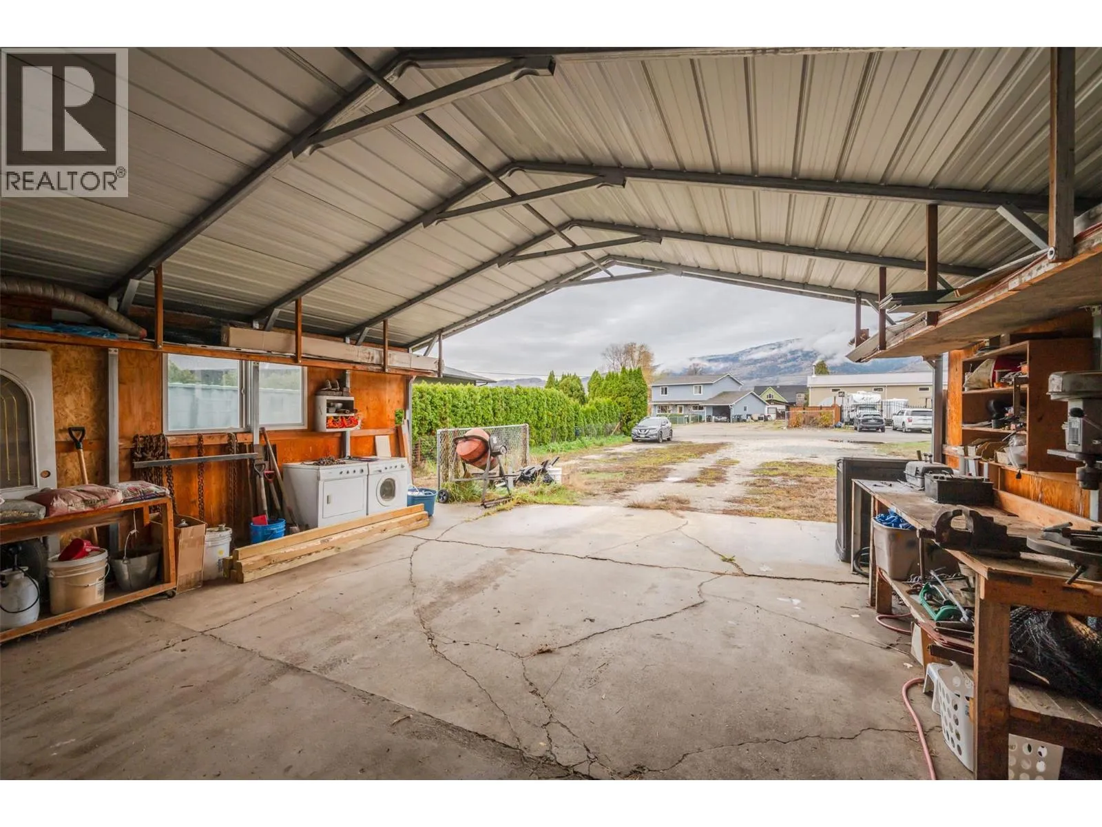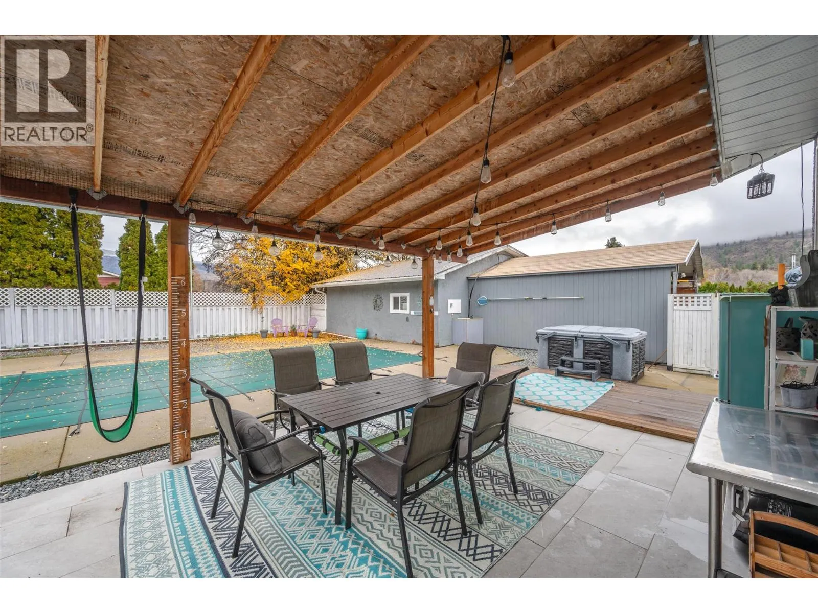 FB LIVE Virtual Open House Thursday Dec 18 12 noon: https://www.facebook.com/TheAmosTeamC21 Discover the perfect blend of space, comfort, and possibility on this expansive 0.413-acre corner lot located just five minutes from downtown Oliver. This move-in-ready home offers an incredible outdoor oasis with a fully fenced backyard featuring a large in-ground pool, hot tub, custom-built wood fireplace, covered patio, and plenty of room for play, pets, and entertaining. An oversized shop with an attached garage, plus two driveways and abundant parking, provides ample space for vehicles, recreational toys, and your RV. Inside, the home has been extensively updated with a brand-new kitchen highlighted by a custom wood feature beam, modern appliances, new flooring, two heat pumps, refreshed paint, renovated bathrooms, and a cozy wood stove. The main level offers a bright, open floor plan with three generous bedrooms, while the lower level boasts a large open basement complete with two additional bedrooms (1 doubles as gym), two storage rooms, and plenty of room for a second living area, entertainment room, gym, or more. With its own secondary access, the lower level also offers excellent suite potential with ample space to make it happen. A spacious laundry room that doubles as a mud room and an additional covered deck off the main entrance add even more convenience and charm. With no restrictions on the land, this property still offers plenty of space to expand, customize, or create!. *Some photos digitally staged* (id:27476)