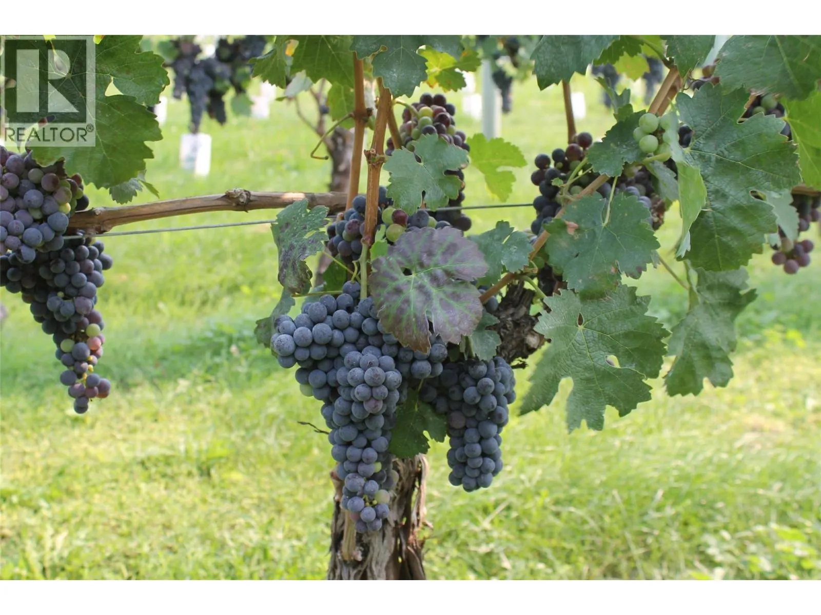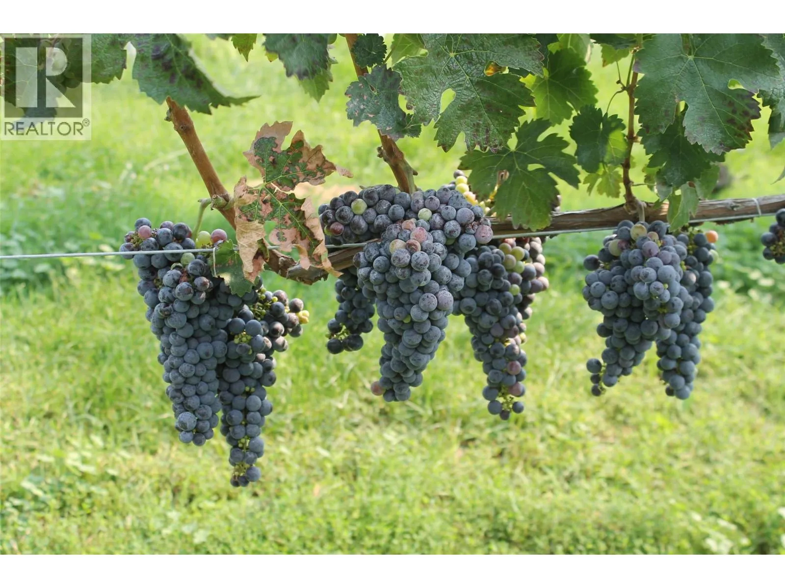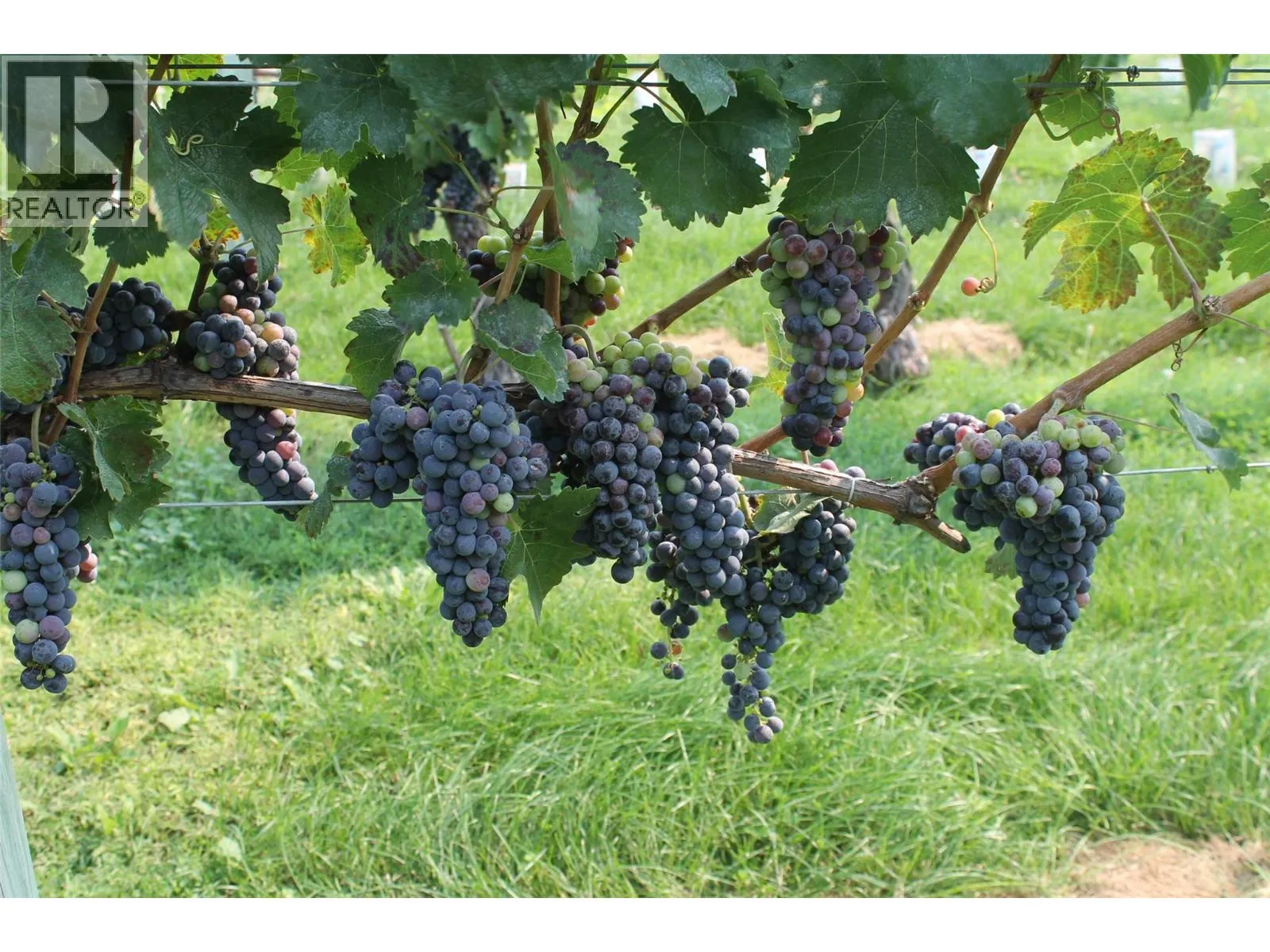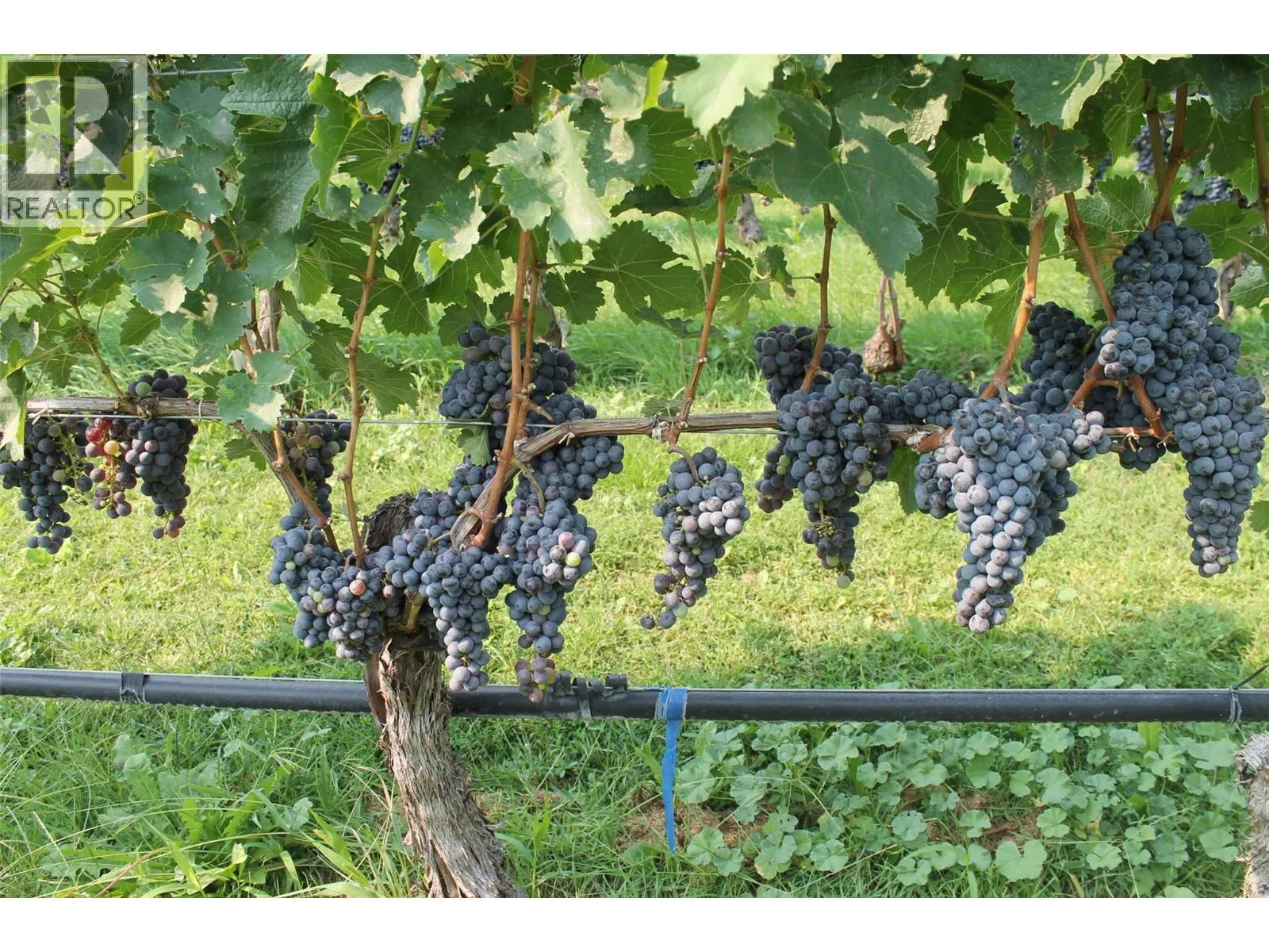 Vineyard : Close to Golden Mile and Black Sage Bench in the Wine Capital of Canada. Varietals: Cabernet Franc, Merlot, Malbec, Syrah, Sauvignon Blanc and Pinot Gris grown for award-winning wines locally. Viticulture: Grafted vines to create authentic varietals from this unique terroir. 7 x 3 spacing for optimum vine spacing, tractor access and optimum grape growing. VSP (Vertical Shoot Positioning) trellising to allow quality vine growth and cane separation. Drip, sprinkler, and overhead irrigation for diversification of watering for vines and cover crops. North-South row alignment for maximum sunlight exposure throughout the season. Condition: The vineyard comprises a combination of mature vines and a partial replant program. Parts of the vineyard are in their second year of a recent replant program, with full production expected in a couple of years. Rootstock: All vines are Vinifera grafted on American rootstock, providing robust disease and pest resistance, plus root adaptability. Production Building: A conveniently situated 4,000 sq ft manufacturing facility with tall ceilings and a central drain. Three-bay access to a twin space equipped with single phase power emanating from a three phase supply. A 5,000 sq ft concrete pad outside. Storage/Equipment Barns: Two massive barns with a total of 8,400 sq ft. Farmhouse: Two storey built in 1976 and recently updated/modernized, divided into two separate tenanted suites each with heat pumps, AC, and hot water. (id:27476)