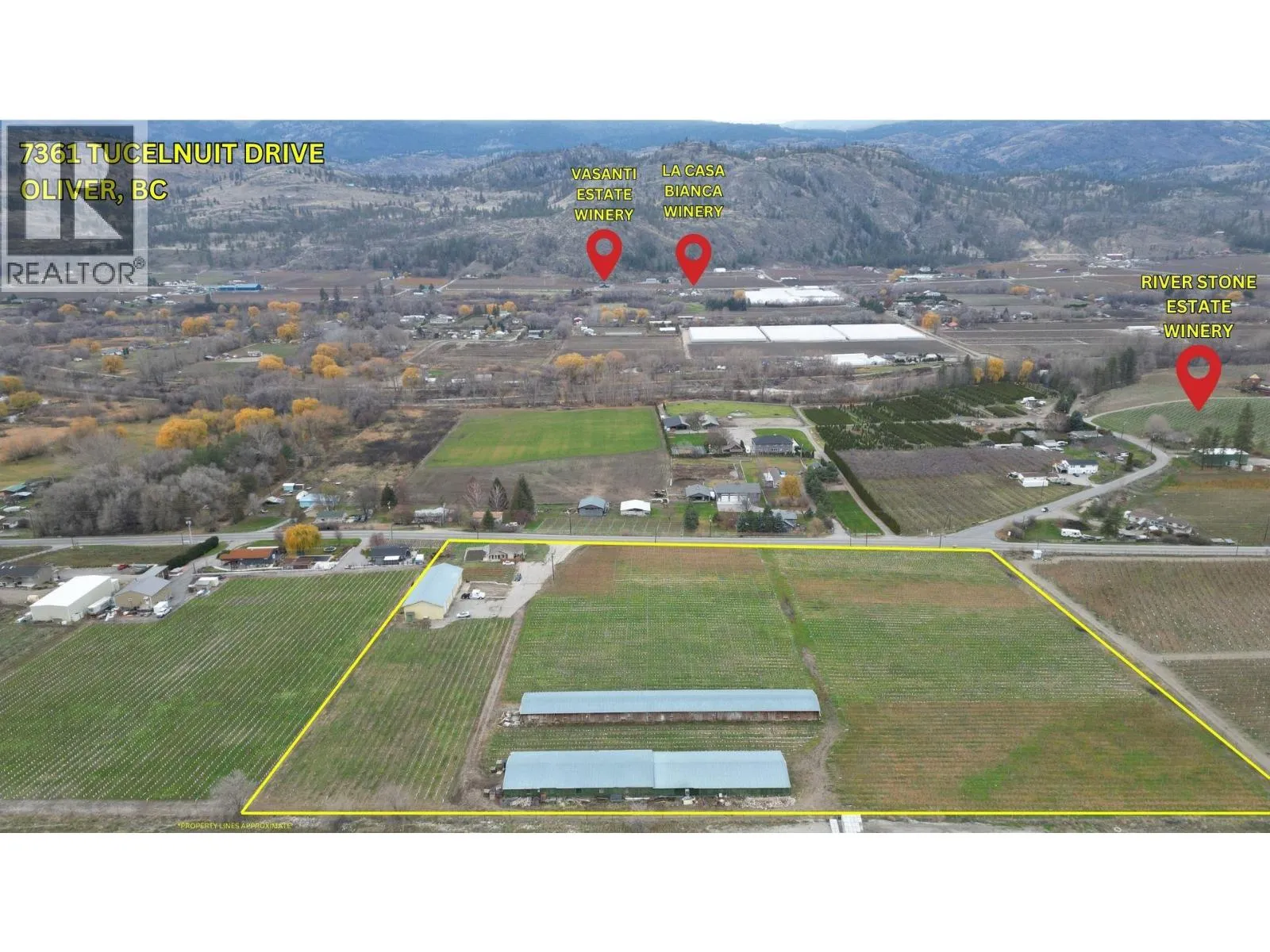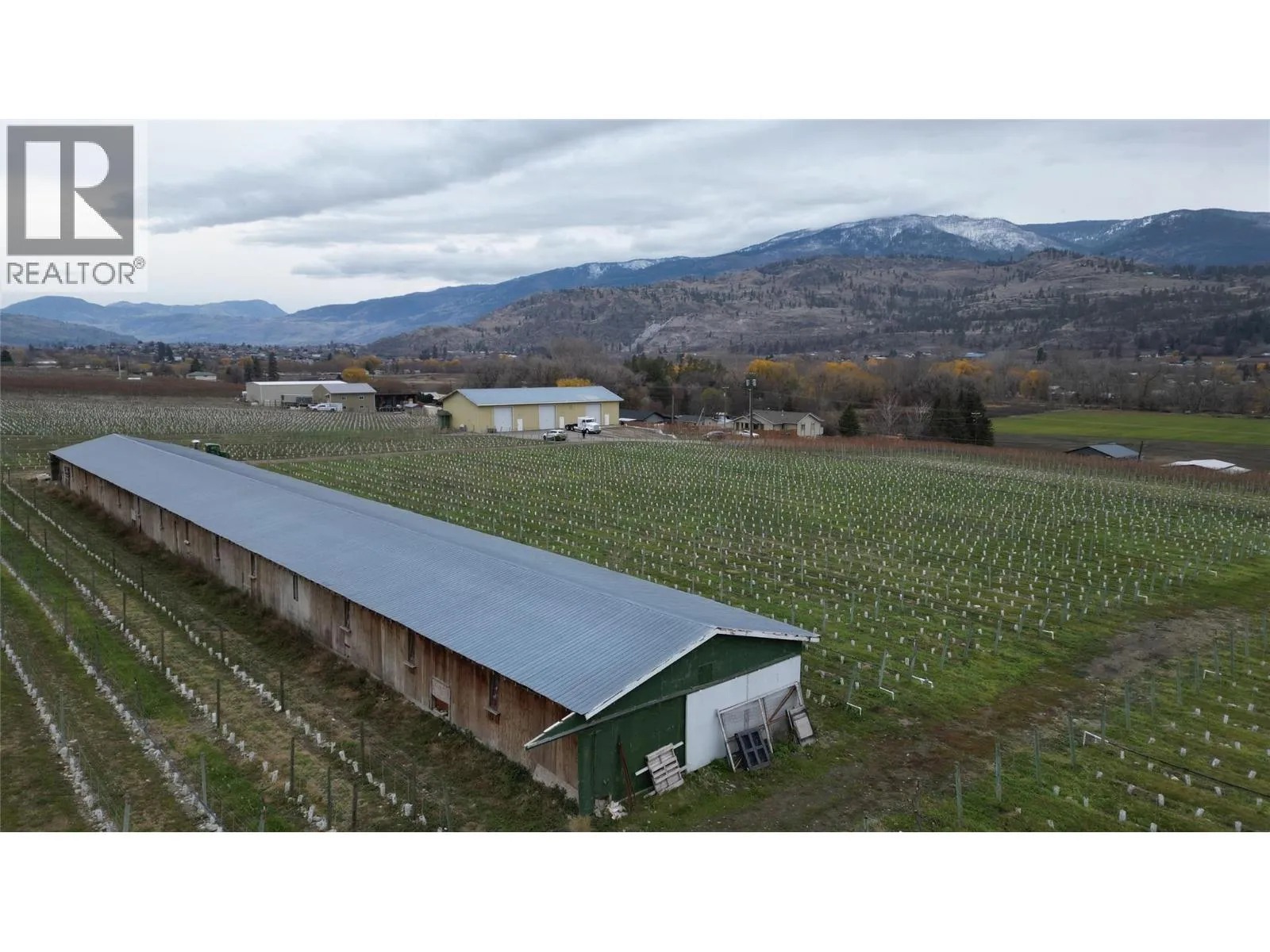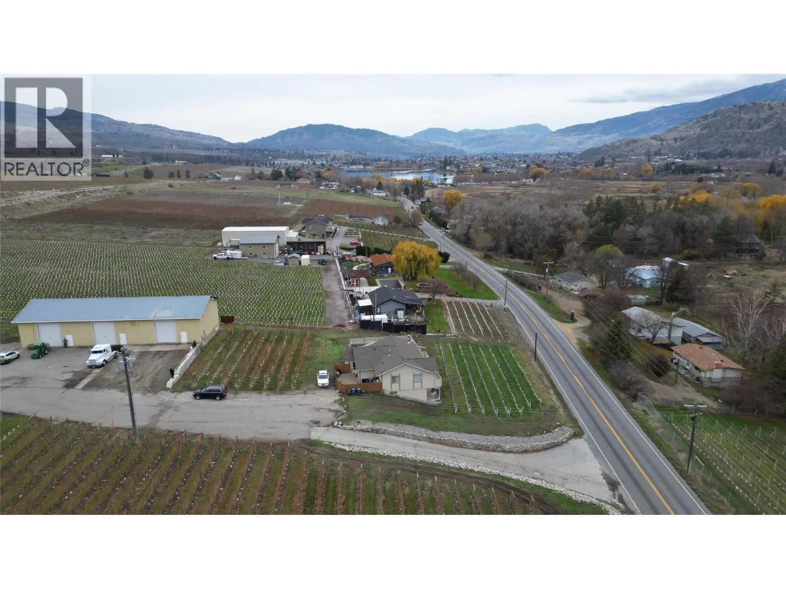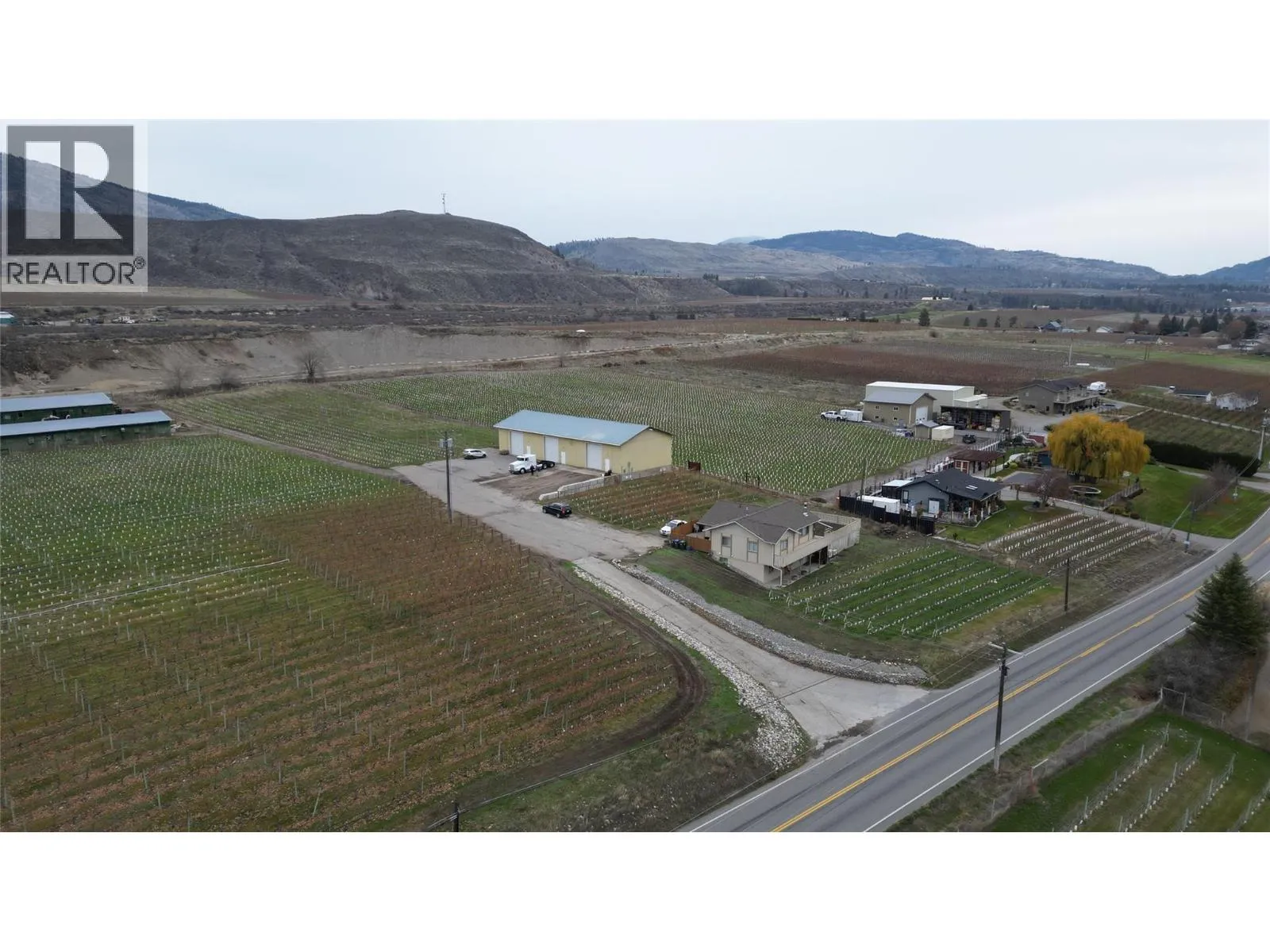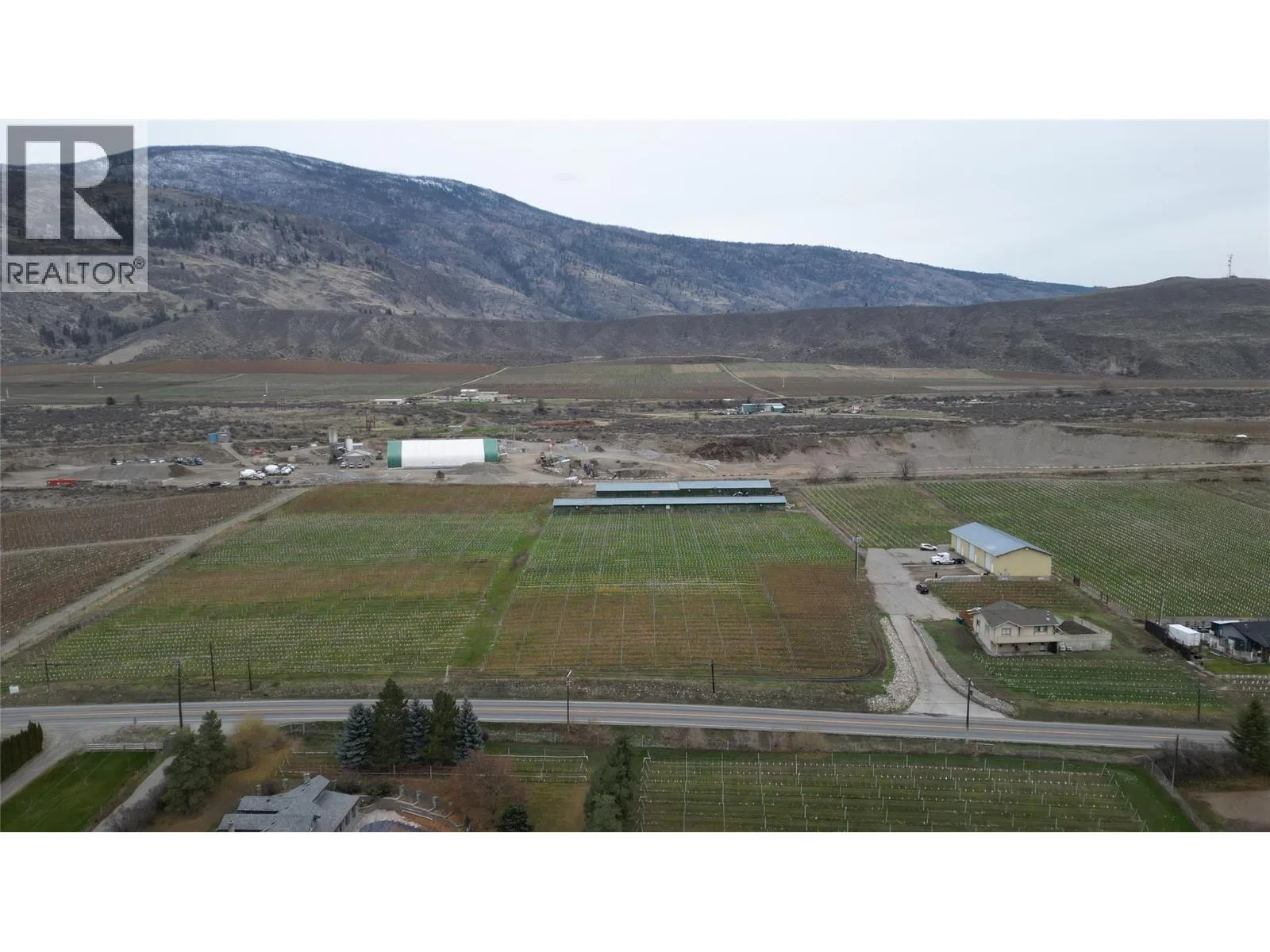 Vineyard : Close to Golden Mile and Black Sage Bench in the Wine Capital of Canada. Varietals: Cabernet Franc, Merlot, Malbec, Syrah, Sauvignon Blanc and Pinot Gris grown for award-winning wines locally. Viticulture: Grafted vines to create authentic varietals from this unique terroir. 7 x 3 spacing for optimum vine spacing, tractor access and optimum grape growing. VSP (Vertical Shoot Positioning) trellising to allow quality vine growth and cane separation. Drip, sprinkler, and overhead irrigation for diversification of watering for vines and cover crops. North-South row alignment for maximum sunlight exposure throughout the season. Condition: The vineyard comprises a combination of mature vines and a partial replant program. Parts of the vineyard are in their second year of a recent replant program, with full production expected in a couple of years. Rootstock: All vines are Vinifera grafted on American rootstock, providing robust disease and pest resistance, plus root adaptability. Production Building: A conveniently situated 4,000 sq ft manufacturing facility with tall ceilings and a central drain. Three-bay access to a twin space equipped with single phase power emanating from a three phase supply. A 5,000 sq ft concrete pad outside. Storage/Equipment Barns: Two massive barns with a total of 8,400 sq ft. Farmhouse: Two storey built in 1976 and recently updated/modernized, divided into two separate tenanted suites each with heat pumps, AC, and hot water. (id:27476)