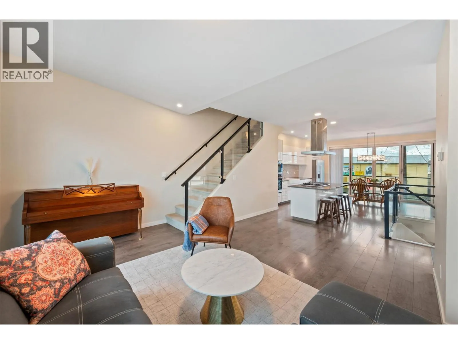 Welcome to modern townhouse living in the heart of Oliver Landing! This stunning 3-level end unit townhouse, built in 2018, offers the perfect blend of contemporary design, abundant natural light, and functional living spaces. The main living area on level 2 features an open-concept layout flooded with natural light from wall-to-wall windows that slide open to completely open up the space. The spacious kitchen, dining, and living areas flow seamlessly together, perfect for entertaining or everyday family life. Walk out to private balconies on both sides, creating incredible indoor-outdoor flow. The top floor is dedicated to your primary bedroom sanctuary, complete with ensuite bathroom and your own private balcony - the ideal spot for morning coffee or evening relaxation. The ground floor features a second bedroom and a versatile office space, both with direct access to a small fenced yard. Whether you work from home, need a guest suite, or want dedicated hobby space, this level delivers flexibility for your lifestyle. Premium features include end unit location with double attached garage, 3 bedrooms, 2.5 bathrooms, and multiple outdoor spaces including 3 balconies plus fenced yard. No age restrictions, pets allowed, and long-term rentals permitted. Located in desirable Oliver Landing, you're minutes from award-winning wineries, golf courses, and all the amenities that make Oliver Canada's Wine Capital. (id:27476)
