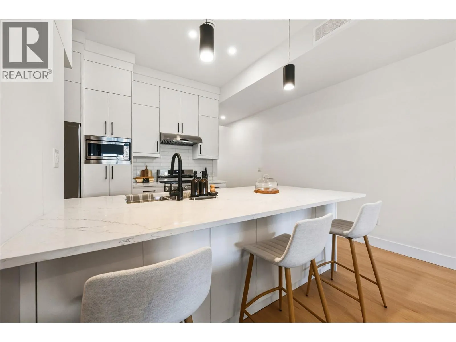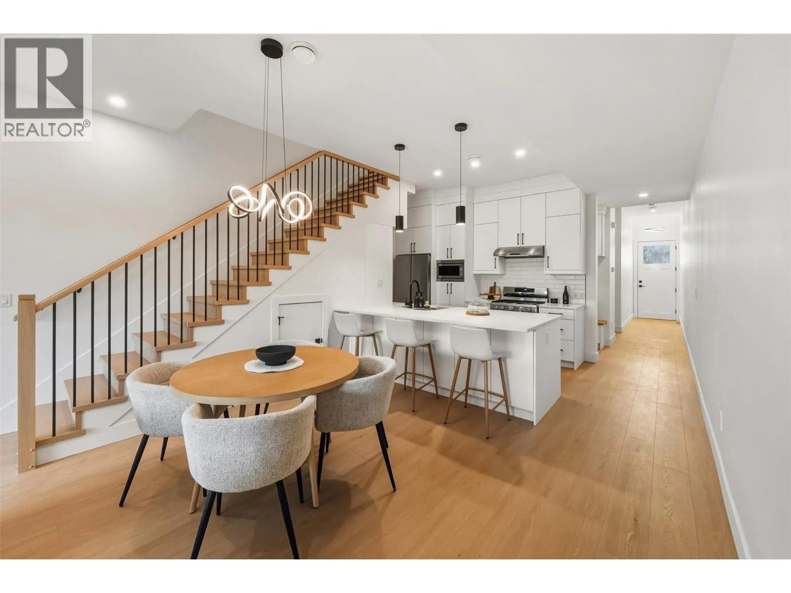 Welcome to Maple Place, a brand-new 4-unit townhouse subdivision offering modern design just minutes from downtown Oliver. This 1,788 sq.ft. home features 3 spacious bedrooms and a highly functional layout with all main-floor living. The bright living area includes large windows, a feature fireplace, quality millwork, and warm modern fixtures with high-illumination LED accent lighting throughout. The kitchen is impressively finished with floor-to-ceiling cabinetry, quartz countertops, a peninsular island with bar seating. Full Appliance package: Gas Range, Dishwasher, Refrigerator, Stacked Washer and Dryer. Exceptional cabinetry storage usually only found in custom homes. Modern colour palette with black hardware and fixtures complete the contemporary look. Upstairs, the primary suite offers a walk-in closet with built-ins and a spa-inspired ensuite w/ a large shower and freestanding soaker tub. 2 more bedrooms provide flexibility for family, guests, or home office use. Comfortable high-efficiency gas furnace with heat pump/AC + Digital Thermostat. Separate utility room provides sound control and easy maintenance. Laundry room w/ sink is conveniently located off garage. EV Ready Pre-wired for your car. Private low-maintenance yard with xeriscaping, 6’ powder-coated metal fencing, and a north-facing concrete patio, ideal for summer shade. Pets OK. GST applic. Complete P.T.T. exemption may be available *restrictions may apply. Immediate Possession Available Now! (id:27476)