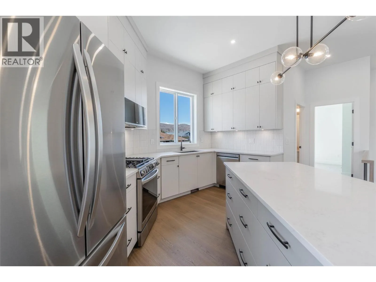 Exquisitely crafted 3 BEDROOM + DEN, 3 BATH half-duplex with suite potential has a fantastic floor plan that combines versatility with modern comfort. NO STRATA FEES! The ground floor contains 1 bedroom plus a den, full bathroom, laundry & a large wet bar that could be converted into a 2nd kitchen. Separate entrance makes it ideal for an in-law suite or mortgage helper. Upstairs discover an open concept floor plan with 2 bedrooms, 10-ft ceilings & amazing mountain views! Gourmet kitchen with high-end stainless steel appliances & gas range (all with 2-year warranty), quartz countertops, kitchen island, modern lighting & cabinets made of real wood! Beautifully designed, spacious living area with built-in wall accents. Large windows provide tons of natural light, with sliders off the living room onto a north facing balcony, a cooler option during the hot Okanagan summer. Primary suite has a walk-in closet, 3-pce ensuite with large tiled walk-in shower & a balcony to enjoy the sunshine & beautiful south-facing views. Another bedroom & full 4-pce bath complete this level. The exterior offers a private concrete patio in the north facing back yard, tasteful landscaping & U/G irrigation. Attached single car garage with EV charging rough-in. 10-year home warranty for peace of mind. FIRST-TIME HOMEBUYERS, you are GST EXEMPT! Excellent location near the lake, walking trails, golf, recreation, wineries & more! GST applicable. Book your private showing today! (id:27476)