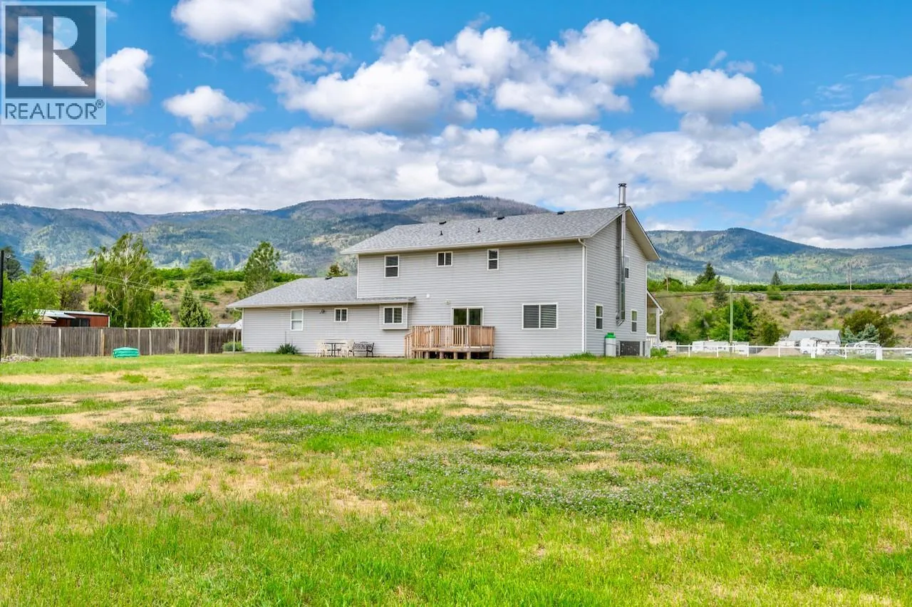 Flat 1-acre property just 3 minutes from downtown Oliver in the heart of the South Okanagan. Backing onto a peaceful wildlife-rich oxbow pond, this AG1-zoned acreage offers rare flexibility and rural privacy close to town. The updated two-storey home features 4 bedrooms and 2 full baths upstairs, including a spacious primary suite with walk-in closet and scenic views. The main floor offers a large living room, cozy family room, and bright open kitchen with solid oak cabinetry, peninsula seating, and KitchenAid appliances. Recent updates include luxury vinyl plank flooring, fresh paint, new carpet, updated lighting, new PEX plumbing, hot water tank (2025), and a new roof (2024). Forced air heating and central A/C ensure year-round comfort. Drilled Well with UV + carbon filtration, central vac, large laundry/mudroom w/sink and extensive storage build ins in the garage. Oversized 36â x 27â garage fits 3+ vehicles. AG1 zoning allows a second accessory dwelling--large shop, or bothâideal for multi-generational living or hobby farm potential. Priced well below assessment. Exceptional opportunity for acreage buyers in Oliver BC and the Okanagan Valley! (id:27476)