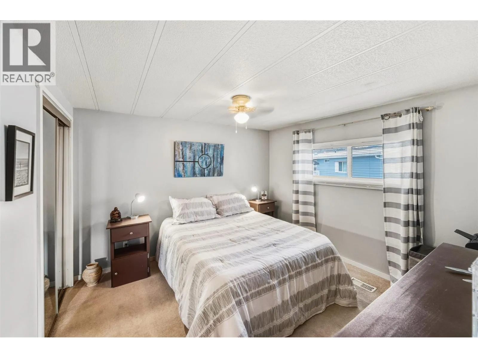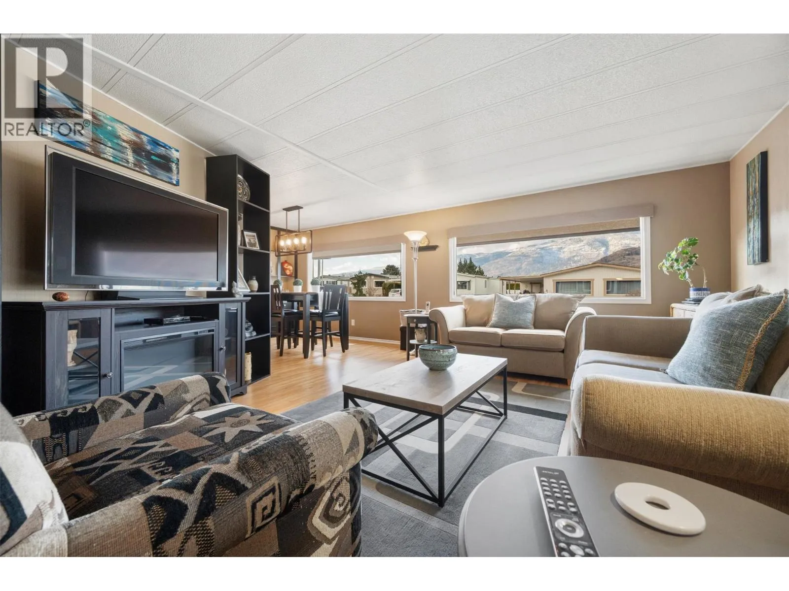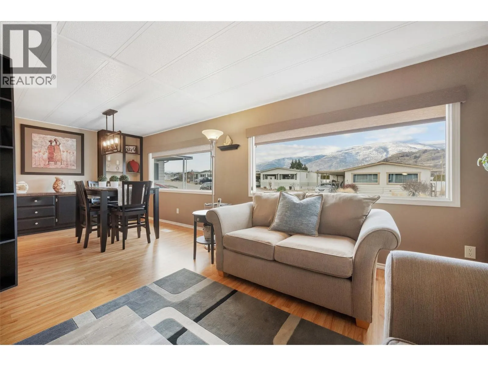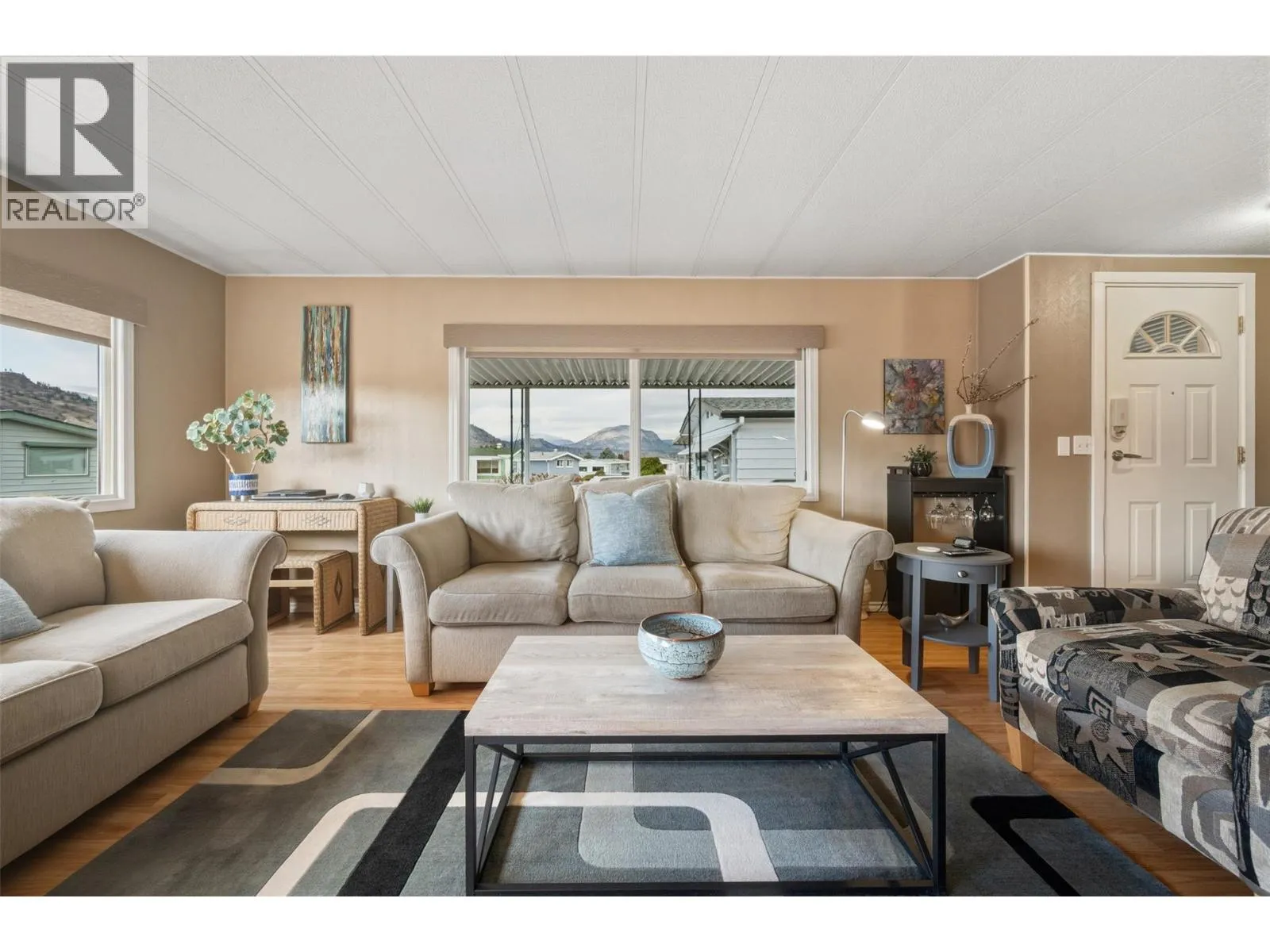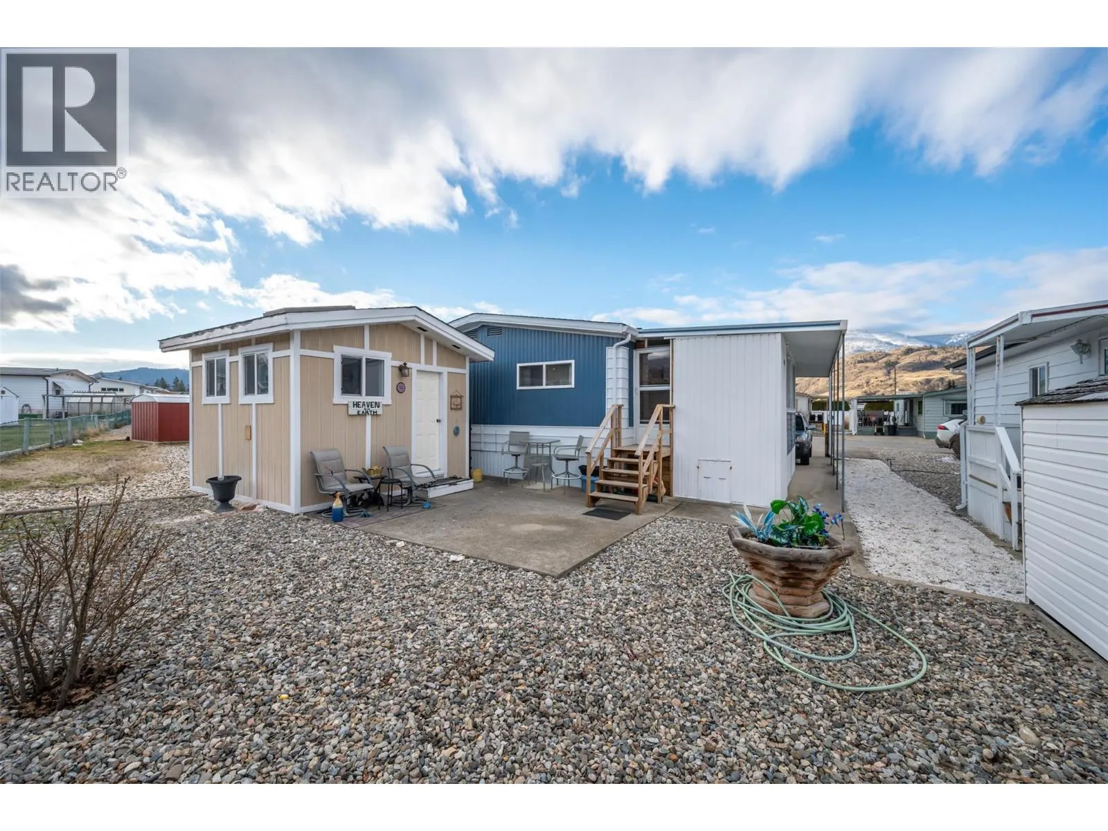 Welcome to Cherry Grove Estates, a sought after 55+ community perfectly situated beside the NKâMIP Canyon Desert Golf Course in beautiful Oliver, BC. This well-maintained double-wide manufactured home offers comfort, functionality, and peace of mind with numerous thoughtful updates throughout. Inside, youâll find a bright and clean layout featuring updated cabinetry and countertops, a walkin shower in the ensuite, and a home that has clearly been well cared for. Major upgrades include an updated gas furnace, air conditioning unit, and roof, providing efficiency and reliability for years to come. A standout feature is the heated and insulated workshop, ideal for crafters, hobbyists, or anyone dreaming of a dedicated creative space. The enclosed patio/sunroom adds valuable extra living space and includes a convenient storage room. Cherry Grove Estates offers an active clubhouse with regular activities for residents, a welcoming and social community atmosphere. Pets are welcome with restrictions. Enjoy the convenience of being close to shopping, recreation, and local amenities, with Penticton just 35 minutes away and the beaches of Osoyoos only 20 minutes from your doorstep. Move in ready and set in a prime location, this home is an excellent opportunity to enjoy relaxed, low maintenance living in the South Okanagan. Some furniture included! (id:27476)