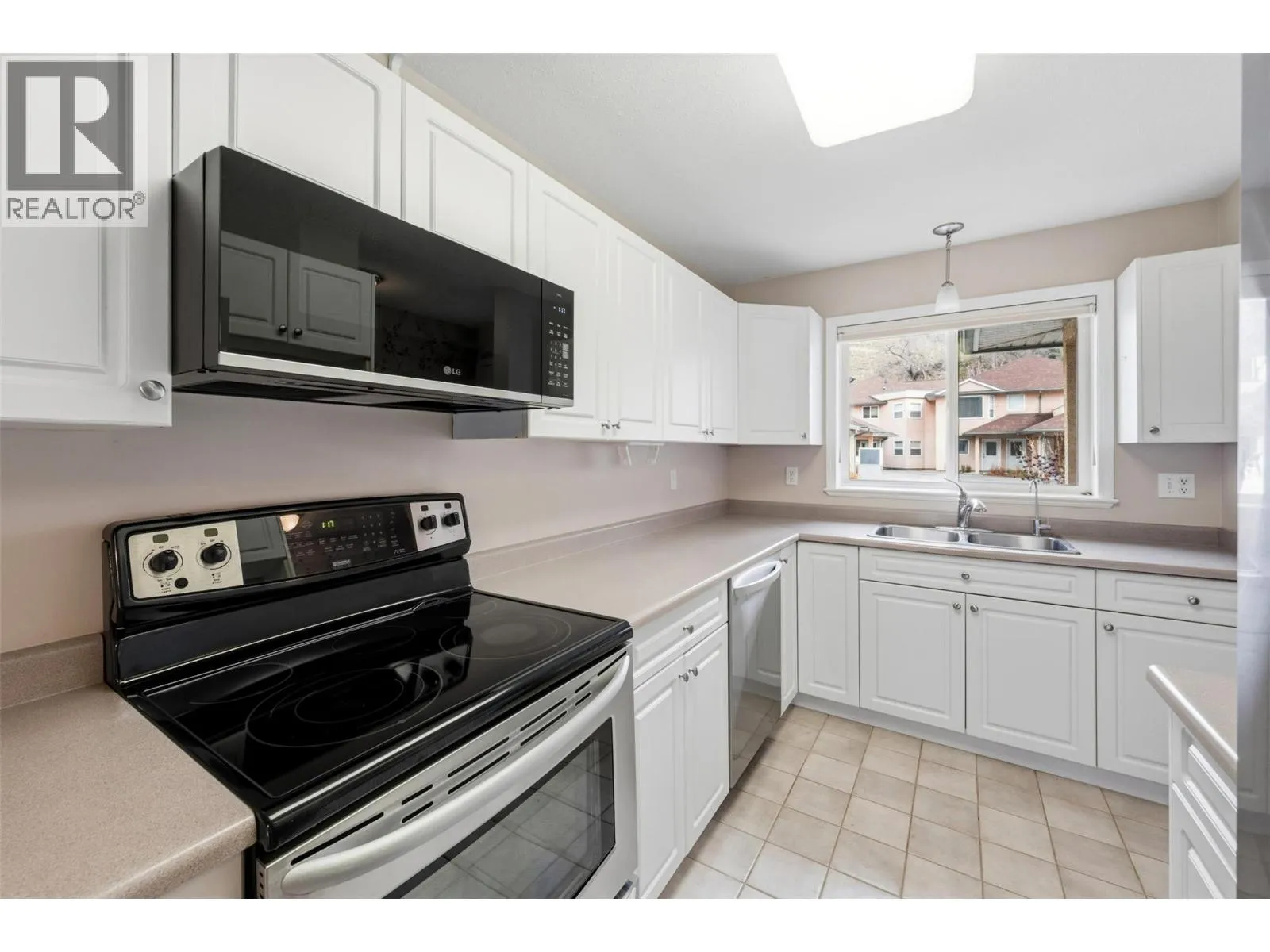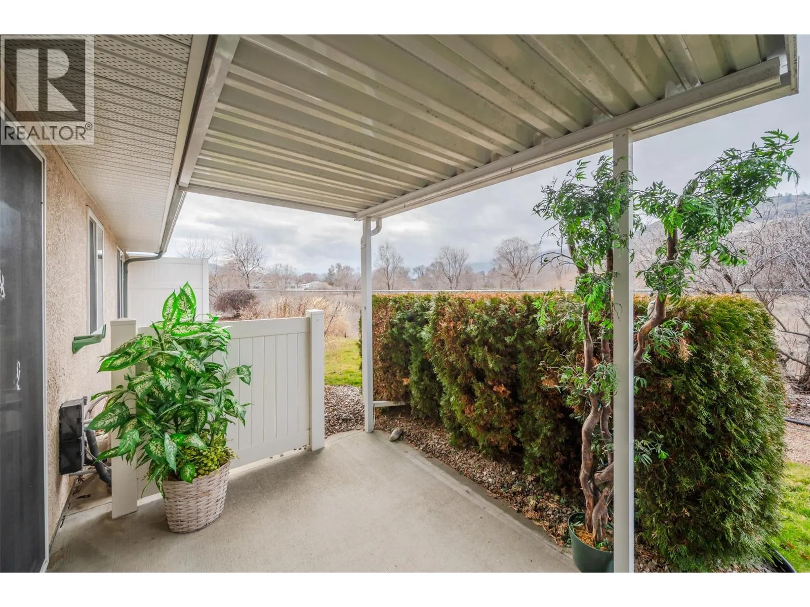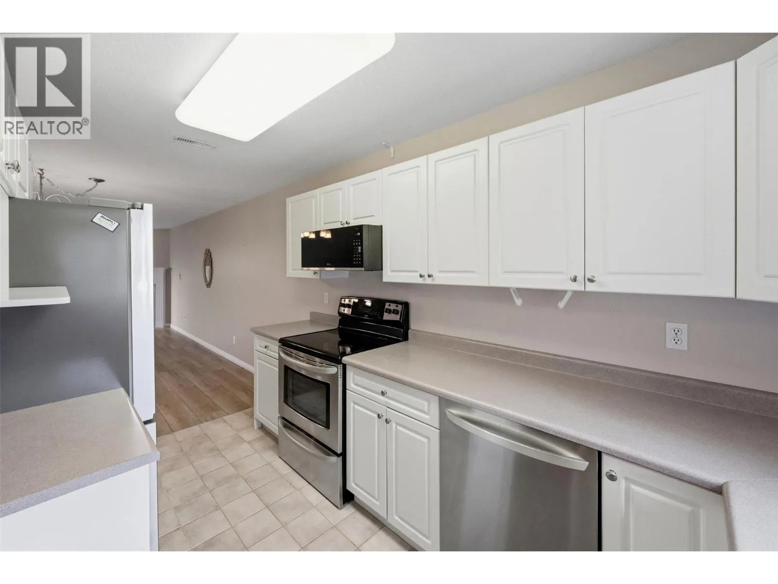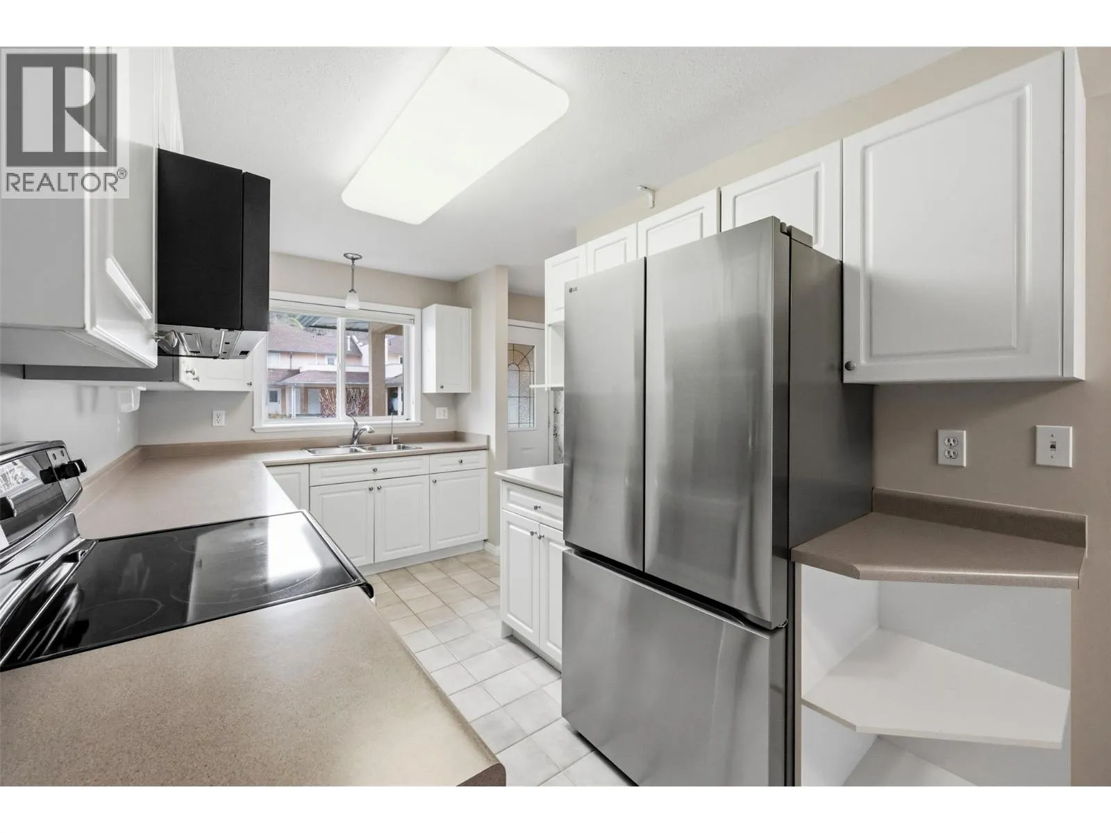 Easy living in MacPherson Meadows! This beautifully updated ground-floor unit offers comfort, style, and convenience in a quiet 55+ community just steps from the scenic Okanagan River Hike and Bike Trail. This 1135 sqft, single-level home, 2 bed + 2 bath and has been thoughtfully refreshed with all new paint, flooring, plumbing and updated stainless steel appliances, creating a bright and modern feel throughout. The layout includes a welcoming livingroom with a newer gas fireplace, a separate laundry area with mudroom entry+ plenty of storage. The primary suite easily accommodates a king sized bedroom set and includes a walkin closet+a private ensuite featuring a modern walk in shower. Comfort is ensured year round with infloor heating serviced by its own NEW, natural gas hot water tank +second hot water tank for domestic use. Central air conditioning to keep things cool during Okanagan summers and in floor heating with a new boiler system, to keep you cozy warm in the Winter. Step outside through the living room sliding doors to your covered private patio, where you can relax and enjoy westerly mountain views. Additional features include covered parking directly outside your front door+ a bonus storage locker for extra convenience. Pet friendly complex allows 1 small dog/cat and is located within walking distance to the community centre, arena, pool, pickleball courts, shopping+ town amenities. Golf, Ski and Okanagan wineries. Whether youâre looking for comfortable retirement living, a lock-and-leave lifestyle, this beautifully updated home checks all the boxes. (id:27476)
