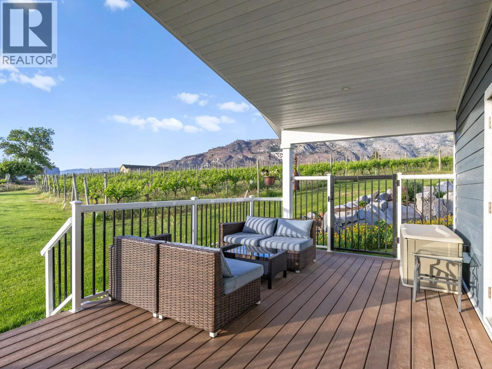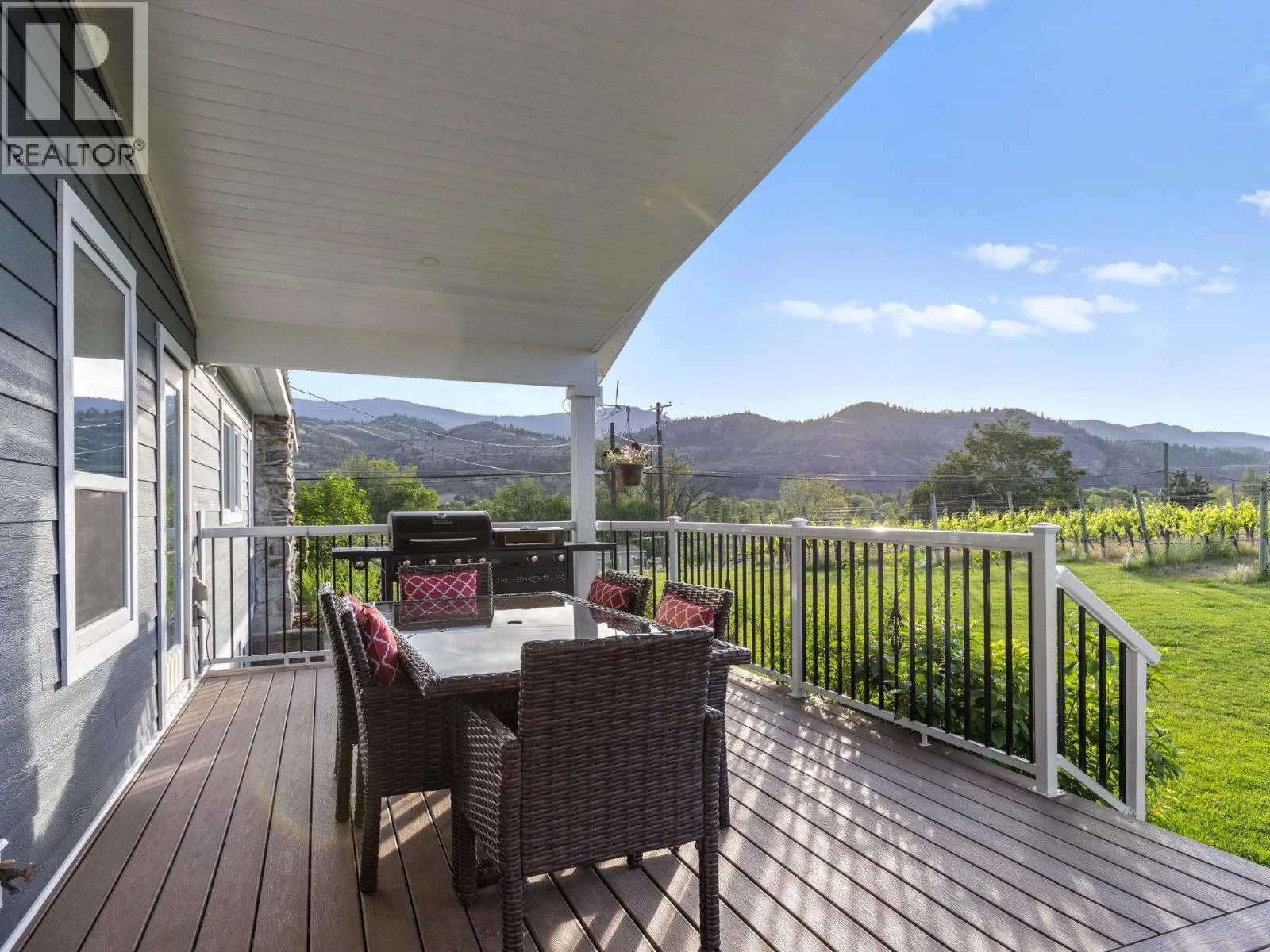 STUNNING HOME, VINEYARD ELEGANCE AND TURNKEY INCOME! Experience effortless vineyard ownership and immediate income from day one! This 3.22-acre Oliver estate features 2.2 acres of Roussanne grapes under contract with the acclaimed Le Vieux Pin Wineryâoffering hands-free cultivation, guaranteed revenue, and a passive return as you savour the South Okanagan lifestyle. This spectacular home boasts over 3400+ sqft of recently added on and completely renovated 5 Bedroom, 4 Bath home keeping the elegance farmhouse feel with the latest mechanical for full efficiency. Heating and cooling systems boast gas furnace with hot water on demand incorporated directly through the furnace, AC cooling, gas fire places in the master bedroom and living room. Seamless IndoorâOutdoor Entertaining Thoughtfully renovated for both intimate gatherings and grand fetes, the open-concept layout showcases European-inspired cement tile, expansive doors blurring the lines between indoors and out. Dine al fresco beneath a shaded pergola or sip wine on the oversized deck, surrounded by monarchs, hummingbirds, and lush pollinator gardens. The primary suite occupies its own wing, offering sweeping vineyard viewsâperfect for quiet mornings and evening unwinds. Just a short distance to downtown Oliver shopping, restaurants, recreation, the best wineries, parks, schools and more! Oliver features Fairview Mountain Golf Course and driving range and Area 27 Raceway Park only a few km away for those car enthusiasts! (id:27476)