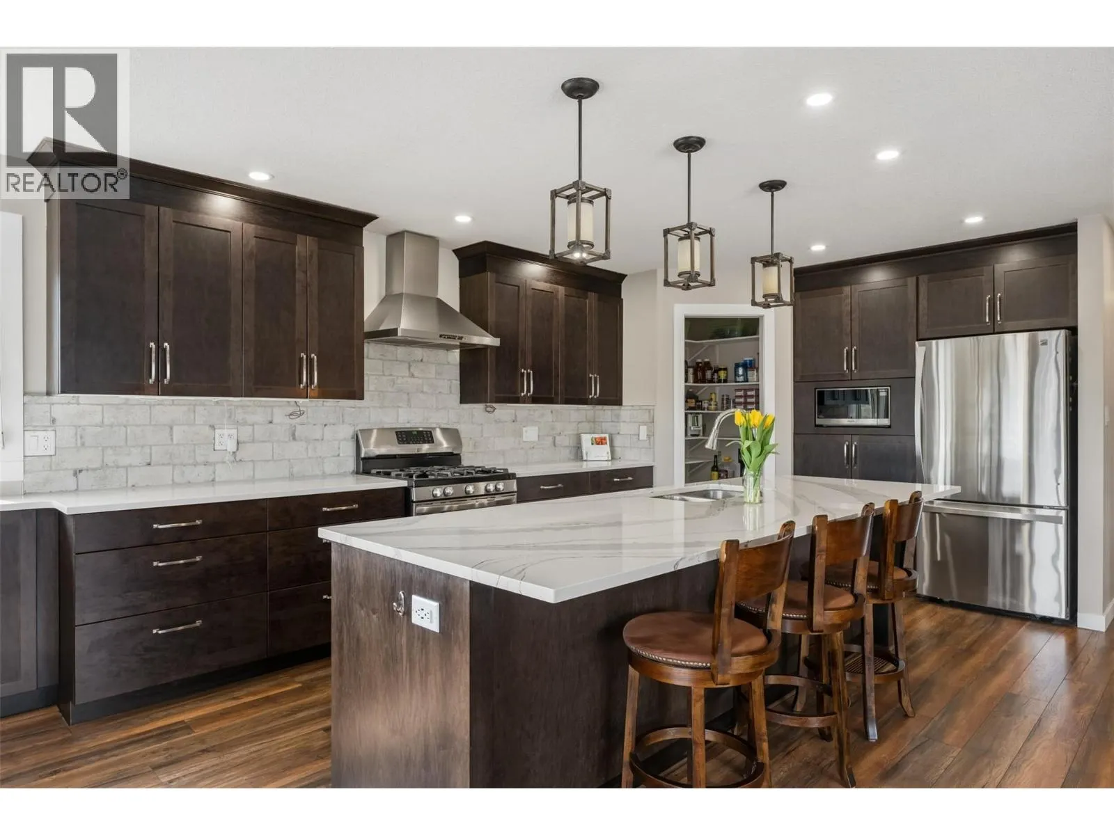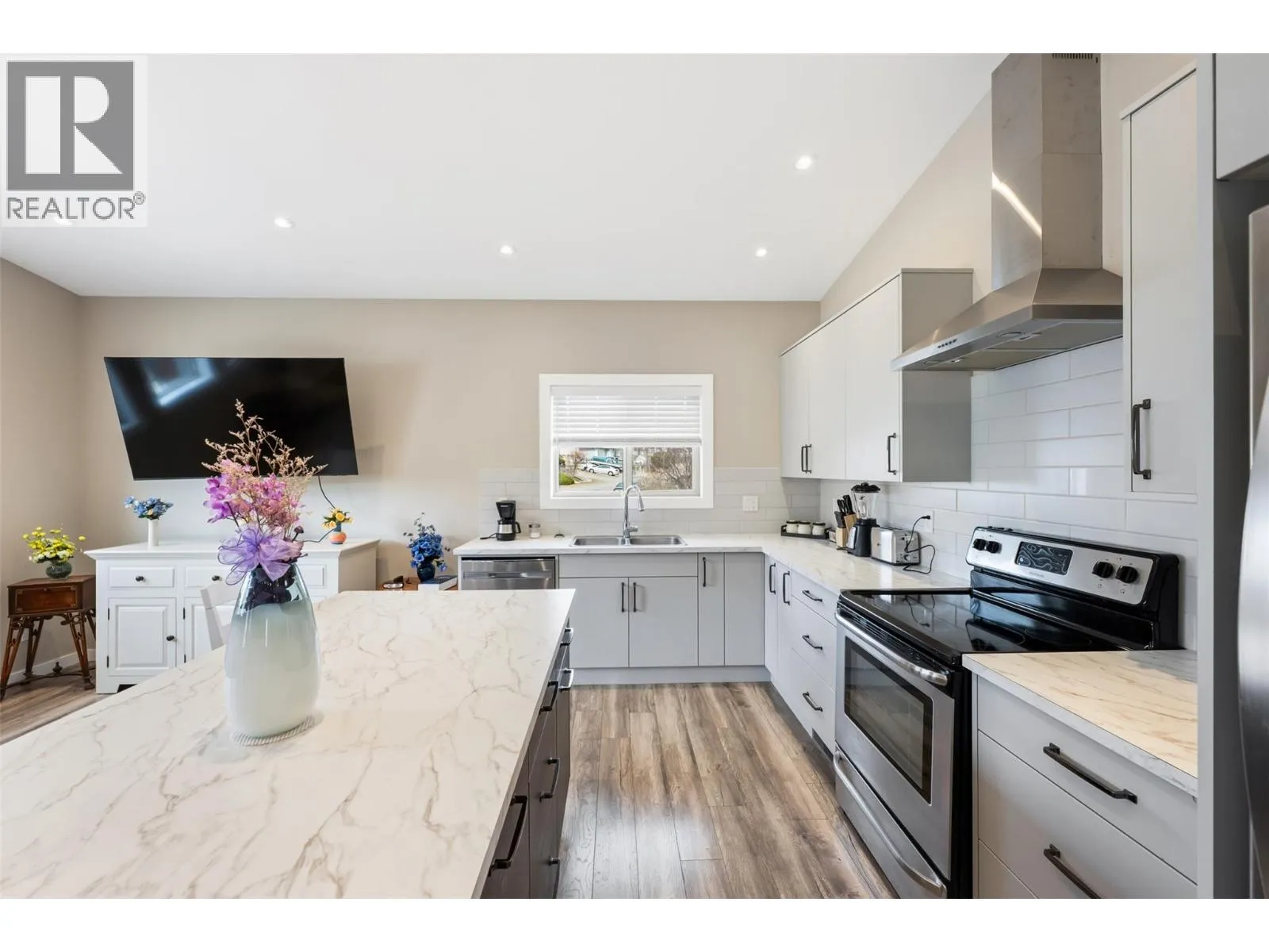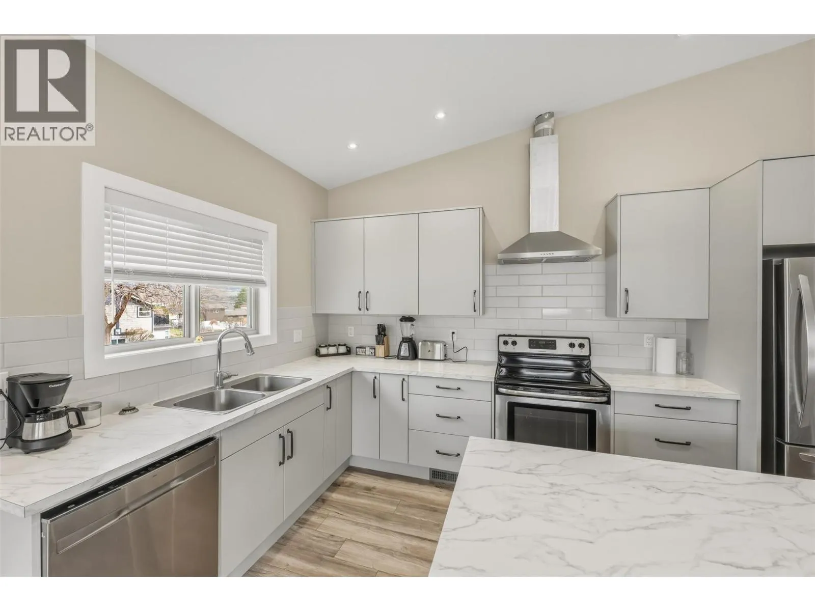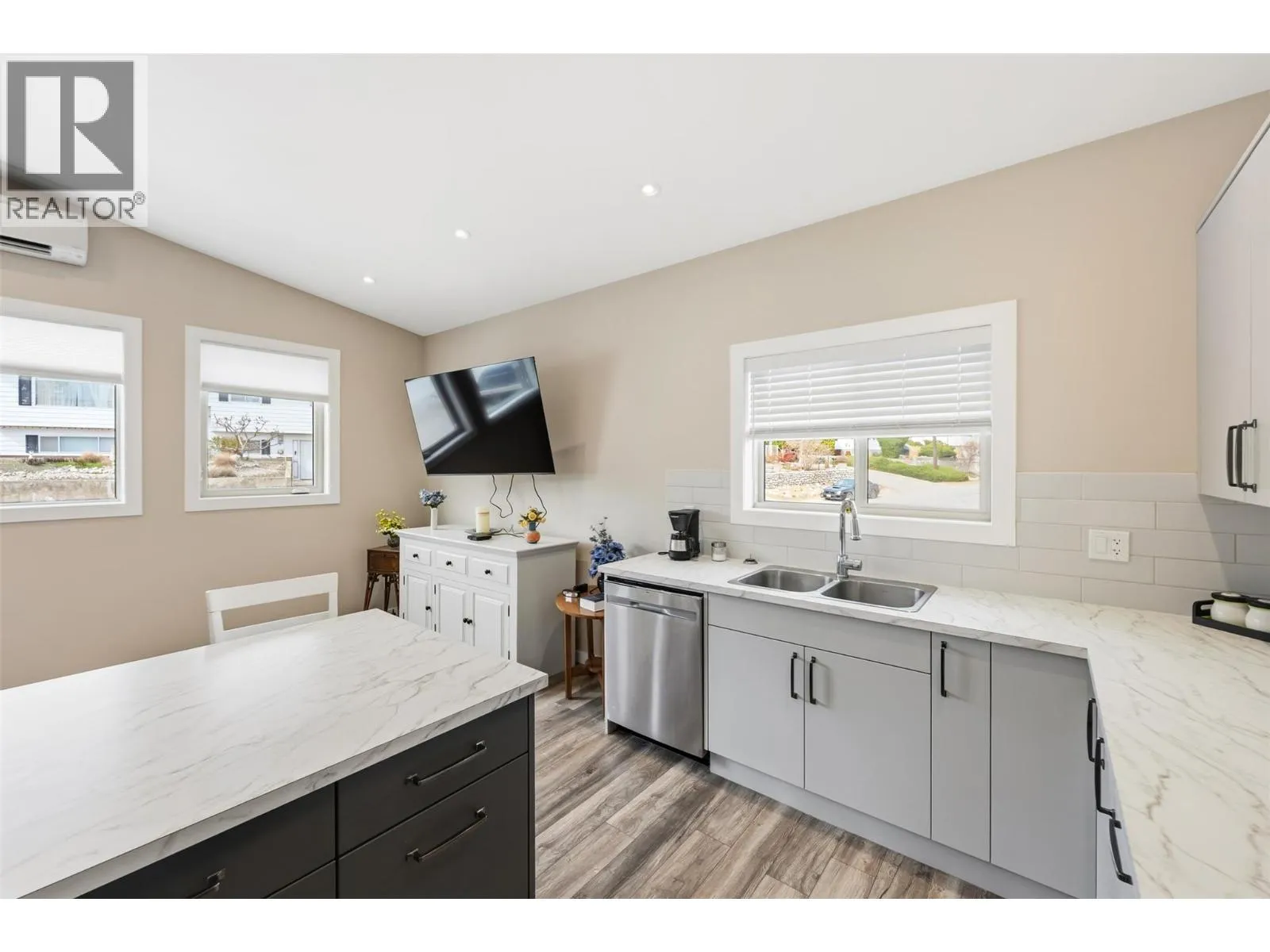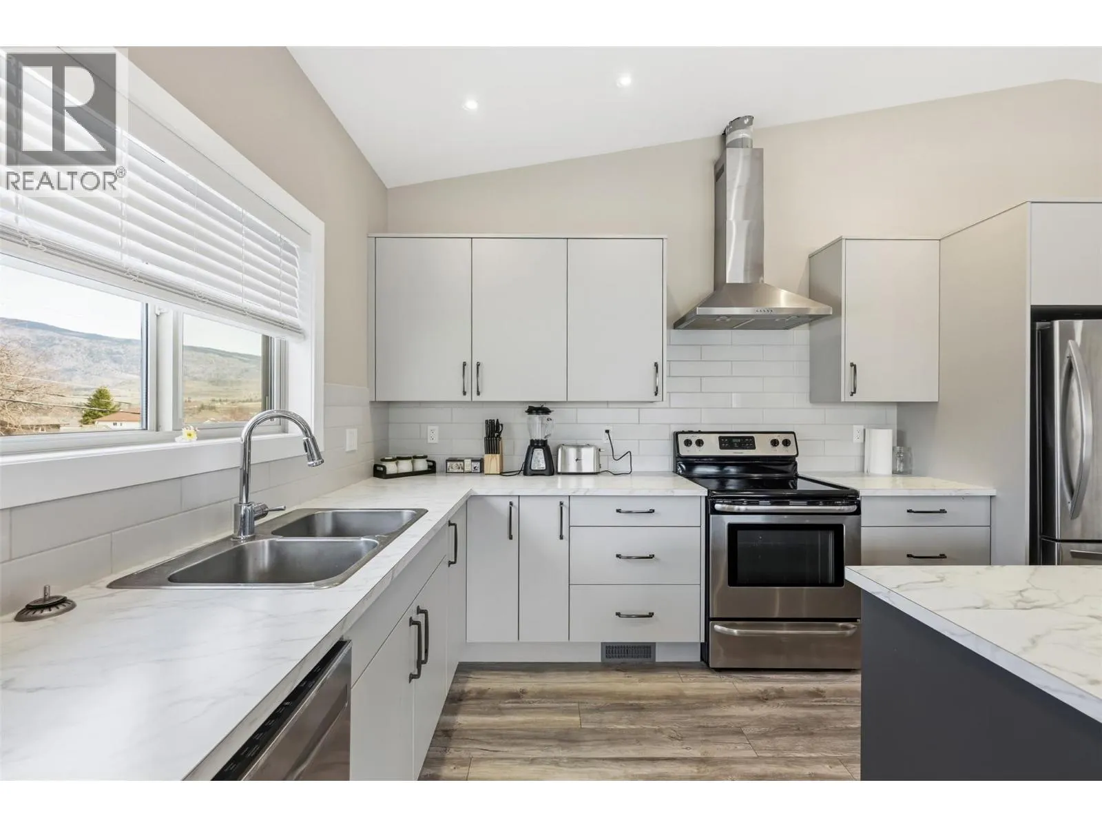 Perched to capture sweeping east-to-south valley views, this extensively updated Oliver home delivers space, flexibility, and income potential. The main residence offers approx. 2,600 sq.ft. with 5 bedrooms and 3 bathroomsâ3 beds on the main level upstairs including the primary bedroom and ensuite. A fully renovated kitchen features new cabinetry, counters, lighting, and a walk-in pantry, opening to a generous living area and massive covered patio. Updated vinyl windows, HardiePlank exterior with cedar accents, new windows, updated forced air gas furnace, A/C and water softening system. Downstairs adds 2 bedrooms, a full bath, pellet stove, and an extra-long garage (over 40 ft) ideal for vehicles, storage, or a workshop. But what makes this property standout is the (almost new), self-contained attached carriage home (additional 1,100 sq.ft.) w/ separate utilities. This smart 1-bed, 2-bath layout offers an upper-level kitchen with ample storage and a 2-piece bath, plus a lower-level primary, office nook, and full 4-piece ensuite. The carriage home is currently rented at $1,850/month. plus electricity, providing immediate income or mortgage relief. Outdoor features include underground irrigation, new glass railings and duradeck on the deck overlooking the valley. All combined, this property features 3800 sq.ft. of living space. Ideal for multi-generational living or leveraging suite income to purchase your family home! You've been waiting for something unique-It's here! (id:27476)