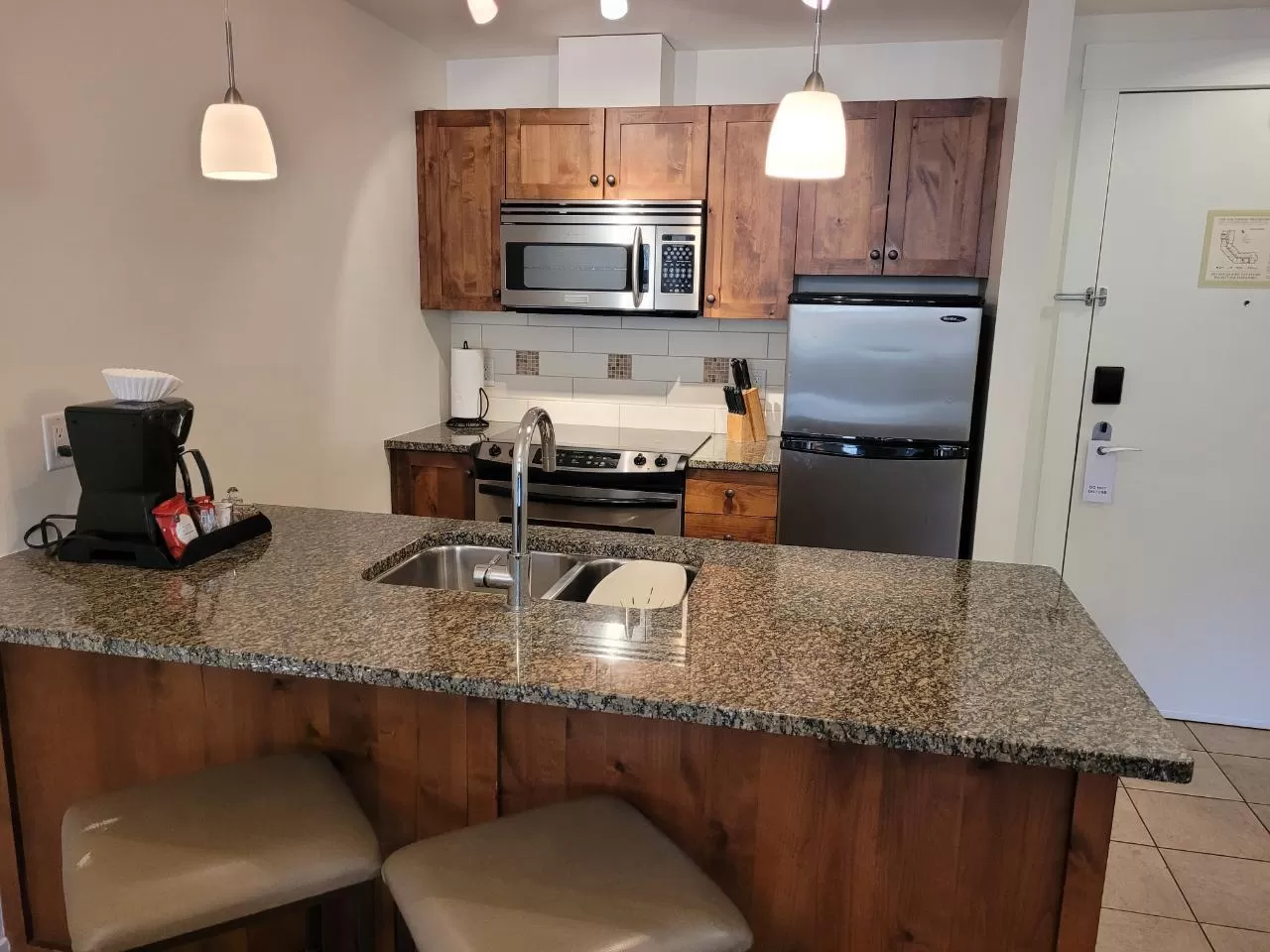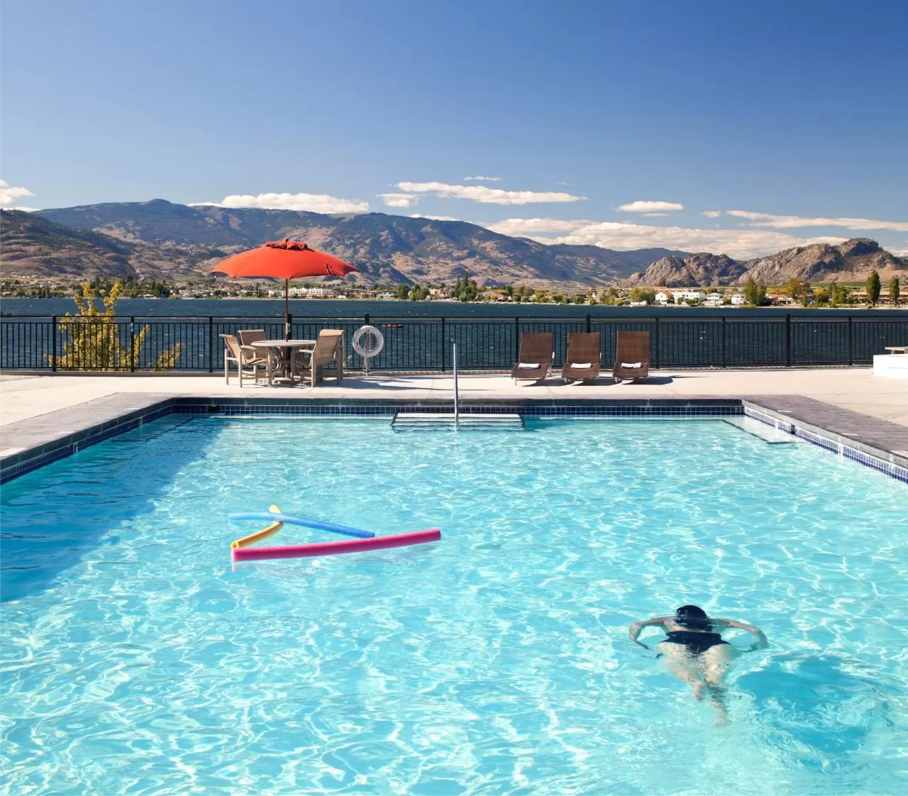 SECOND FLOOR suite in the gorgeous Walnut Beach Resort. This 1-bedroom unit is fully furnished and equipped with in-suite laundry, granite counter tops, stainless appliances, fireplace, deck and central air. This suite is in a rental pool to provide some income when you or your family are not enjoying it. Enjoy a large 800 ft private beach, year-round heated pool, 2 hot tubs, marina & water sports rentals, poolside bar and food services. Strata fees also include strata management fees, heat, lights, gas, cable TV & internet. Come & stay in your vacation property on beautiful Osoyoos Lake then have it in the rental pool when vacant. Turn Key investment. All you need is your swim suit and toothbrush! Please visit media tab for 3D Tour, floorplans, videos and photos. (id:27476)
