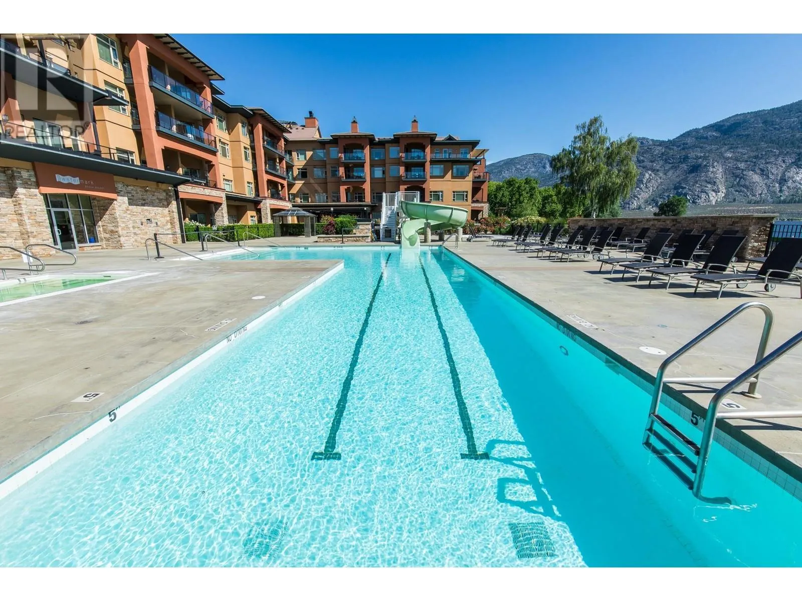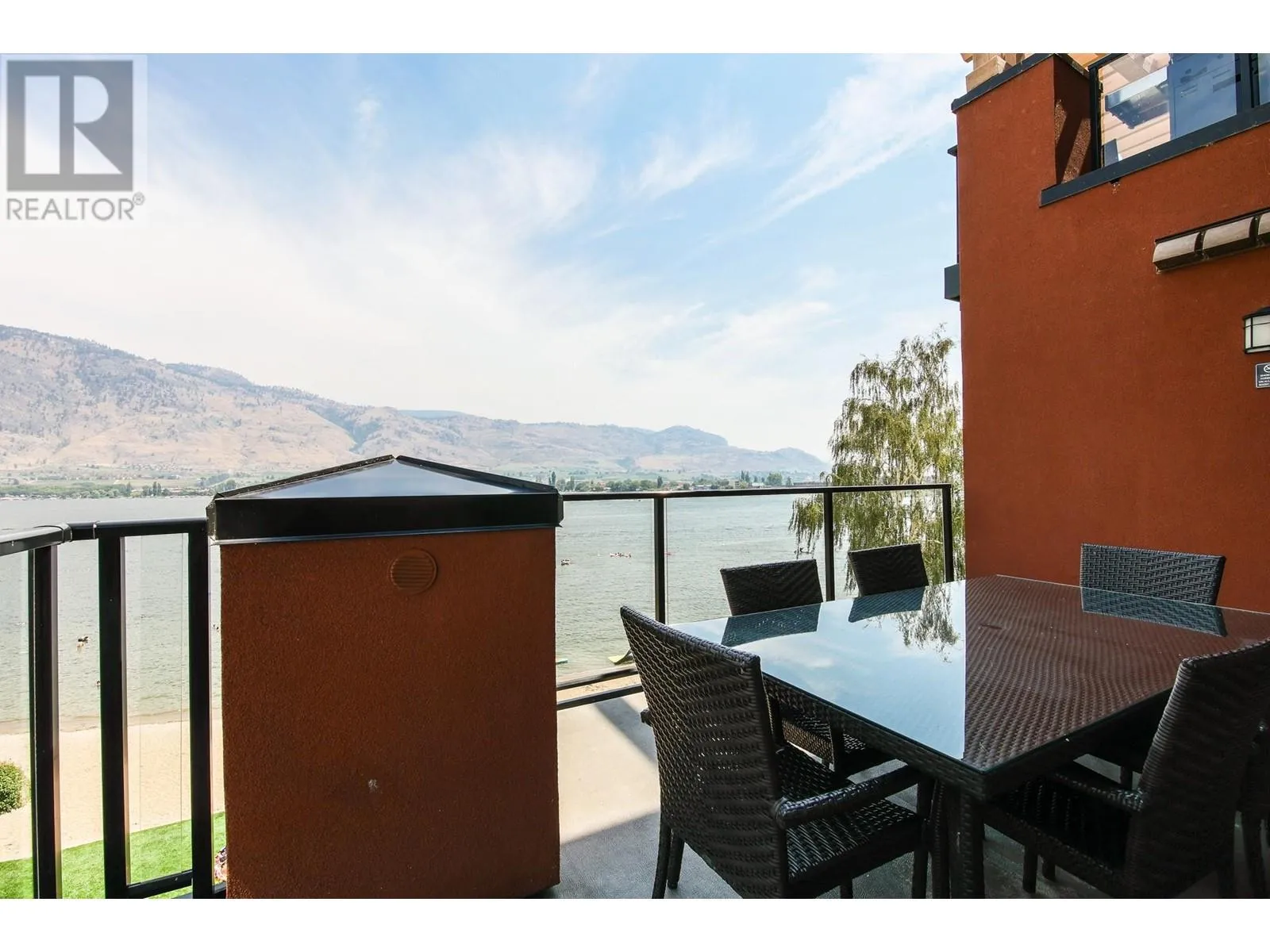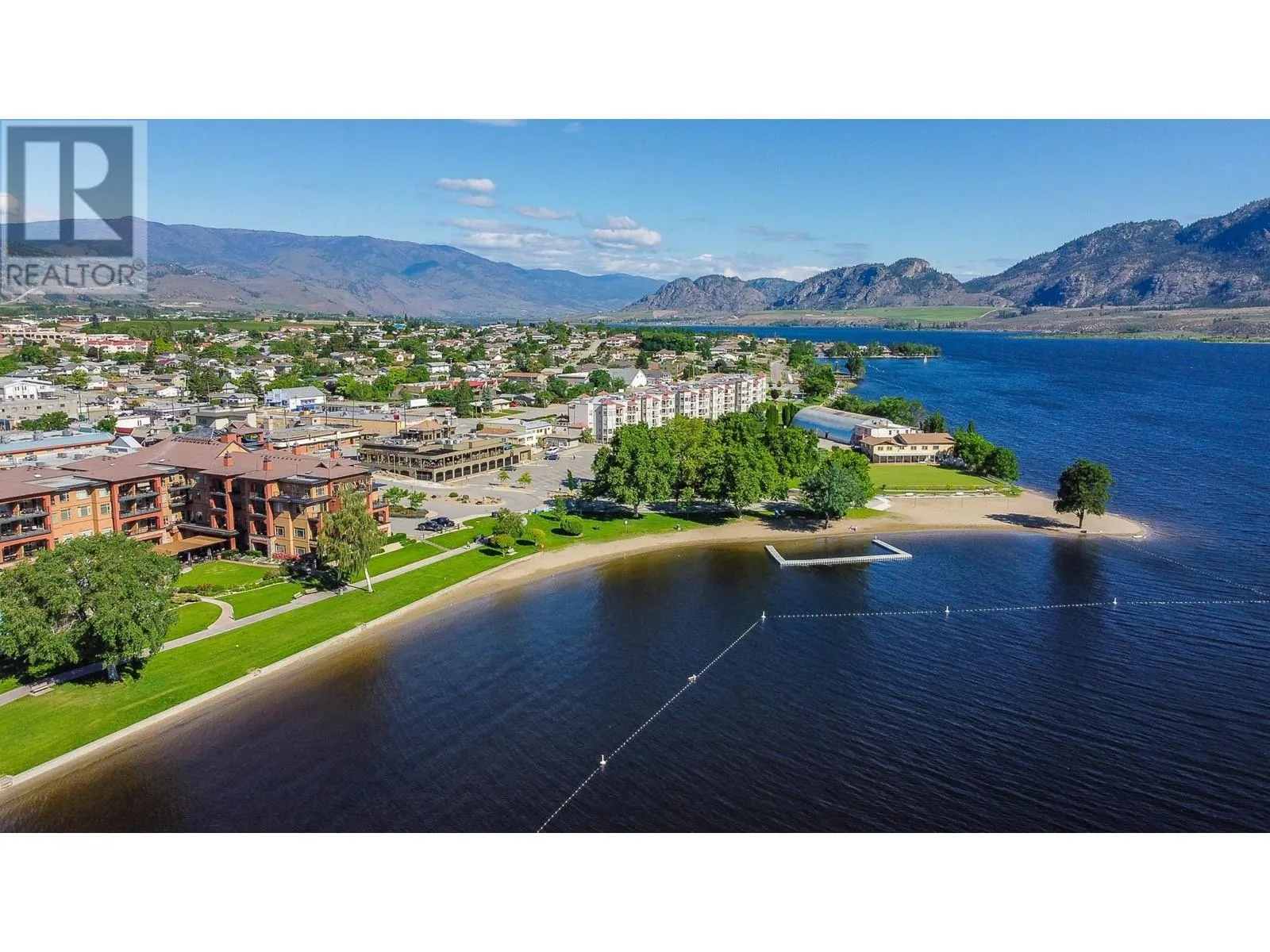 EXCEPTIONAL FIND! Rarely available spacious 2 bedroom corner suite with Osoyoos Lake and mountain views from almost every room and sundeck. Bright and airy with lots of light and windows. Large east facing sundeck for your sunny morning coffee and evening BBQs. Fully furnished with granite counter tops, quality furnishings, in suite laundry and a living room pull out to comfortably sleep 6. This is the ideal waterfront vacation resort with an on site spa, fine dining restaurant, large swimming pool with slide and hot tub. Located in down town Osoyoos on the beach with steps to shopping and wineries and golf courses are only minutes away. Great opportunity for revenue sharing with rental pool income to offset costs. Come and view this exceptional complex - seeing is believing., (id:27476)