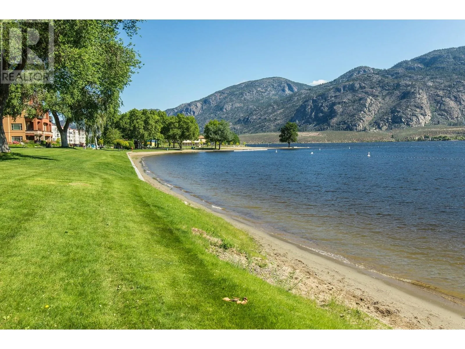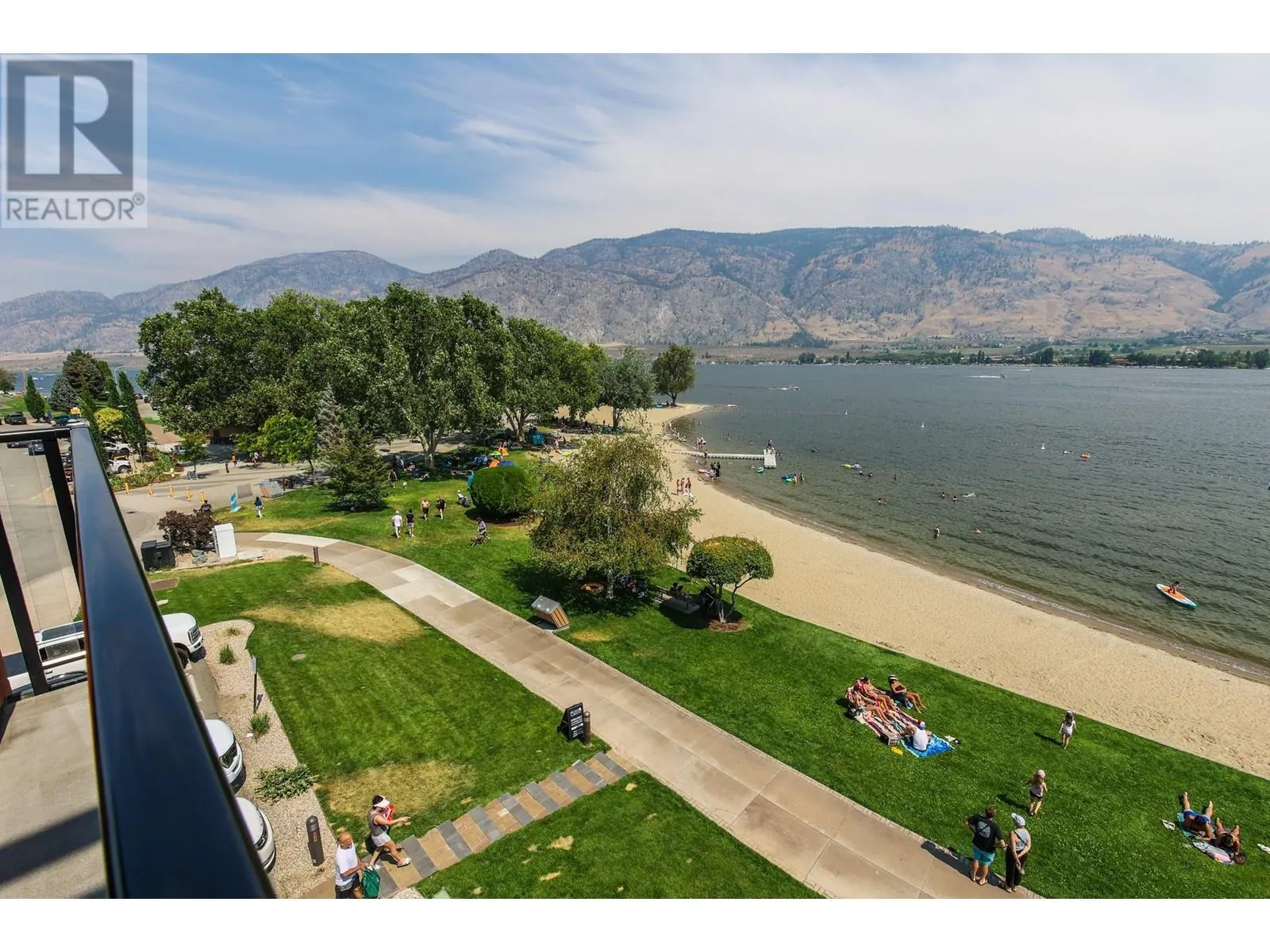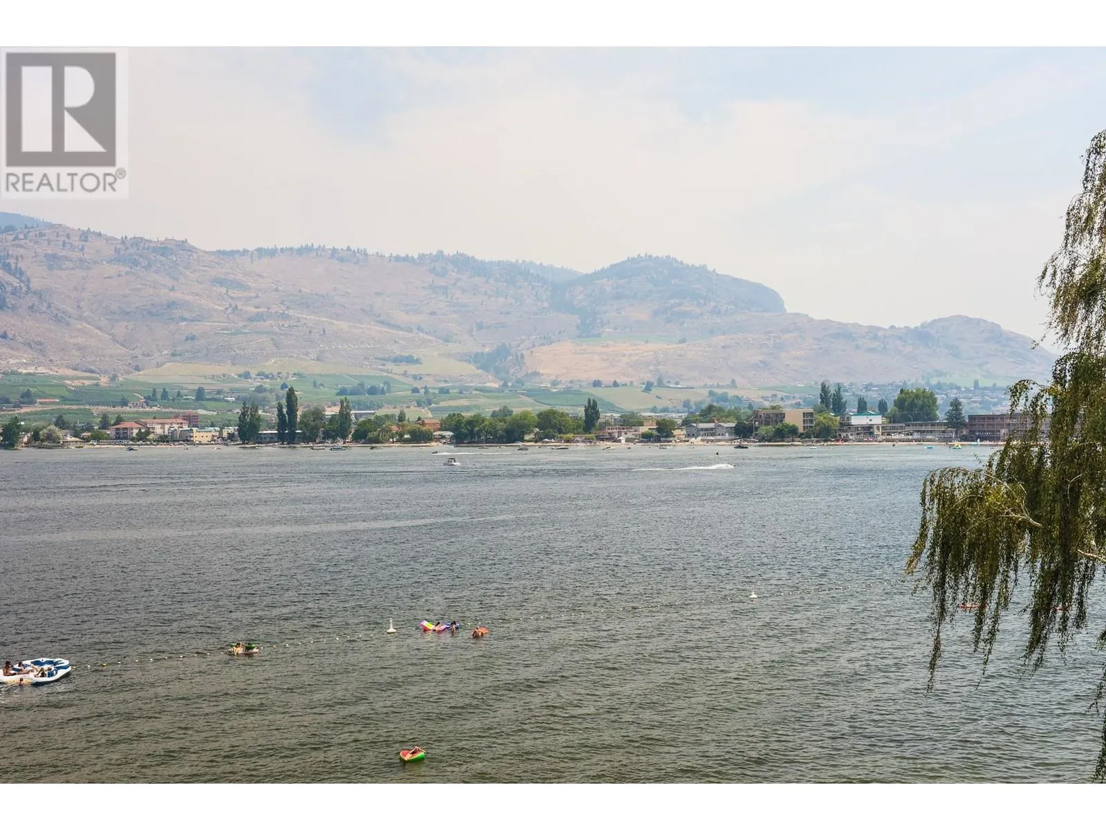 EXCEPTIONAL FIND! Rarely available spacious 2 bedroom corner suite with Osoyoos Lake and mountain views from almost every room and sundeck. Bright and airy with lots of light and windows. Large east facing sundeck for your sunny morning coffee and evening BBQs. Fully furnished with granite counter tops, quality furnishings, in suite laundry and a living room pull out to comfortably sleep 6. This is the ideal waterfront vacation resort with an on site spa, fine dining restaurant, large swimming pool with slide and hot tub. Located in down town Osoyoos on the beach with steps to shopping and wineries and golf courses are only minutes away. Great opportunity for revenue sharing with rental pool income to offset costs. Come and view this exceptional complex - seeing is believing., (id:27476)