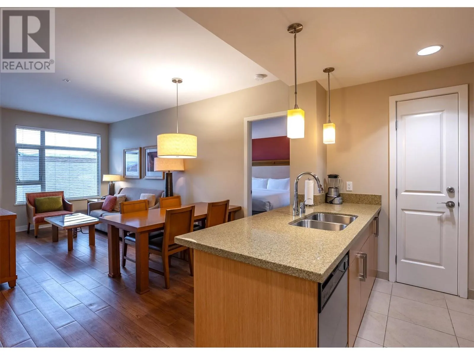 Own your piece of Canada's desert paradise! Ideally located on the quiet, south side of the resort with balcony lake views, this 836 square foot, spacious, 2 bed suite represents amazing value! With furnishings, decor, and equipment maintained by the resort, this is your opportunity for stress-free, lock and leave vacation property ownership. The open concept kitchen, living and dining areas are ideal for entertaining, while the split 2 bedroom layout optimizes privacy. The pull out sofa enables comfortable accommodation for 6, and the generous balcony offers sheltered alfresco dining with stunning lake views. Close proximity to both elevator and stairs ensures quick access to the beach, pool deck and hotel amenities, and secured, indoor parking. Resort amenities include pool, hot tubs (one year round), gym, spa, and beautiful function rooms. Amazing dining options including 15 Park Bistro (with sheltered seasonal patio & grill), Boston Pizza, Backroads Brewery, and Roberto's Gelato. The Watermark is located just steps to all the vibrant shops, services and amazing dining options Osoyoos has to offer. World class wineries, dining, golf, skiing, watersports and cultural experiences are all in close proximity. Enrolled in the the resort's professionally managed hotel rental pool, this suite generates significant rental income to help offset the costs of ownership. Sale subject to GST. Square footage per builder plans. Dimensions approximate - buyer to verify if important. (id:27476)
